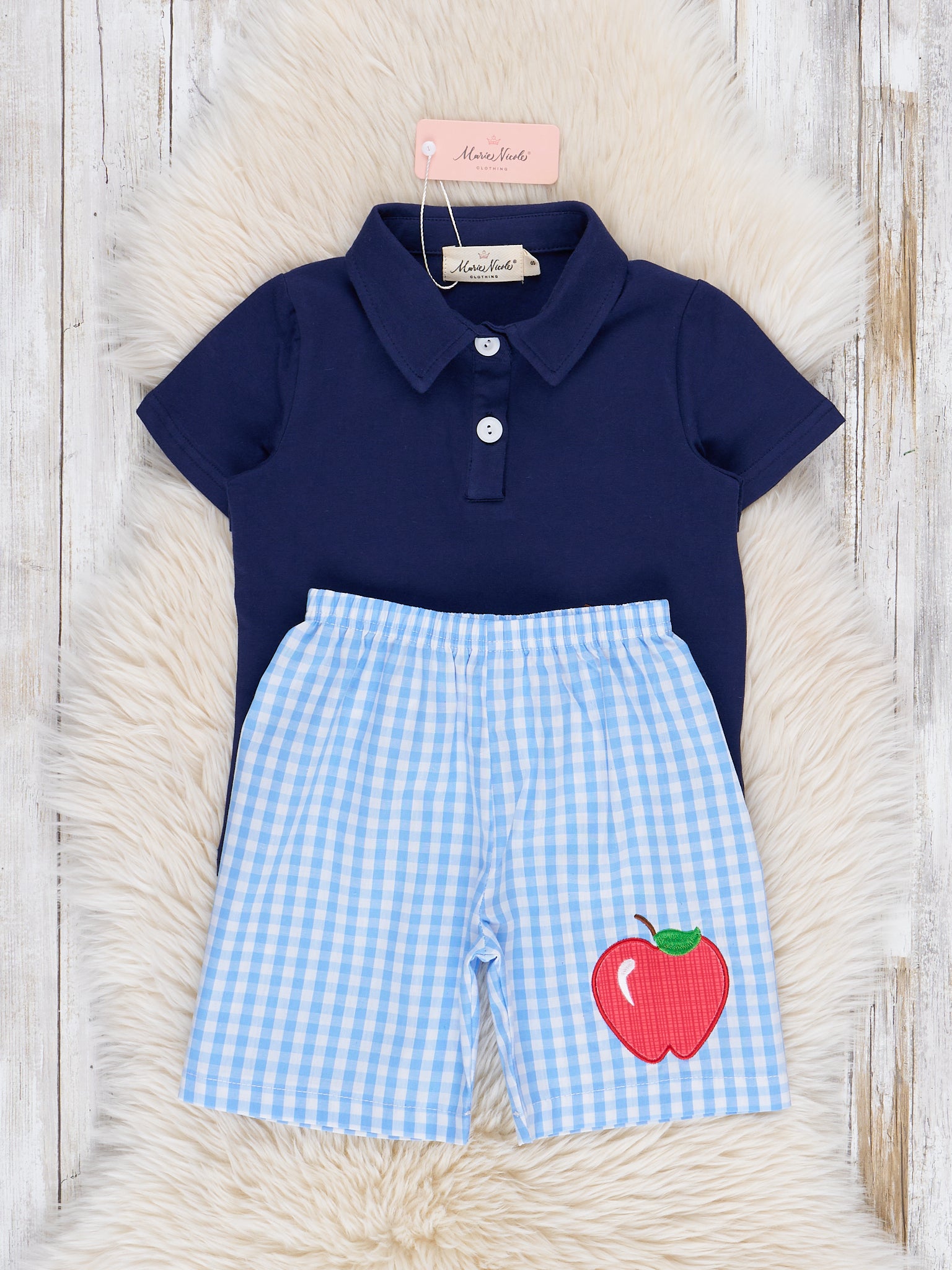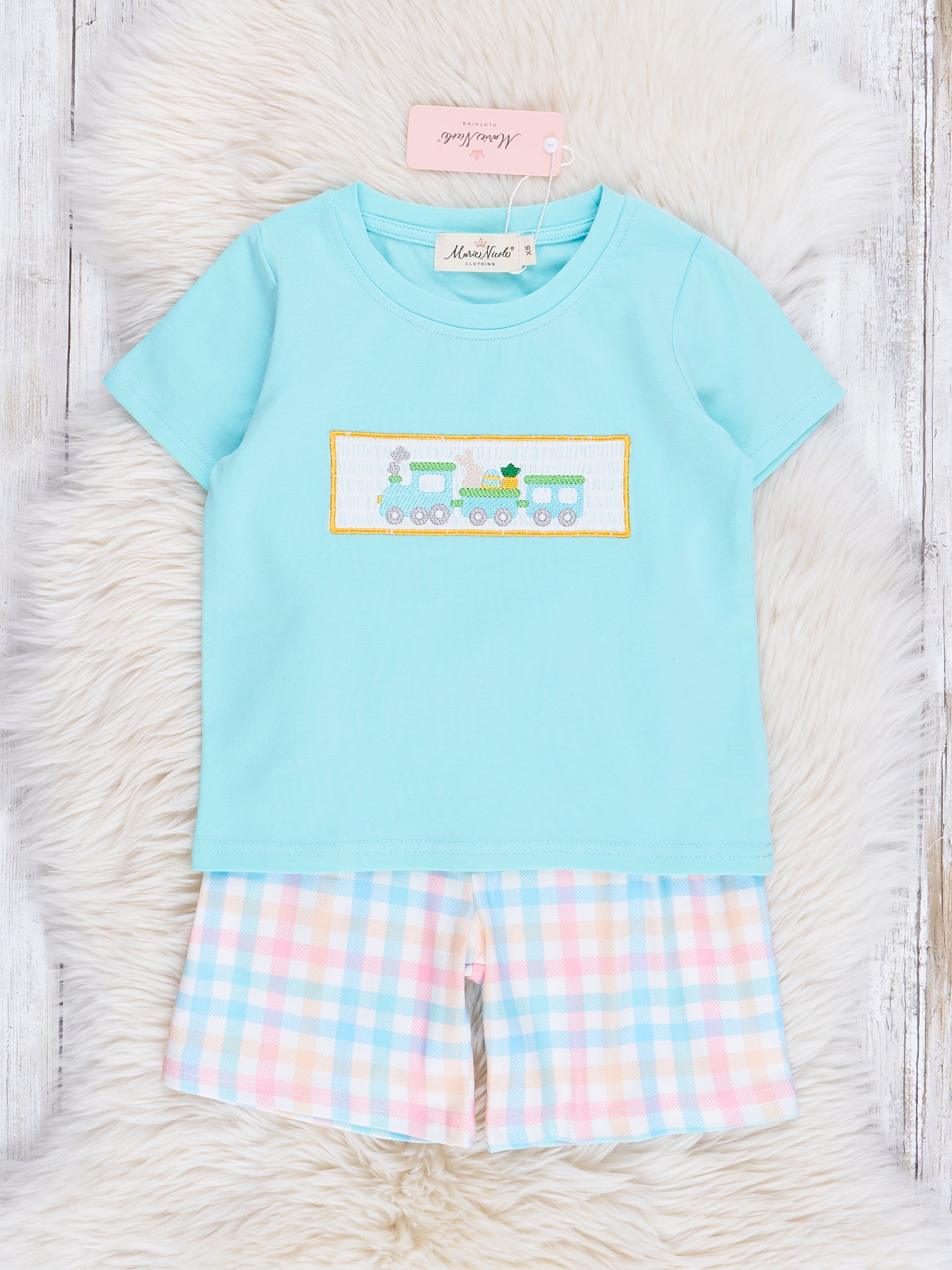 Dusty Blue & Brown Gingham Smocked Turkeys Outfit
