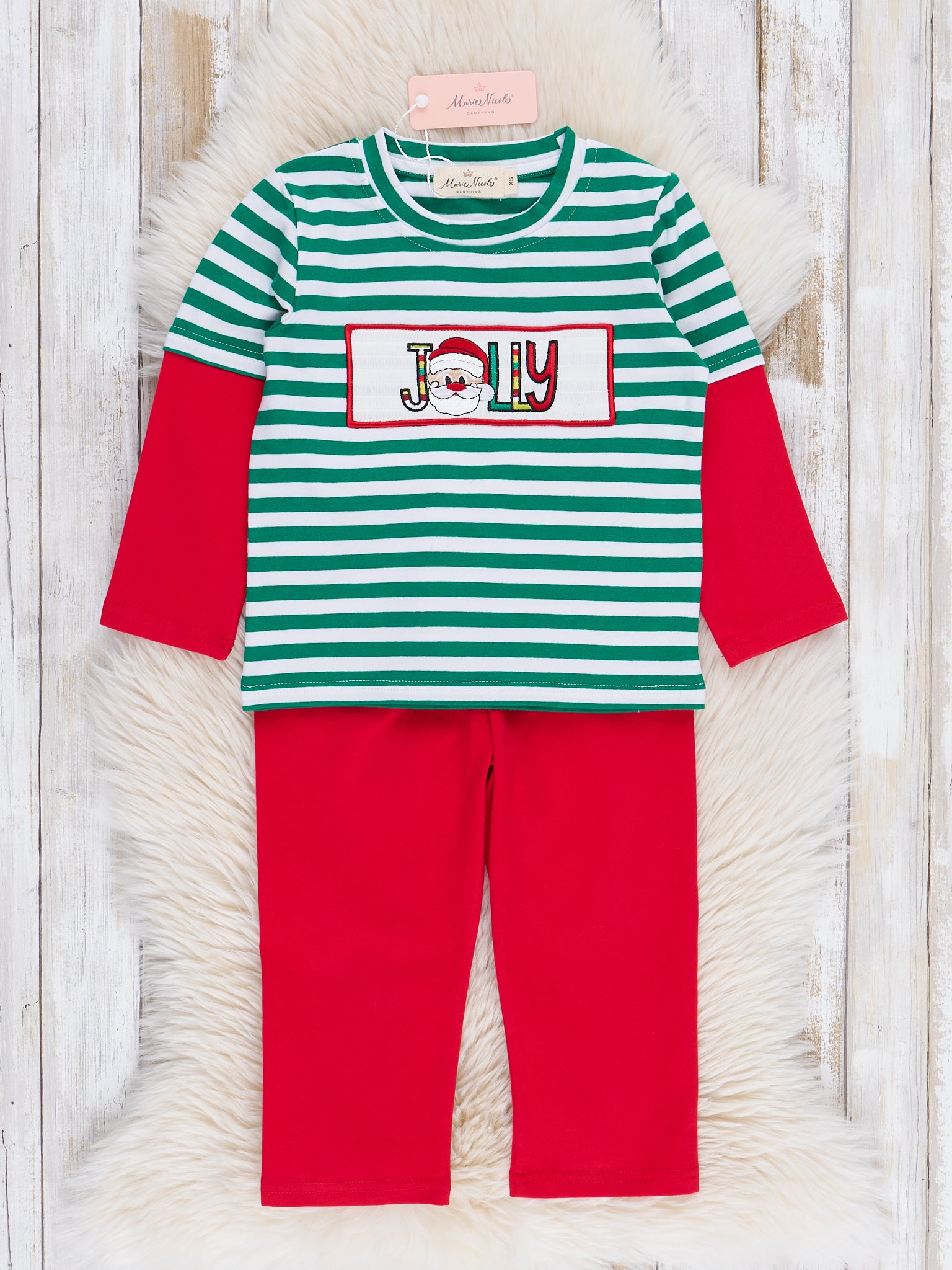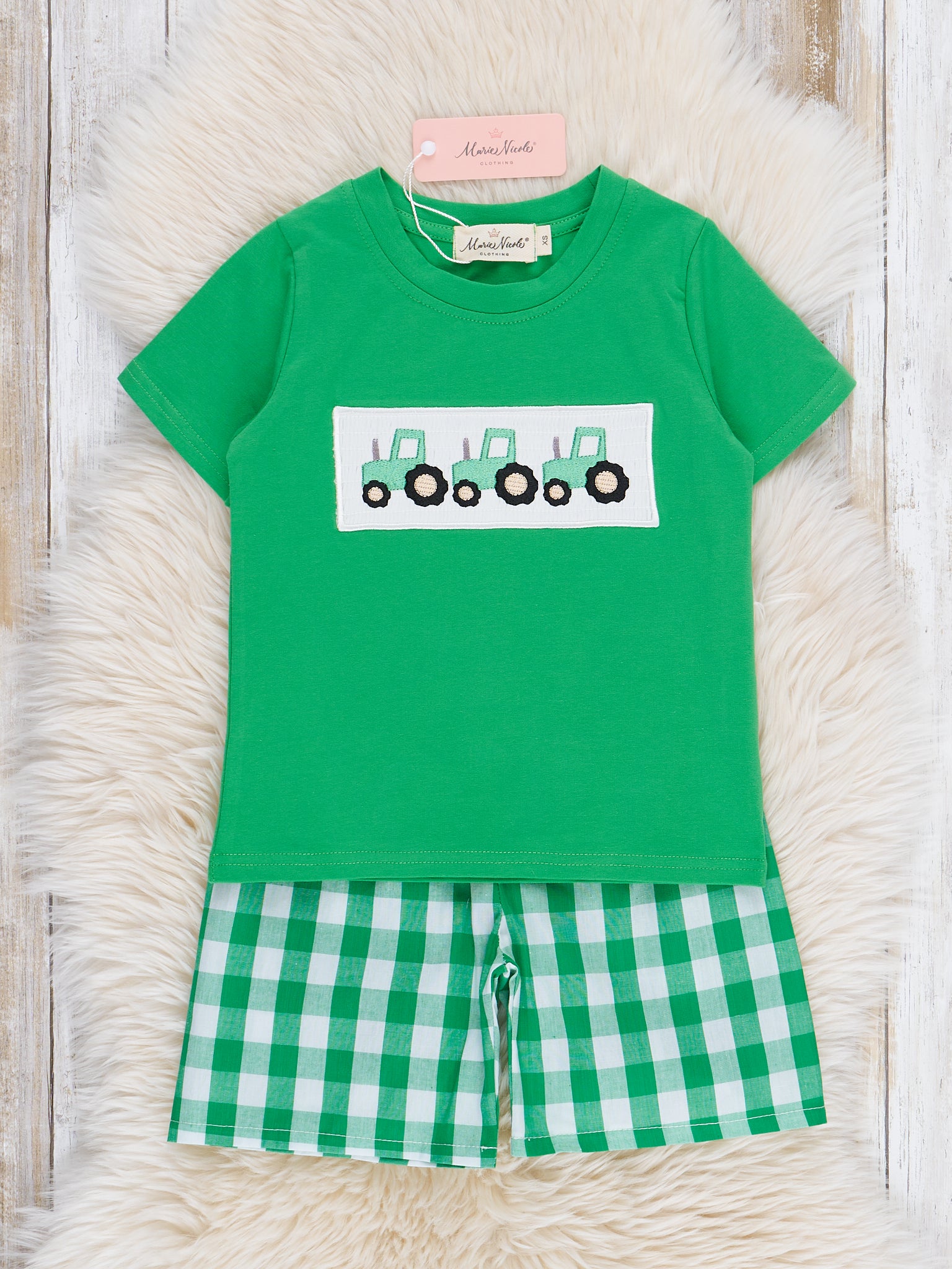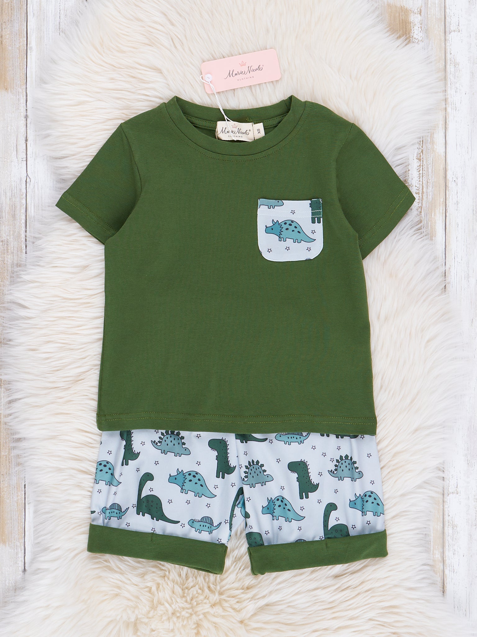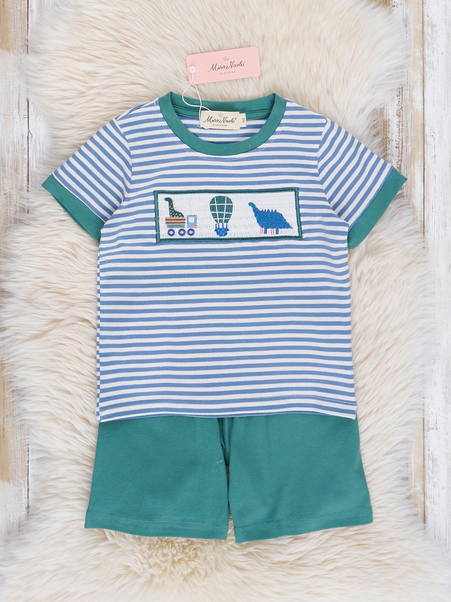 Hunter Green Stripes Smocked Dinosaur Friends Outfit