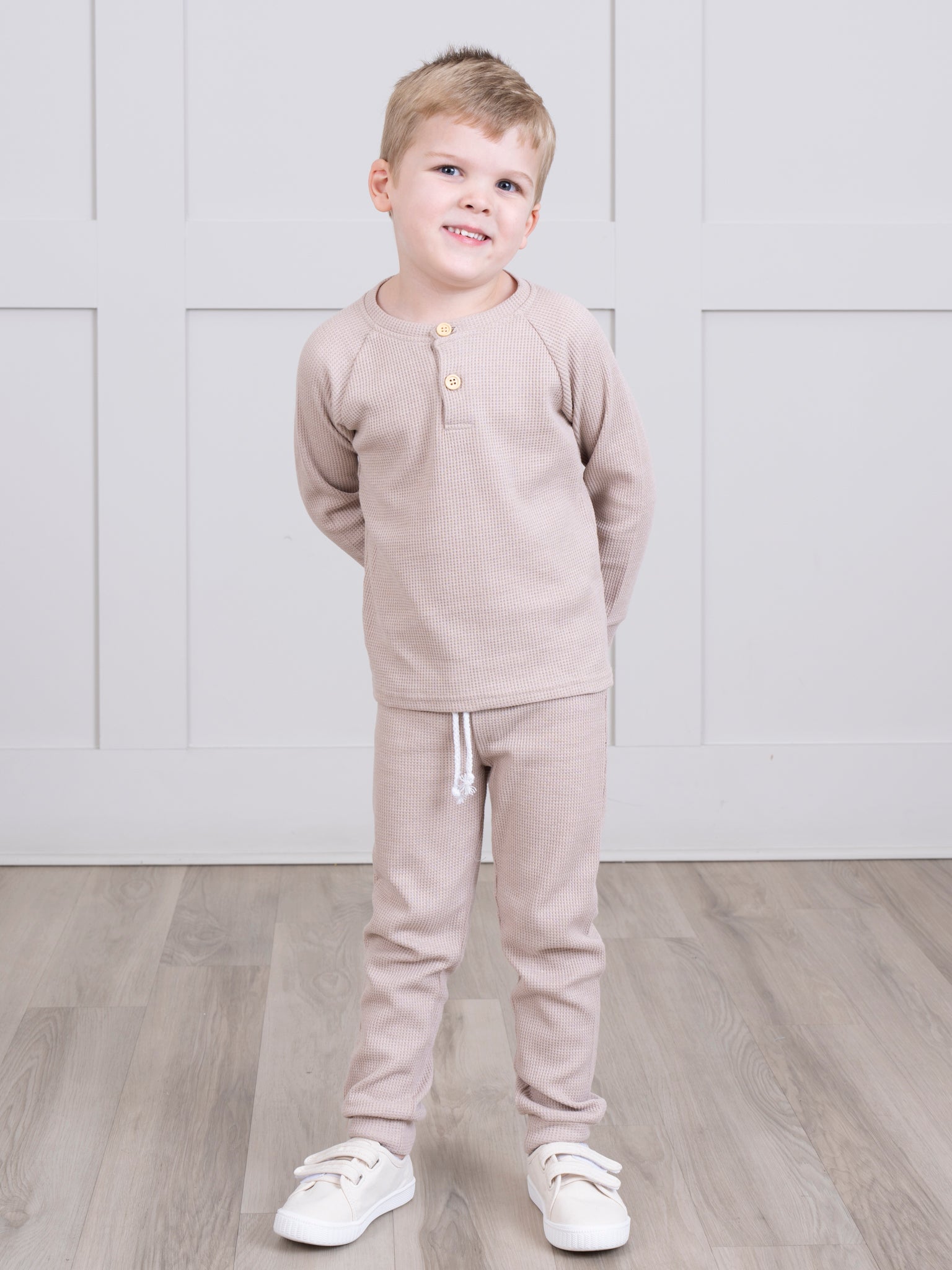 Waffle Knit Henley & Joggers Set in Two Colors - Unisex