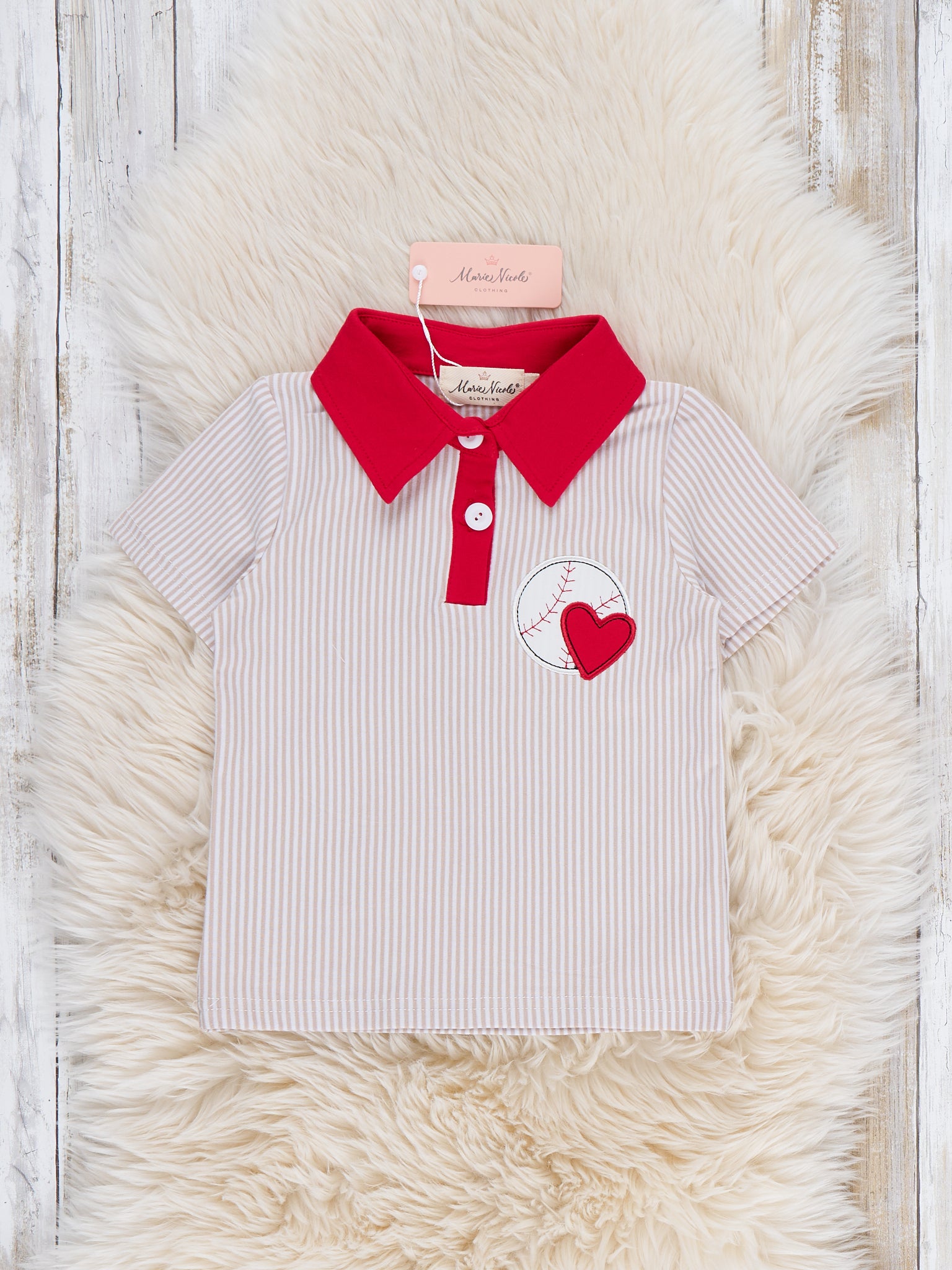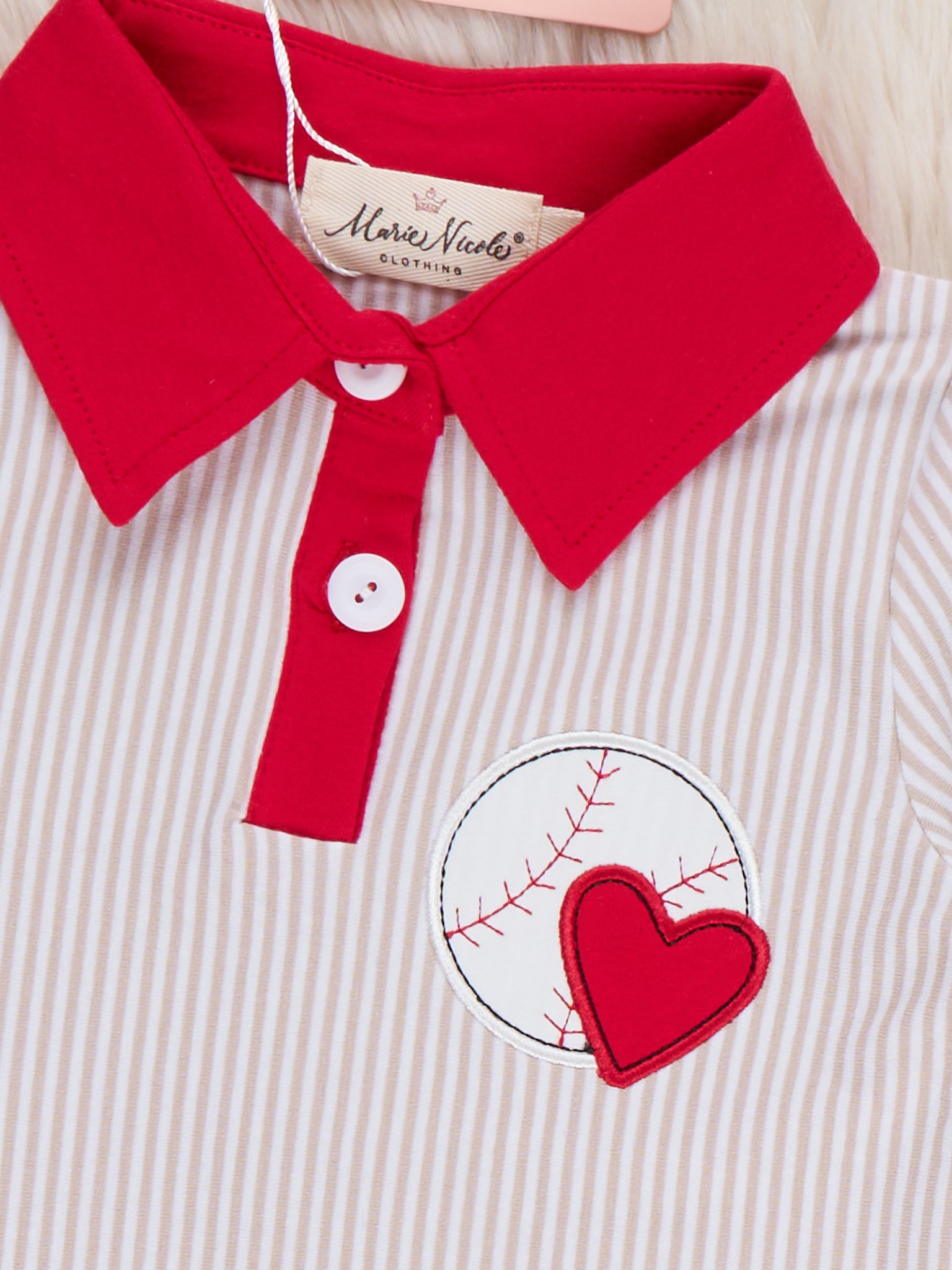 Love the Game Embroidered Cotton Shirt by Marie Nicole Clothing gives everyday outfits a sporty-sweet twist with subtle pinstripes, a contrast collar, and a heart-accented baseball applique over the chest. From Marie Nicole Clothing, this soft, easygoing polo pairs perfectly with shorts or jeans, making it a go-to pick for school days, outings, and casual game-day fun.