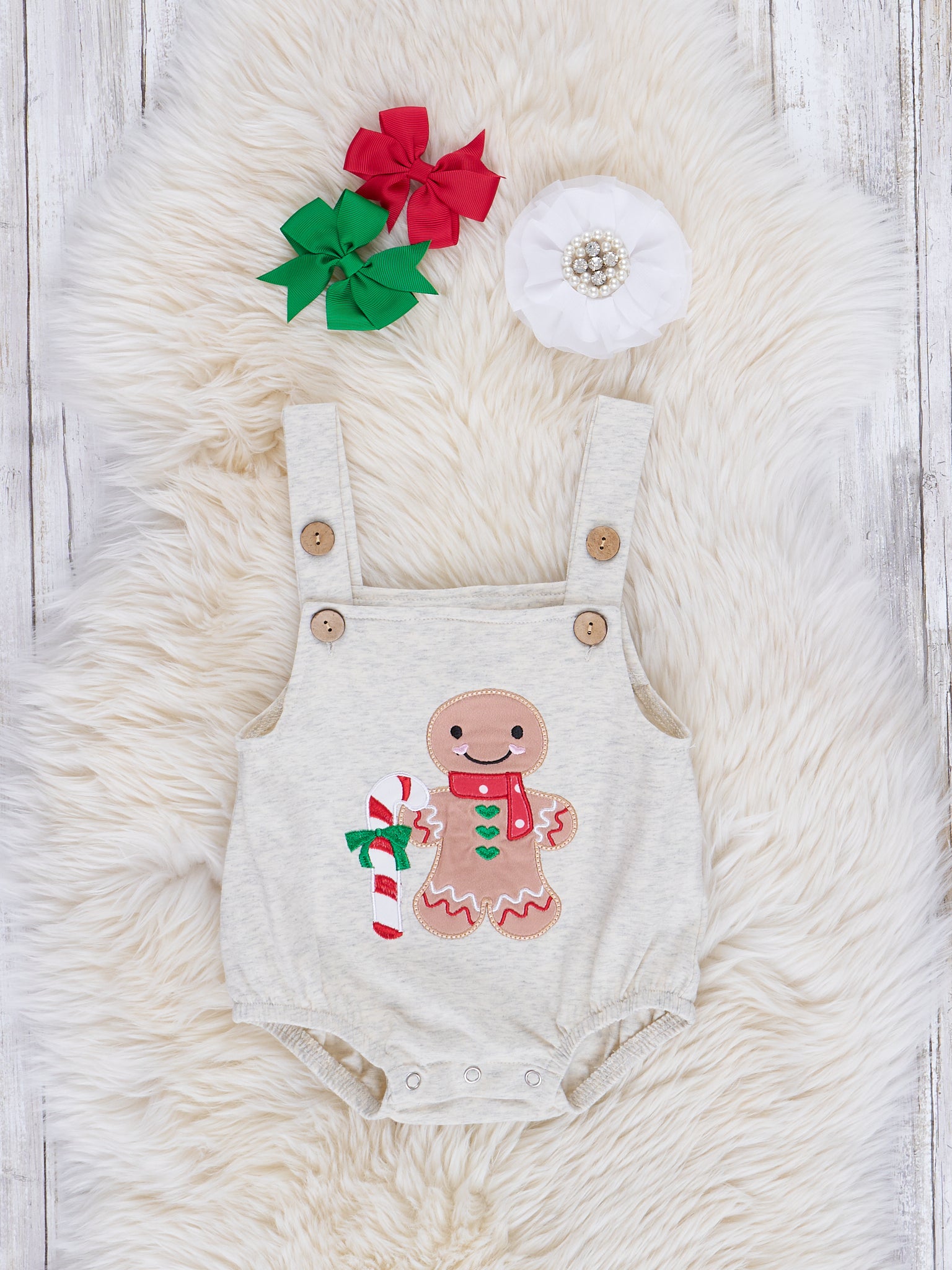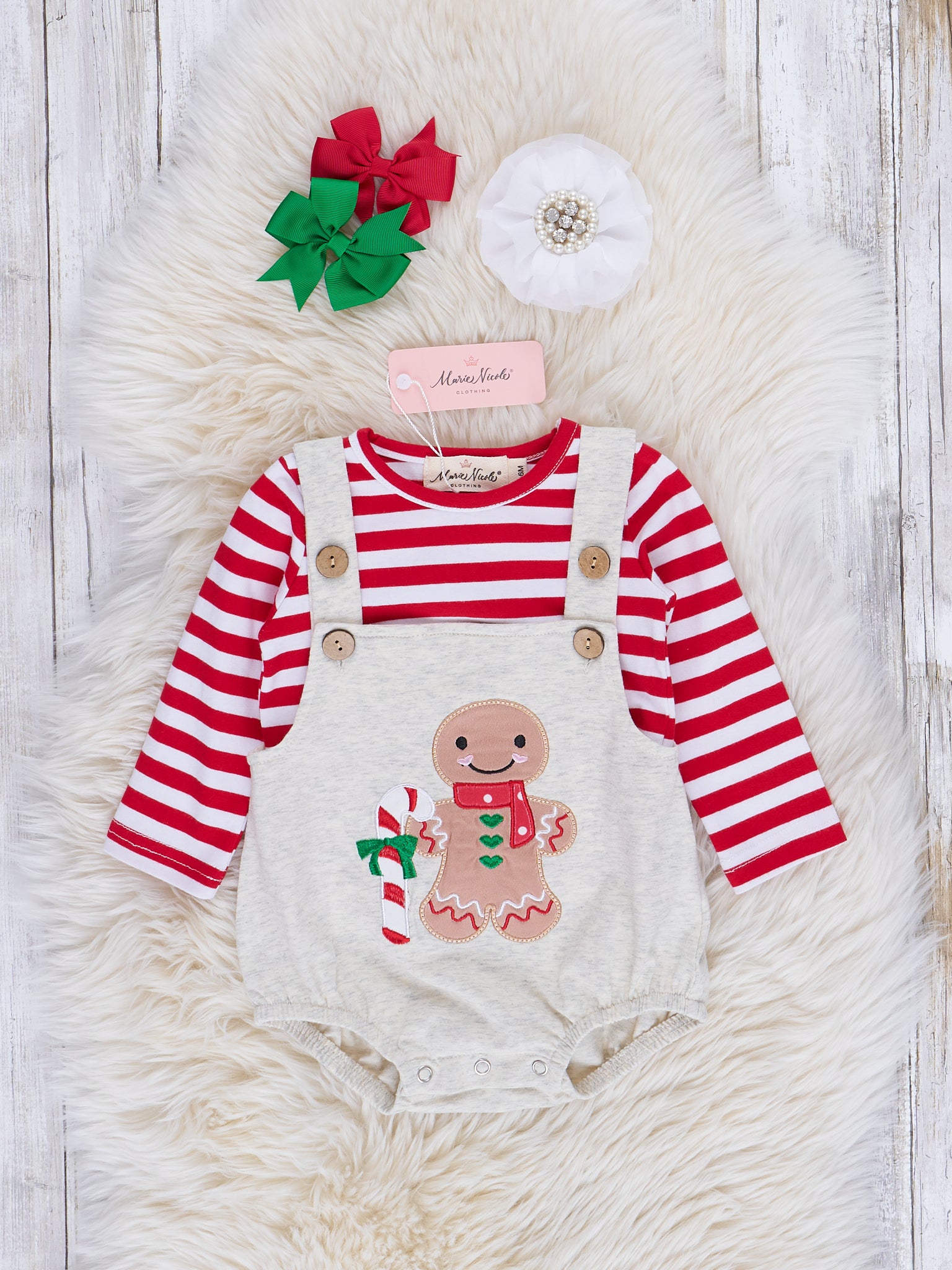 Grey & Red Stripe Gingerbread Overalls Bubble