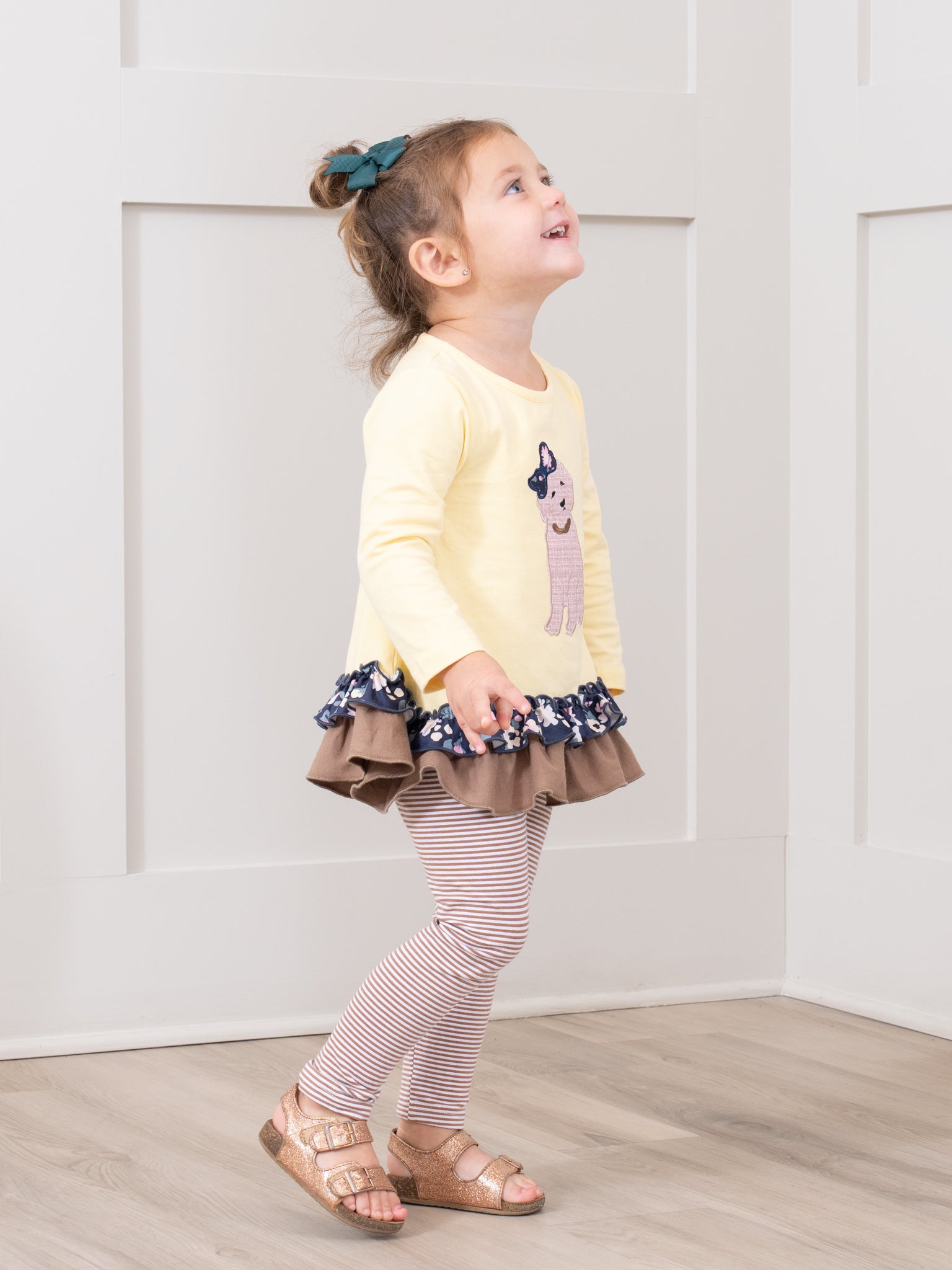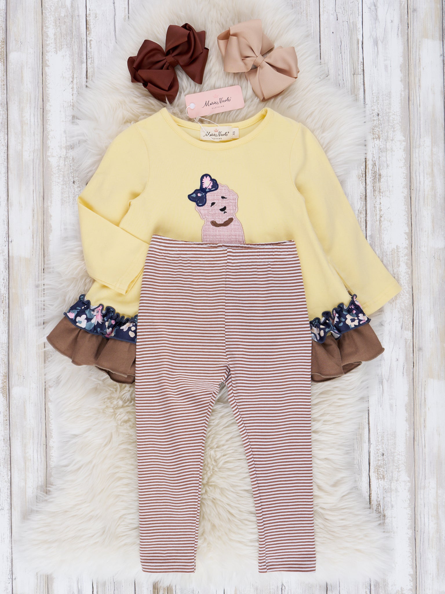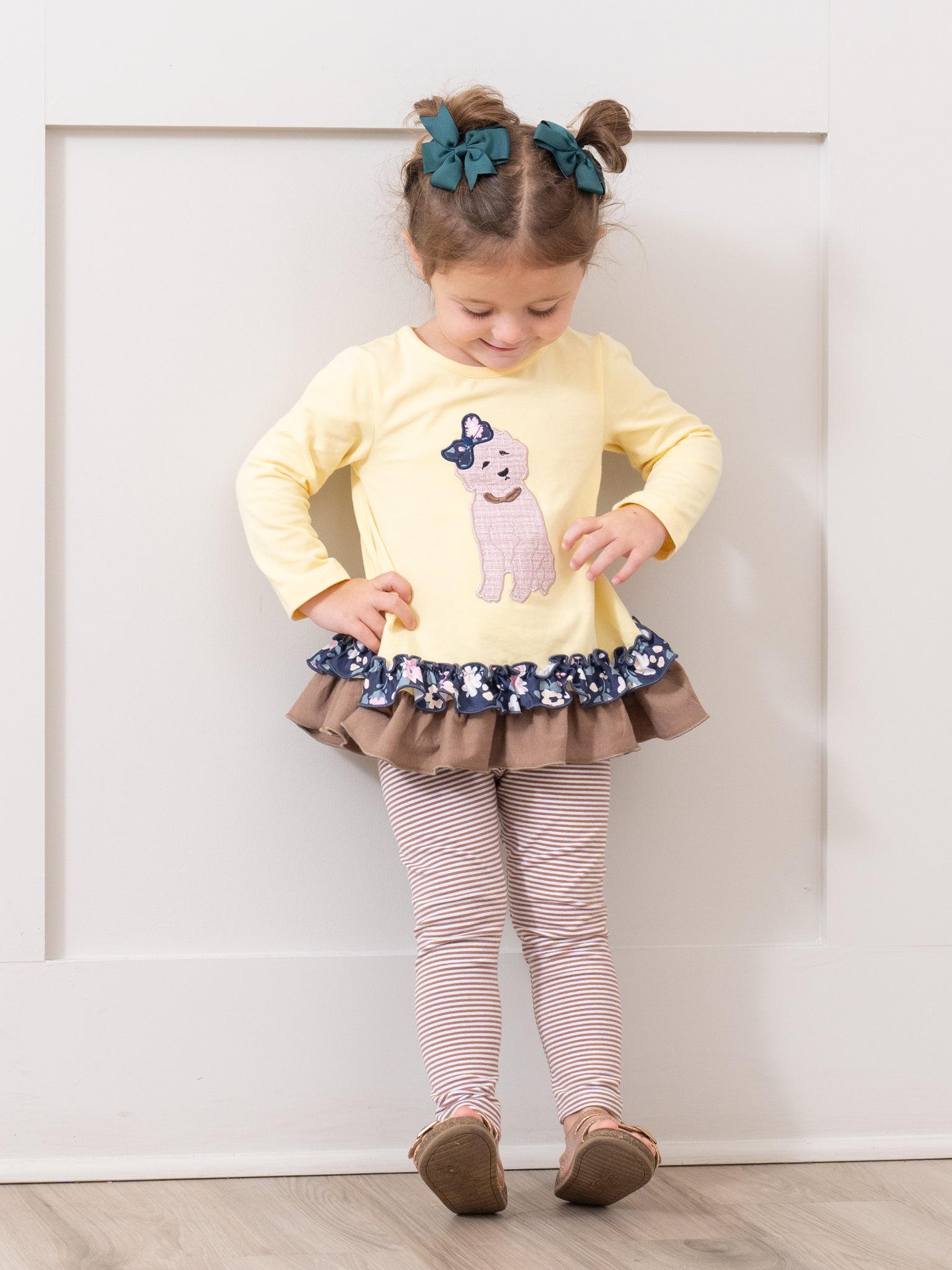 Canary & Brown Embroidered Puppy Ruffle Outfit