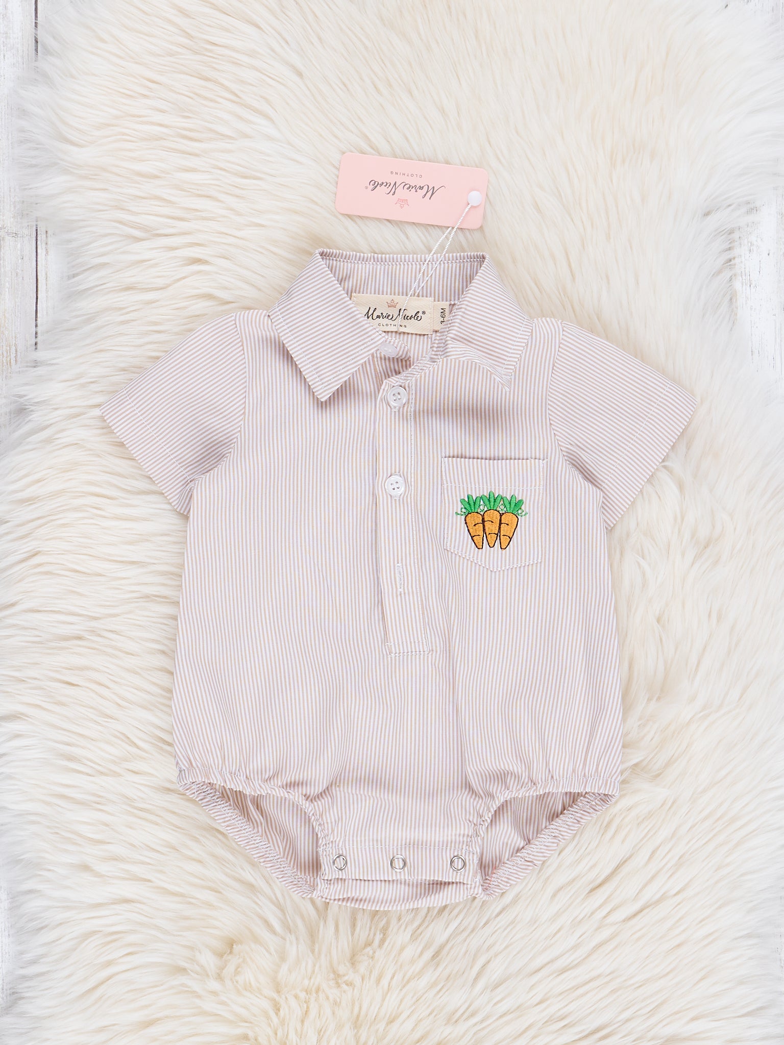 Tan Stripes Embroidered Carrot Button Up Bubble