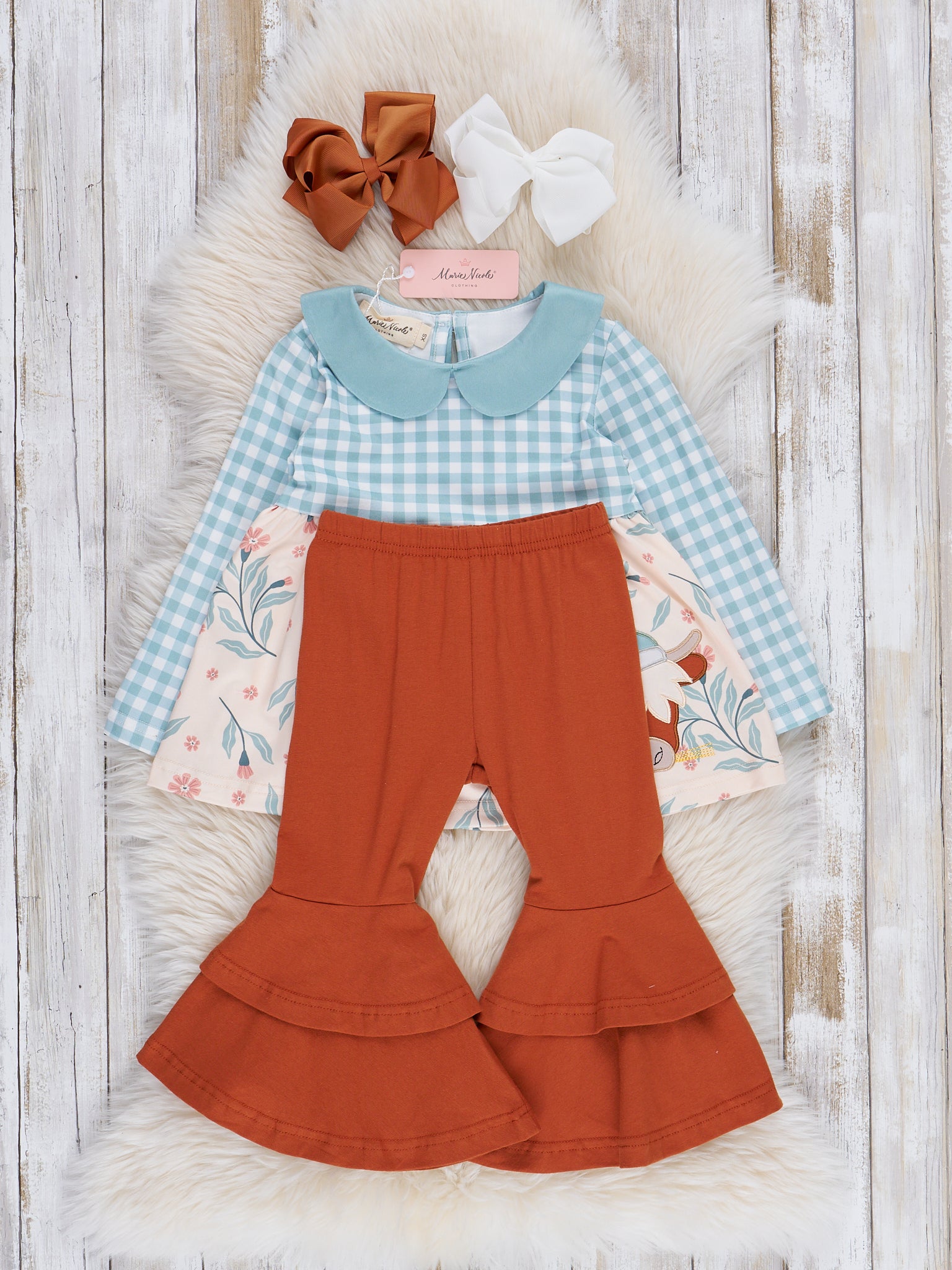 Embroidered Christmas Cow Gingham Bell Bottoms Outfit