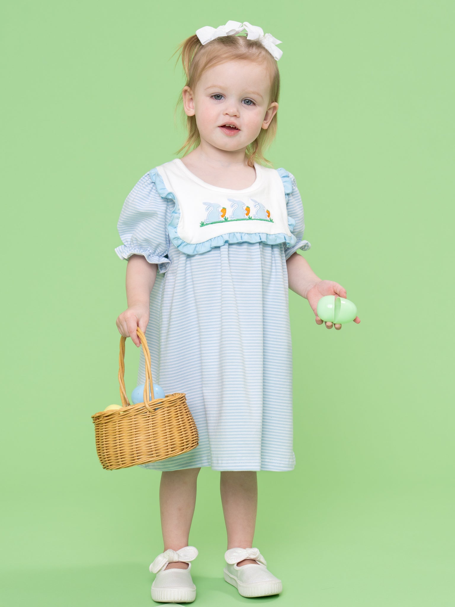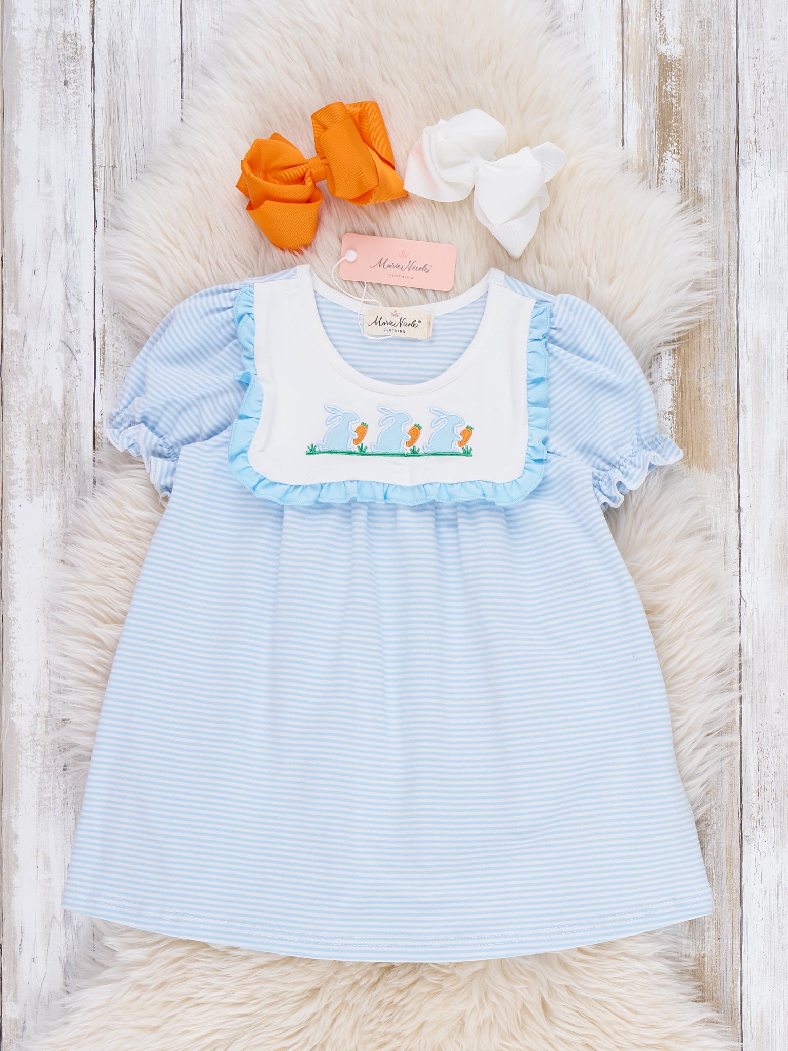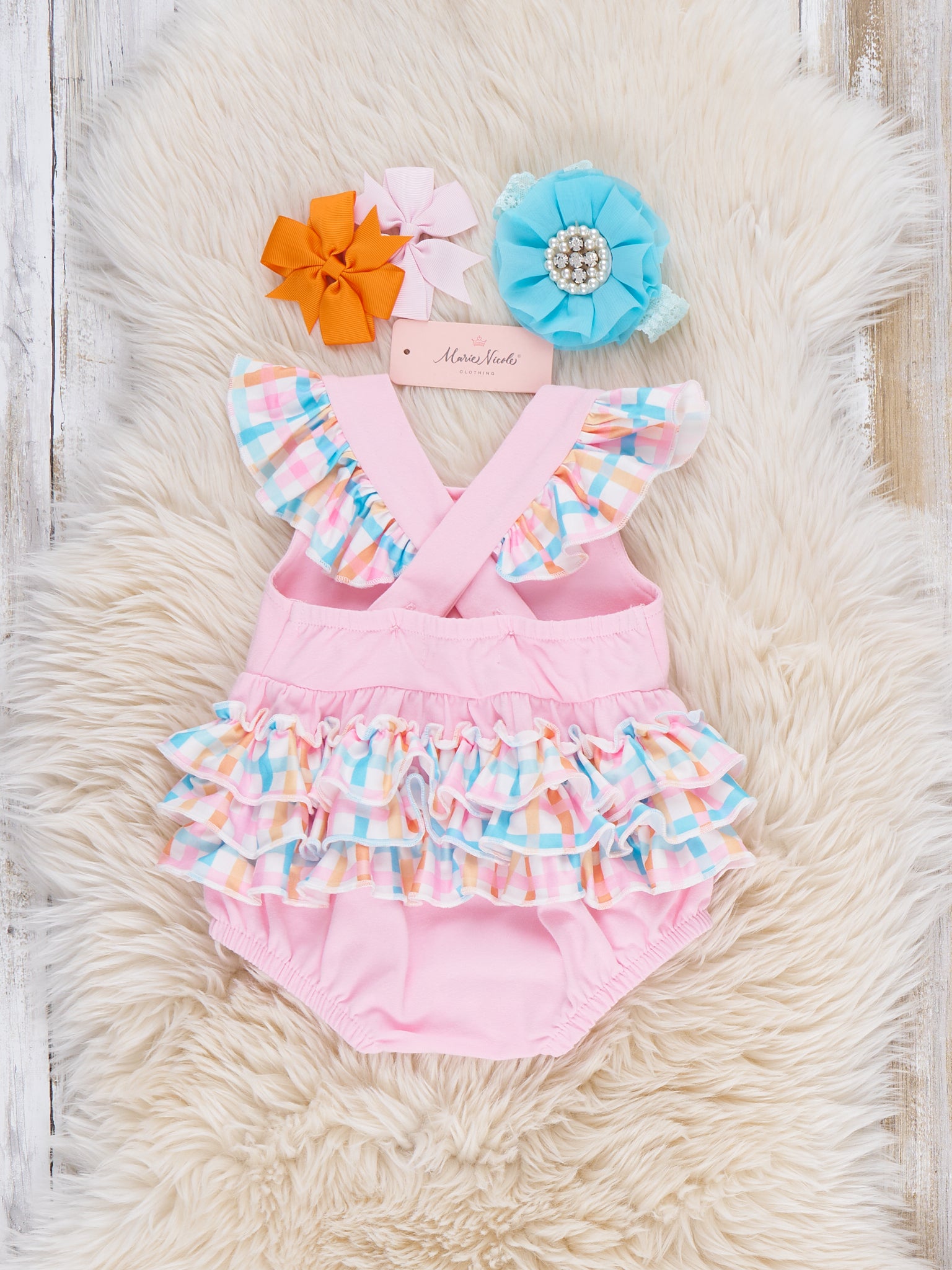 Get your little one ready for a day of fun with our Happy Cow Striped Bubble! This adorable overall romper by Marie Nicole Clothing features a blue striped bodice with an embroidered happy cow. The adjustable straps add a playful touch.