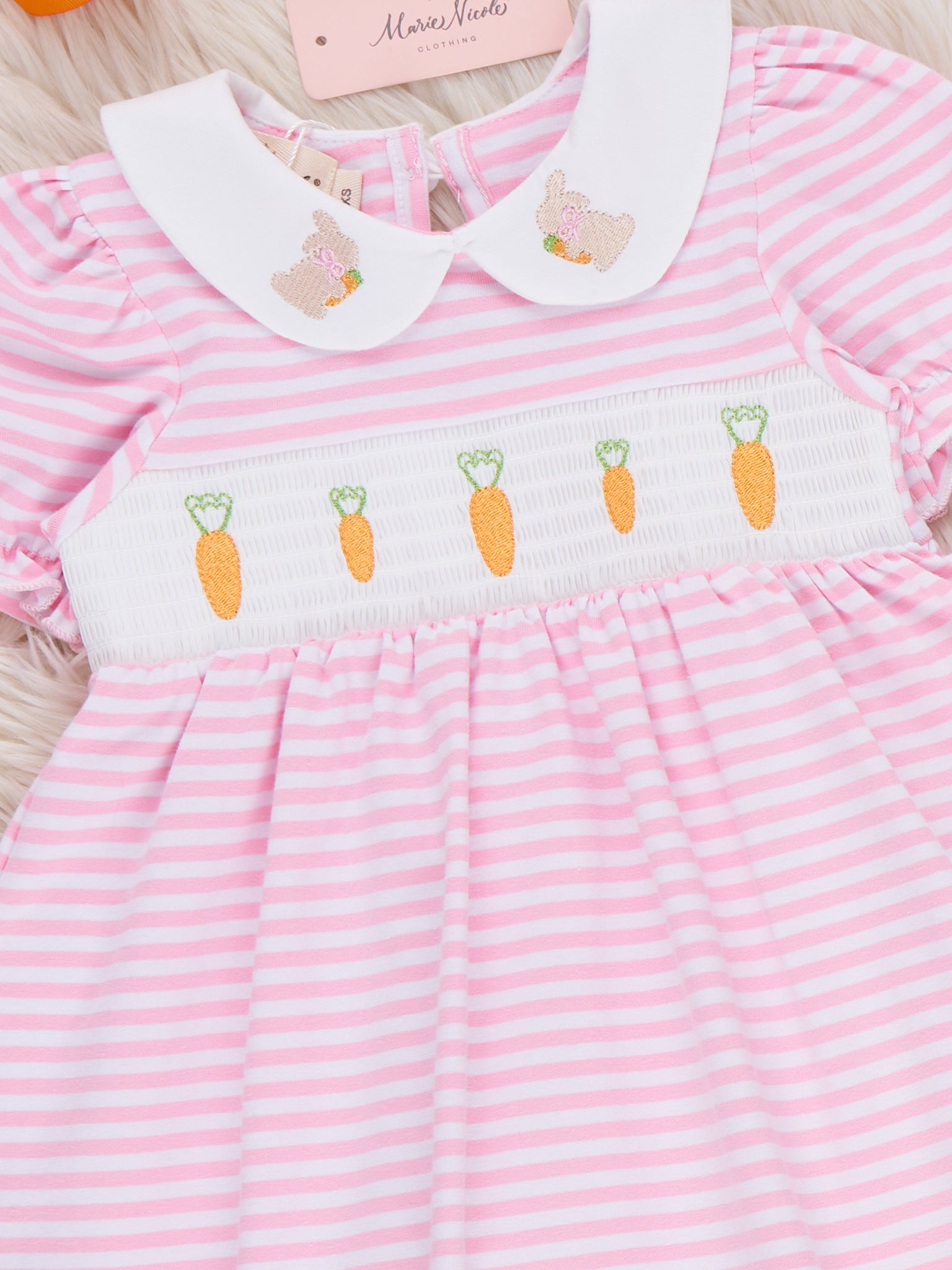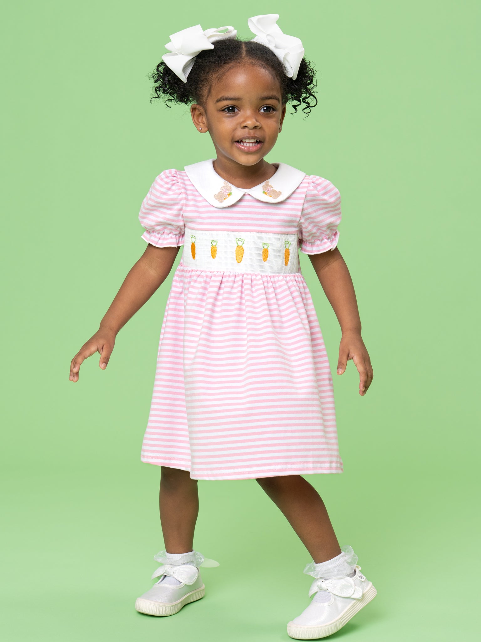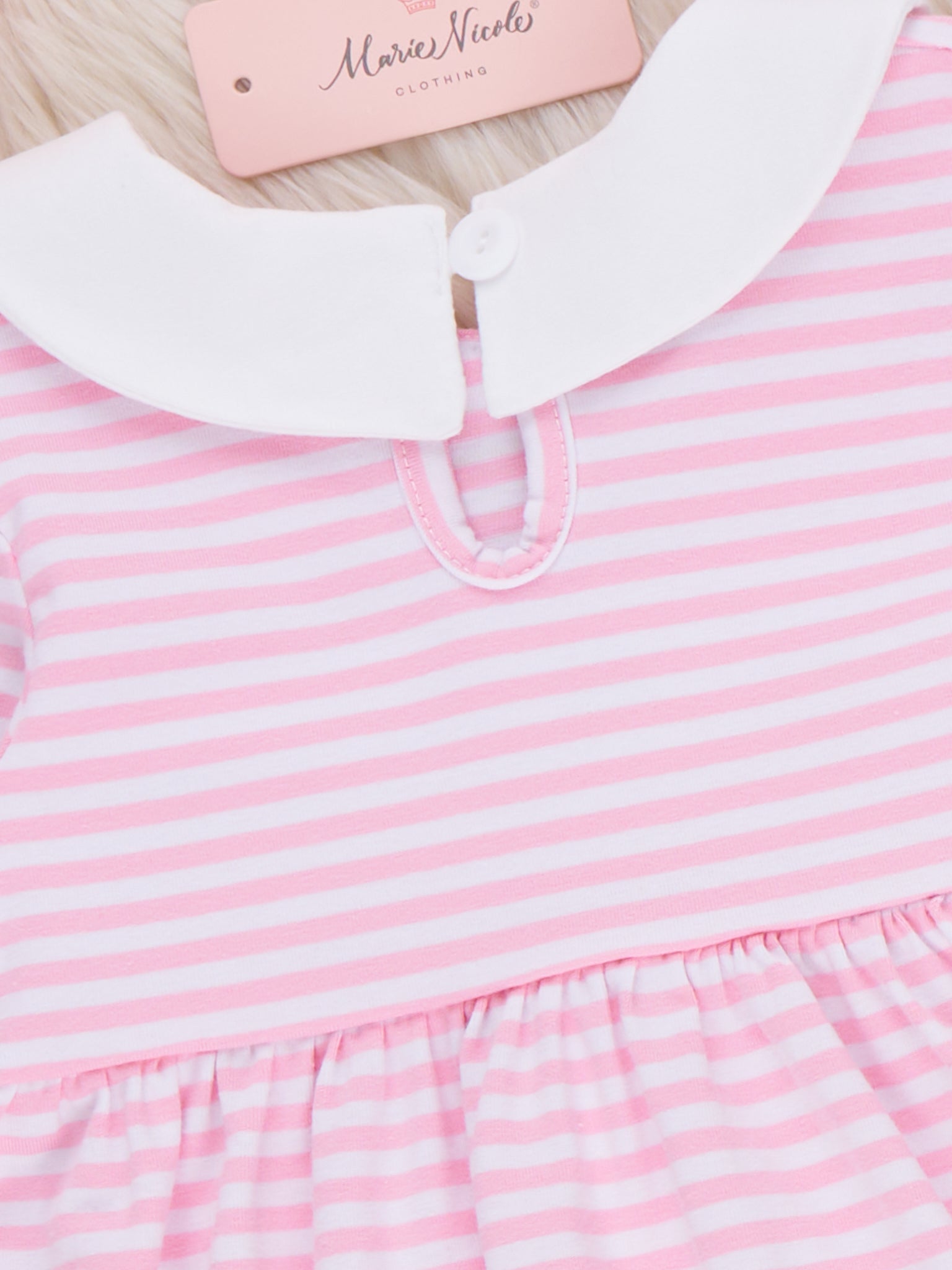 Get your little one ready for a day of fun with our Happy Cow Striped Bubble! This adorable overall romper by Marie Nicole Clothing features a blue striped bodice with an embroidered happy cow. The adjustable straps add a playful touch.