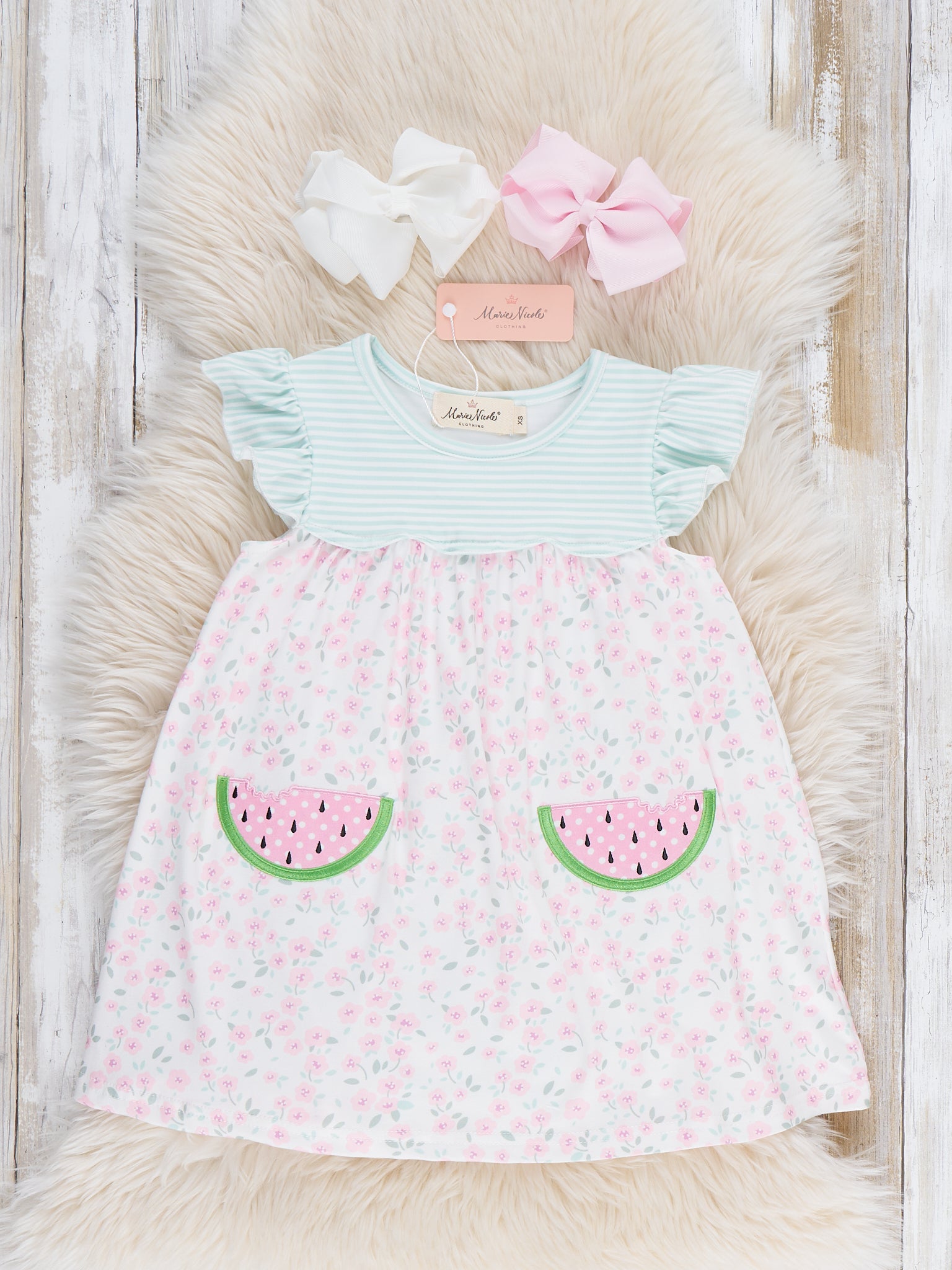Strawberry Twins Striped Embroidered Cotton Ruffle Dress