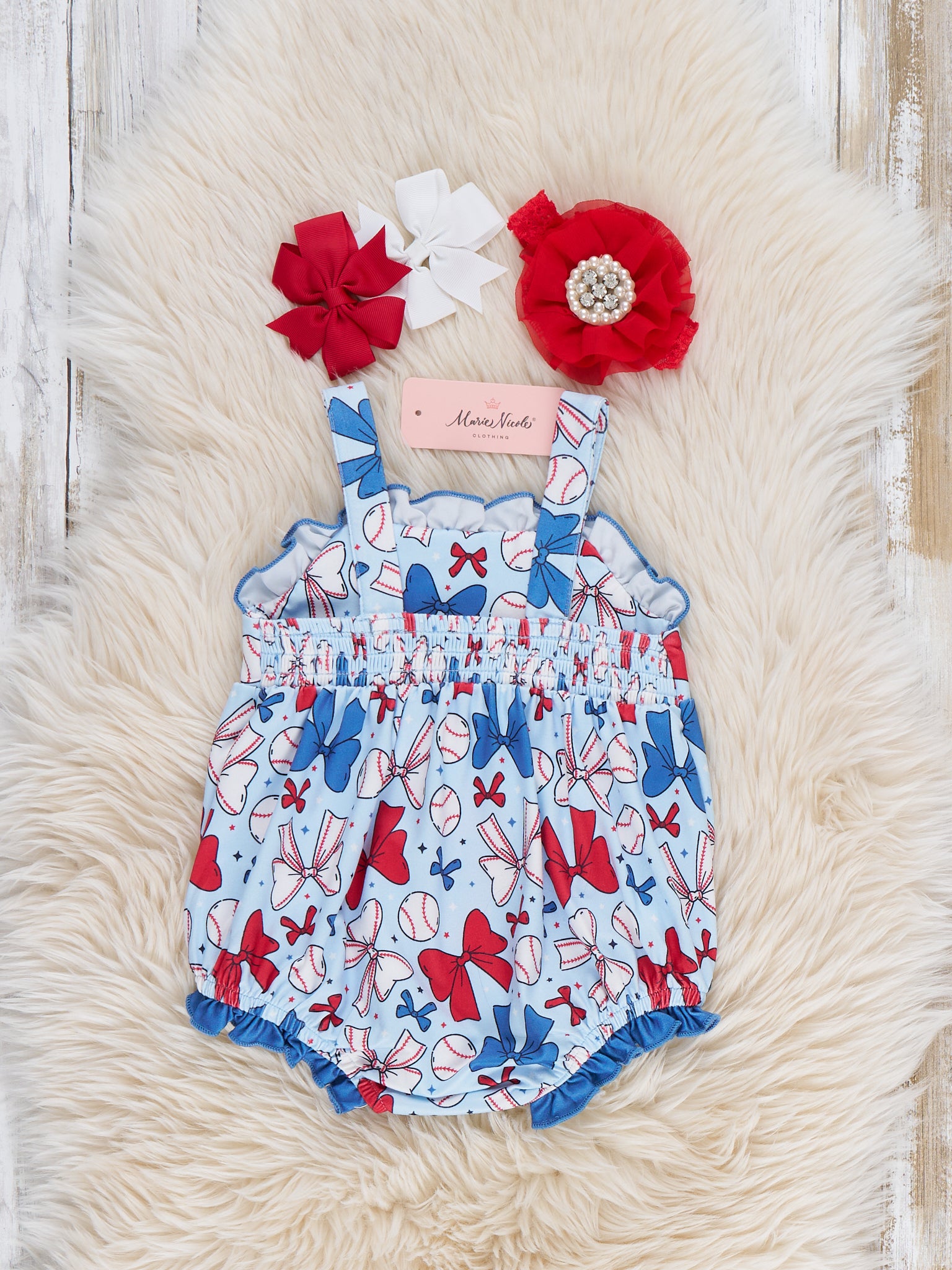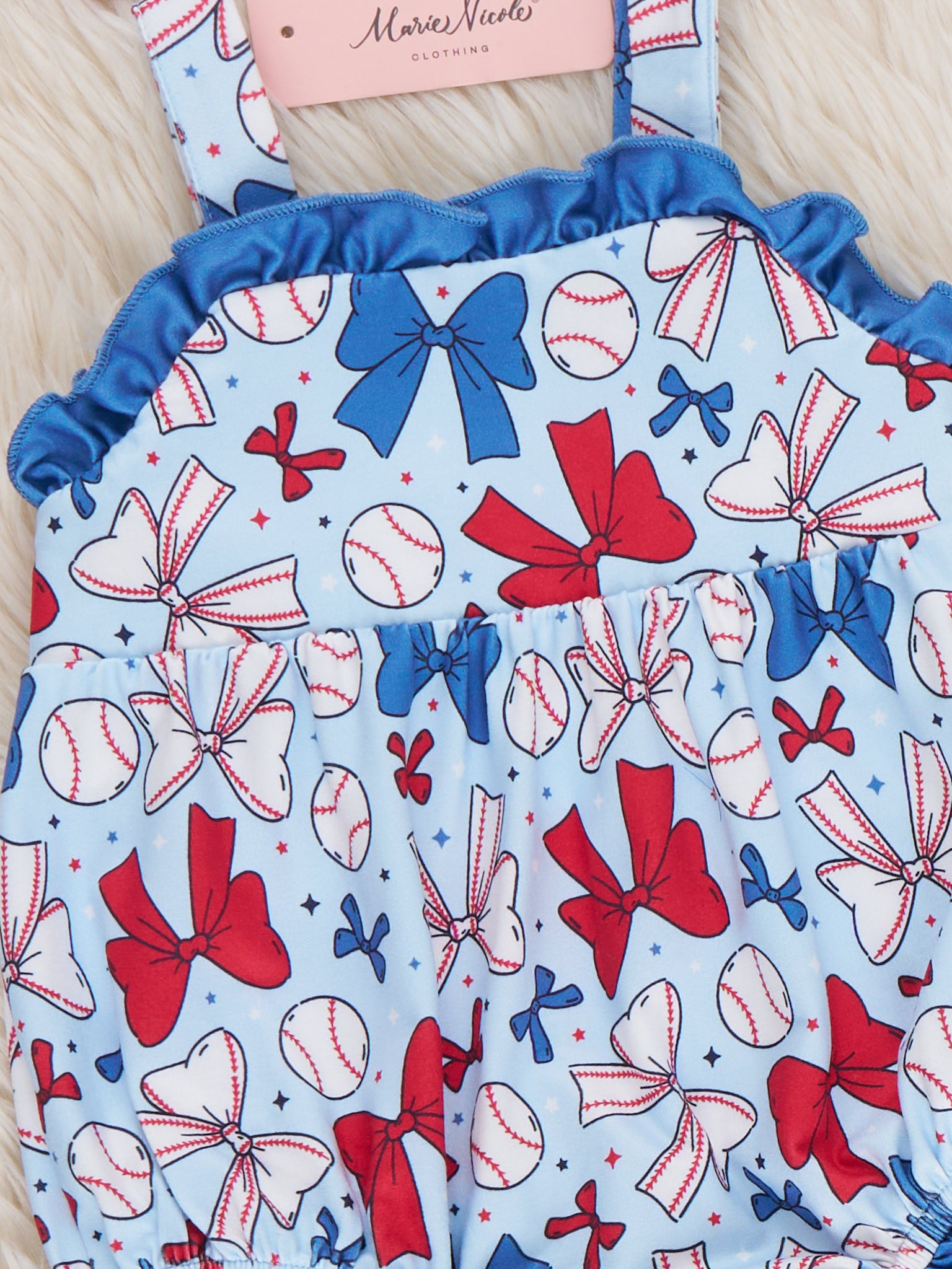 Ribbon Round Baseball Rally Ruffle Bubble Romper