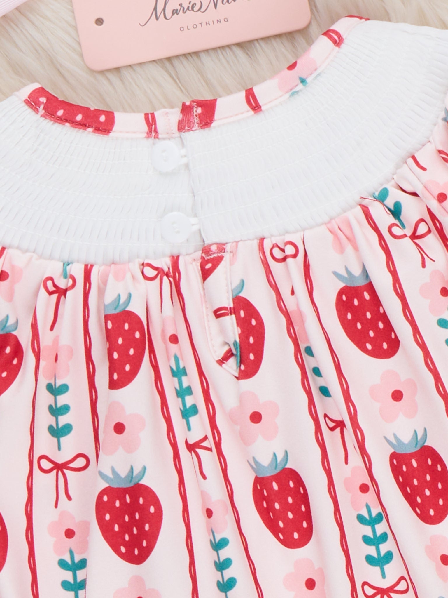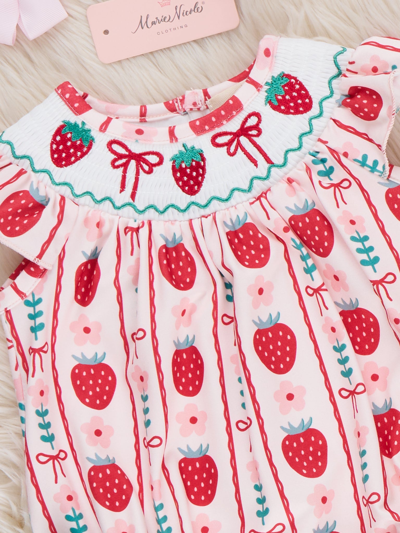 Strawberry Rows Smocked Bubble