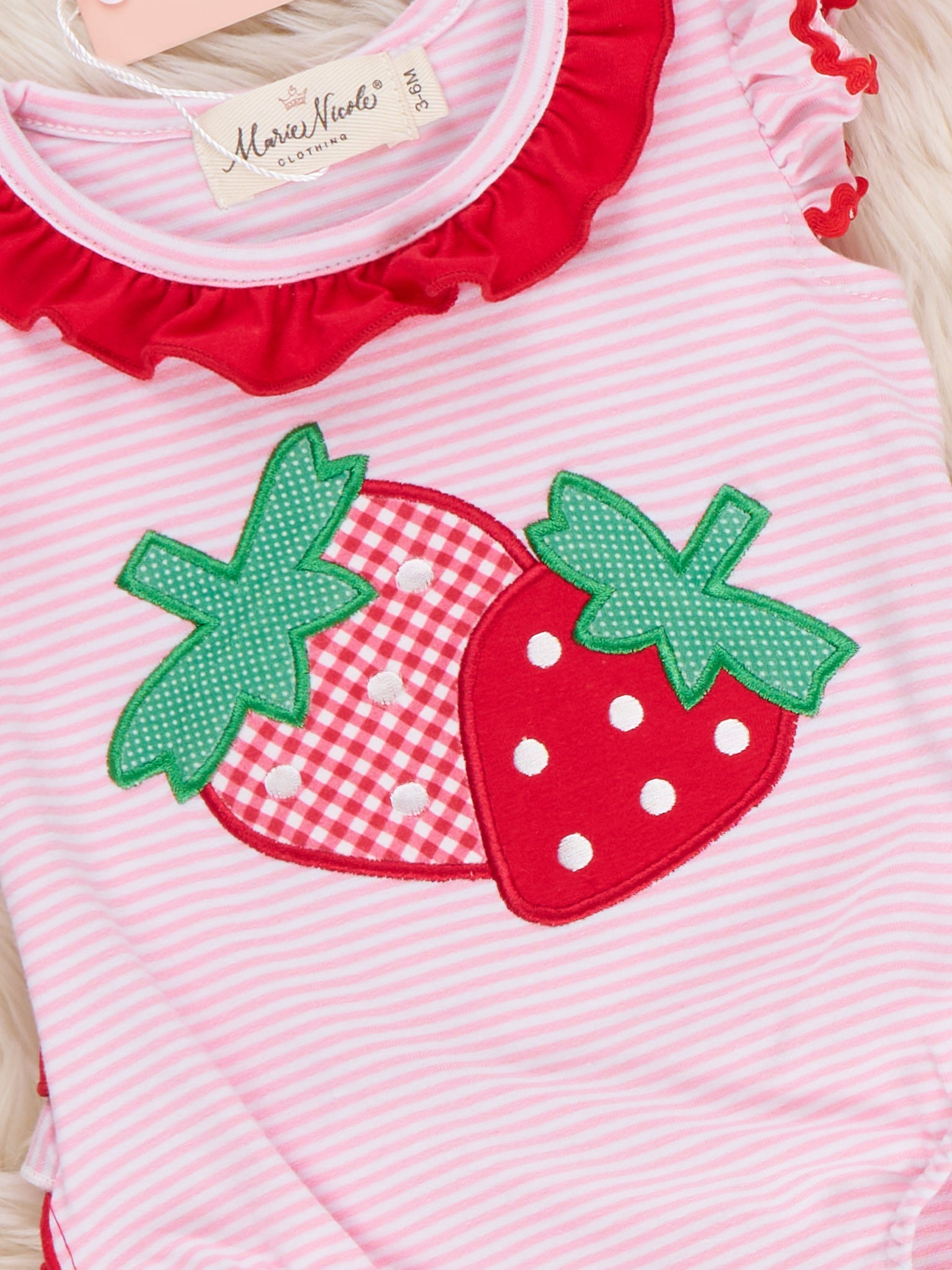 Strawberry Twins Striped Embroidered Cotton Ruffle Bubble
