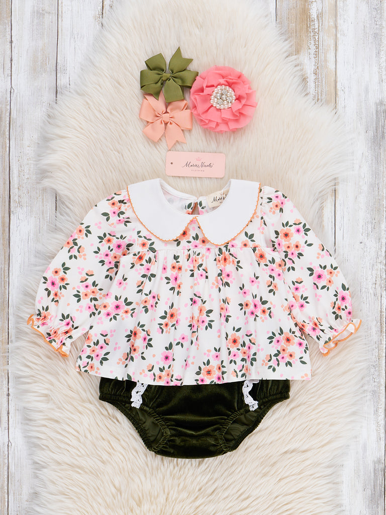 Maple Bloom Embroidered Bow Bloomers Outfit