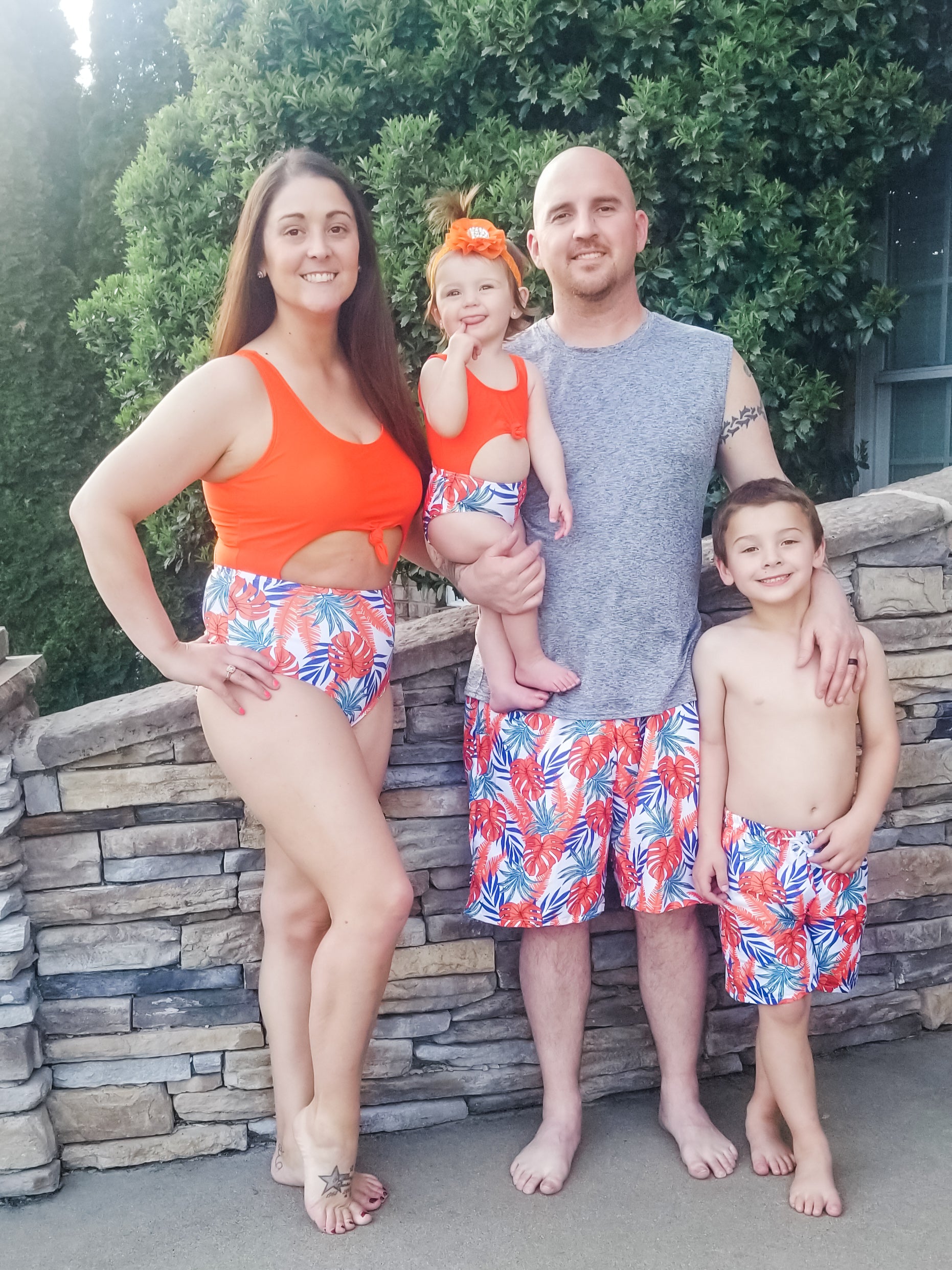 Your family will be the cutest on Summer vacay in these matching tropical swimsuits!