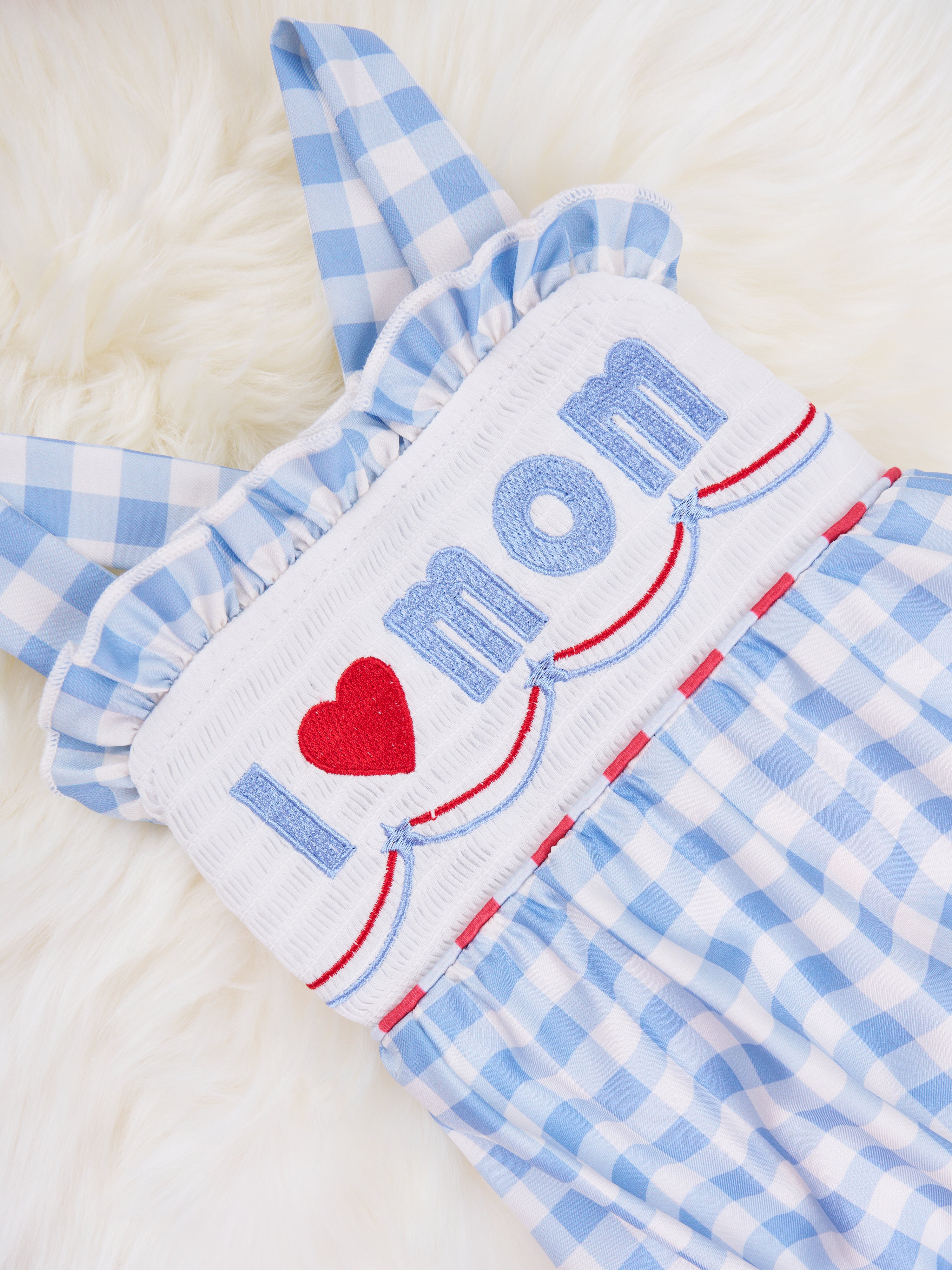Send your little ones off in style with this adorable sibling set! They'll both be dressed to impress with the checkered gingham and hand-smocked "I Love Mom" detail. It's the cutest way to show your kiddos' love!