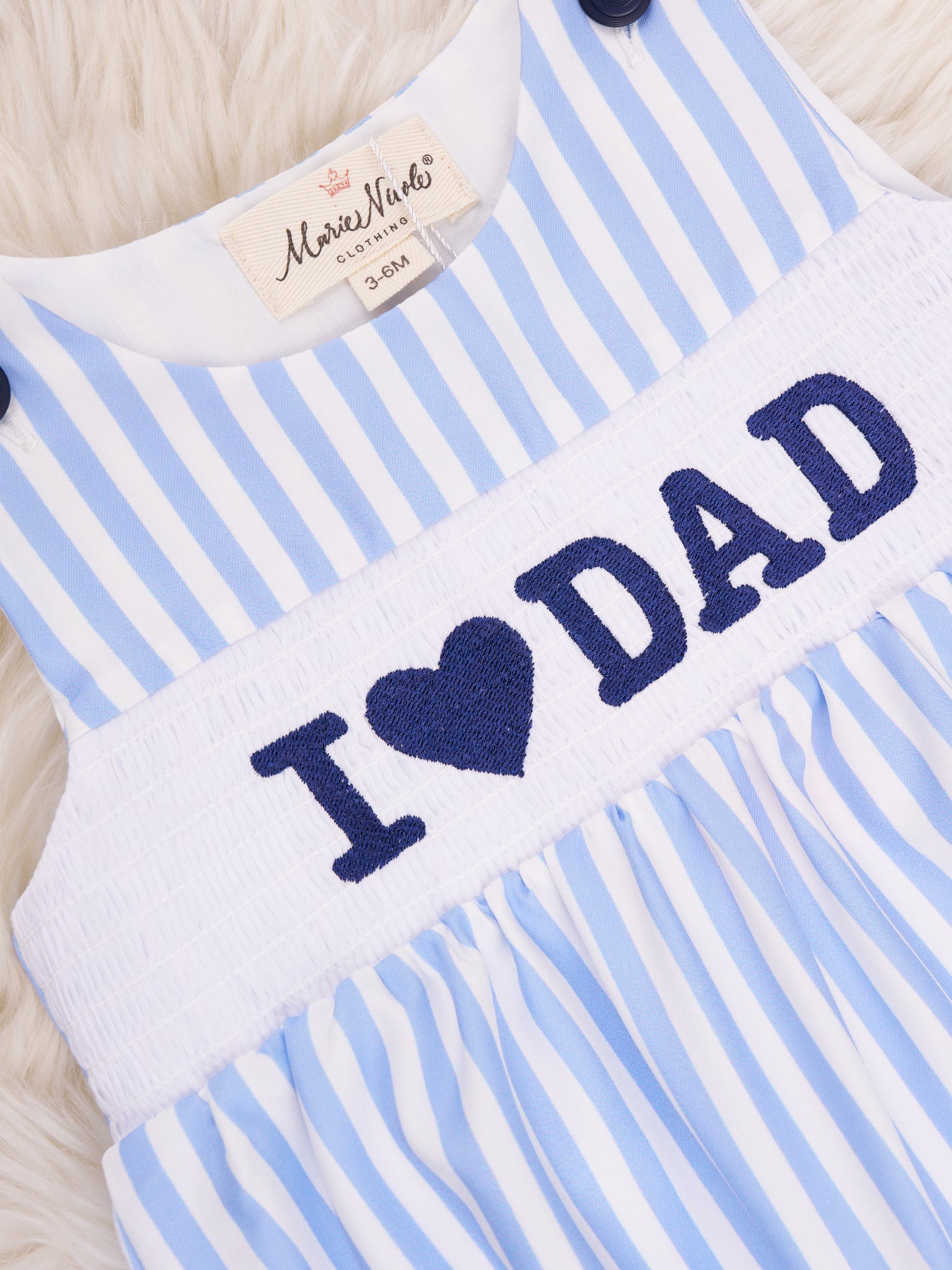 This striped sibling set is perfect for celebrating the best man in the house! Kids can stay in sync with the classic stripes while they express their pride with the "I Love Dad" embroidery. High quality and fun - Dad will love it!