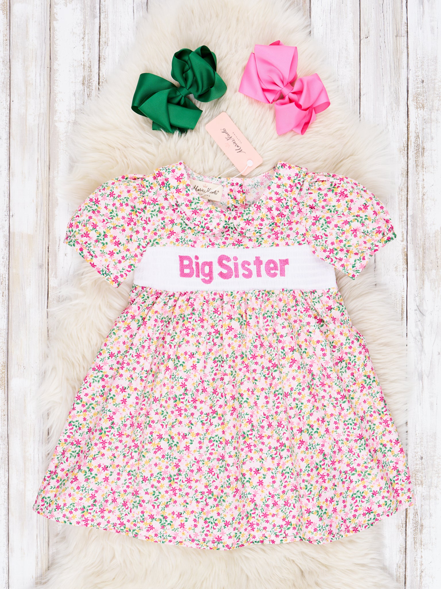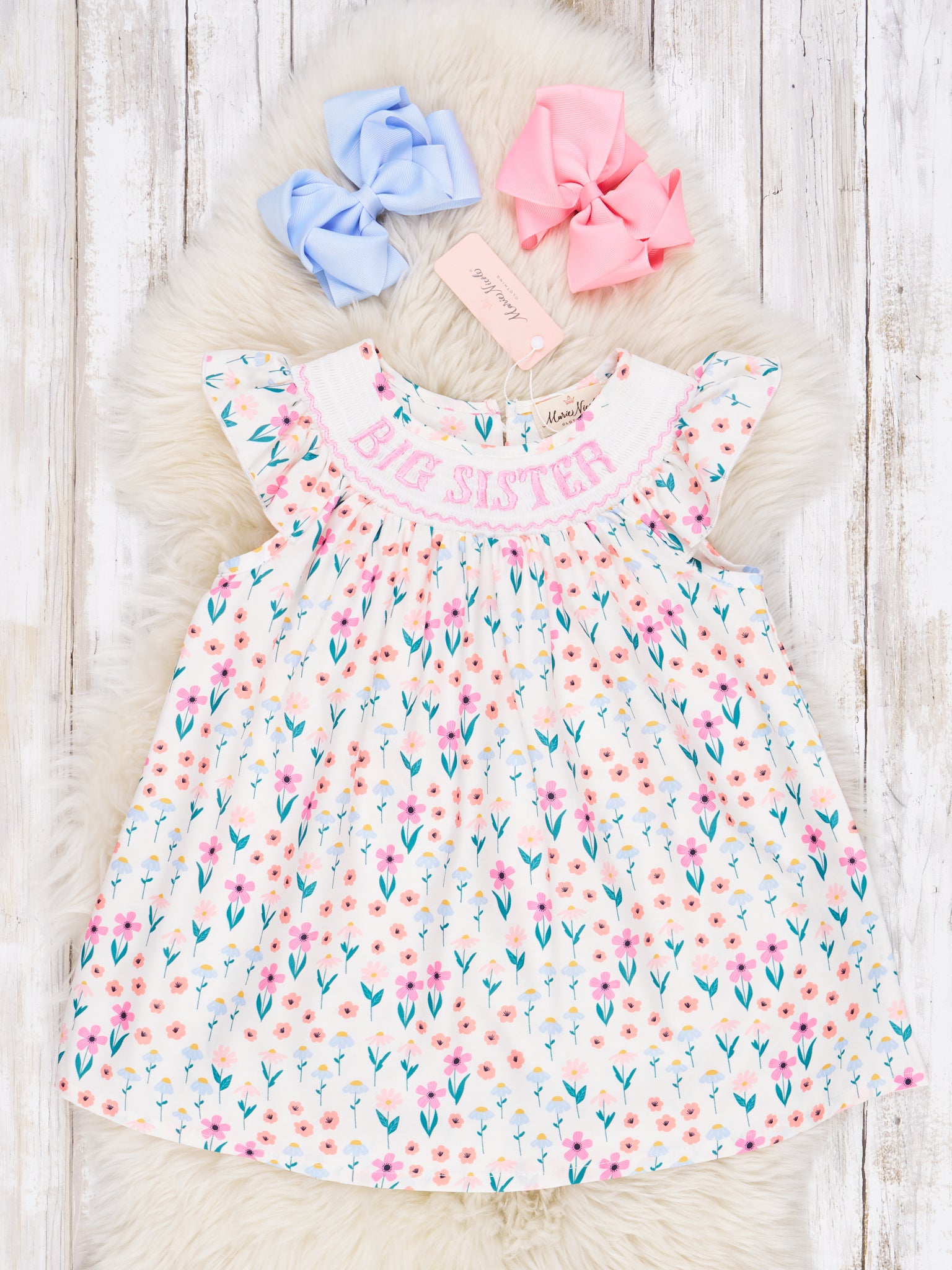 Smocked Floral "Big Sister" Ruffle Dress