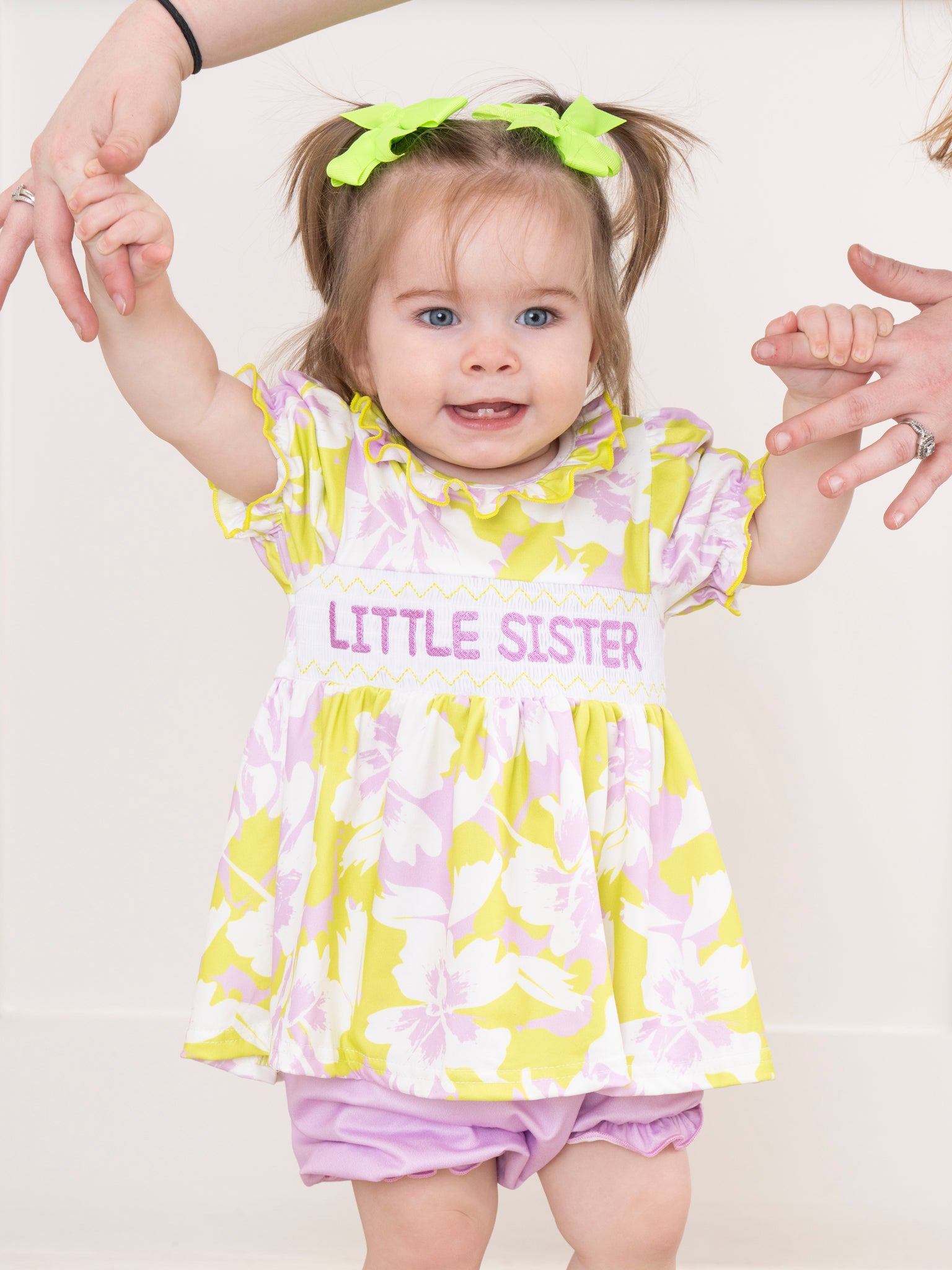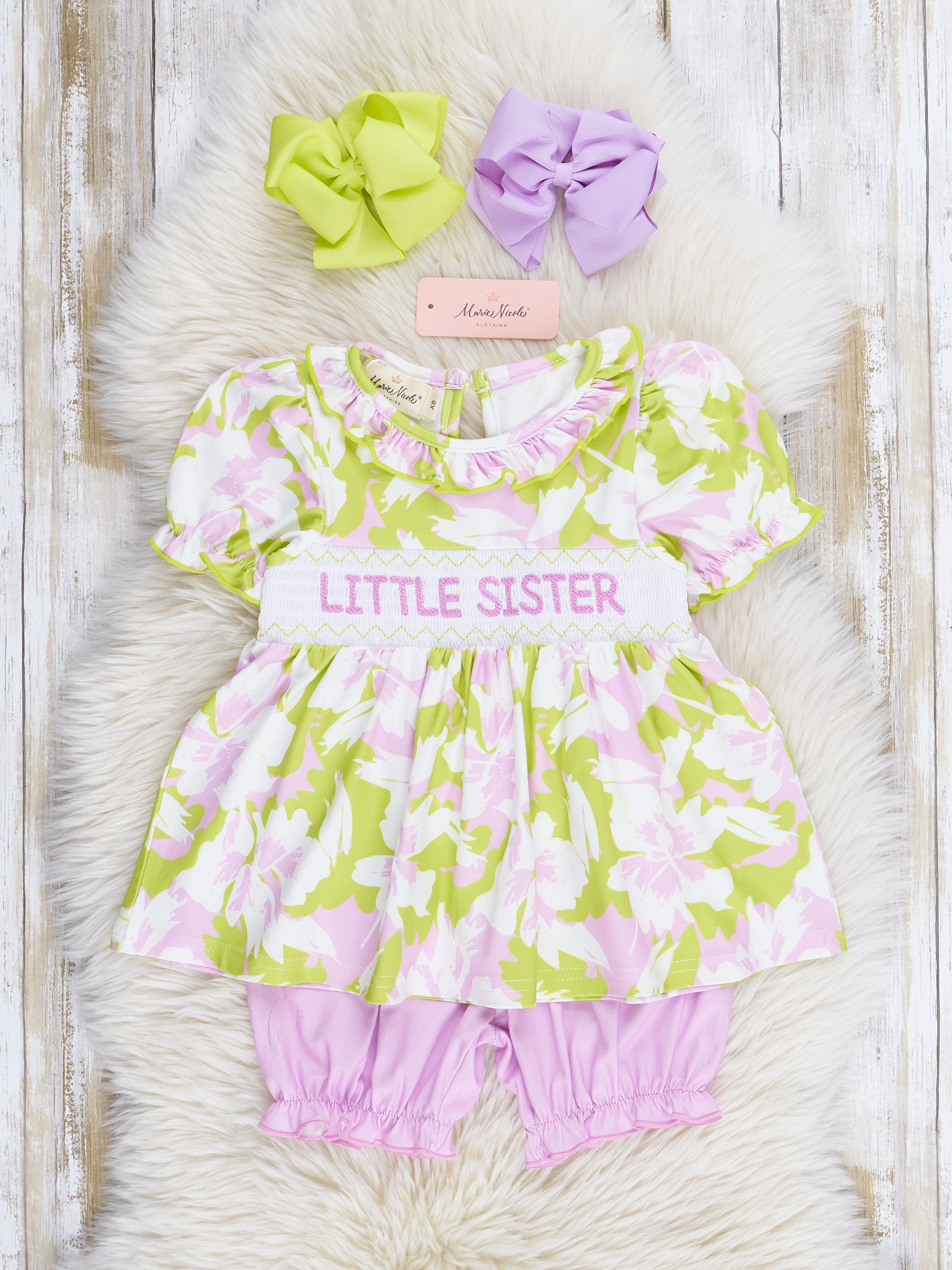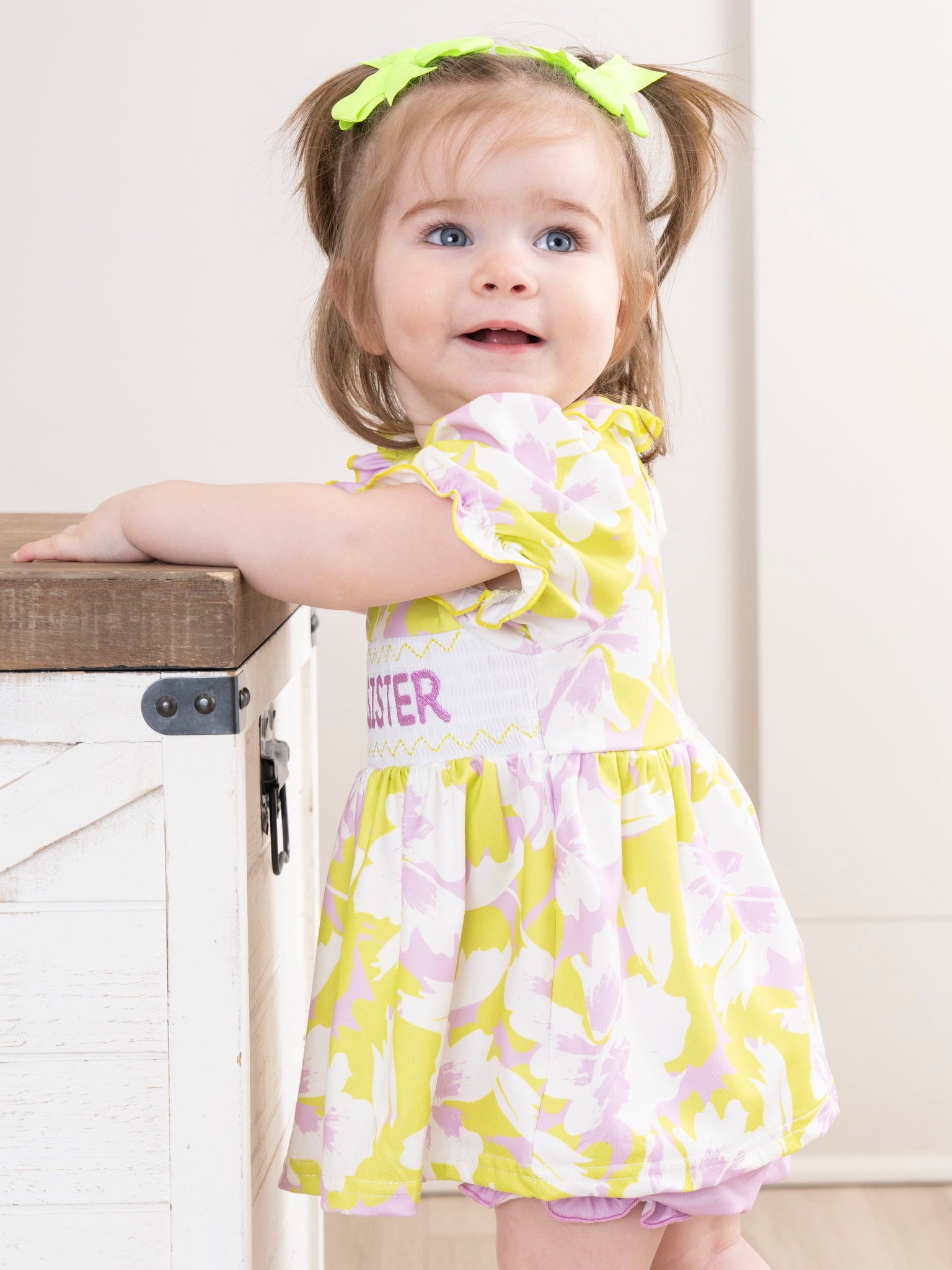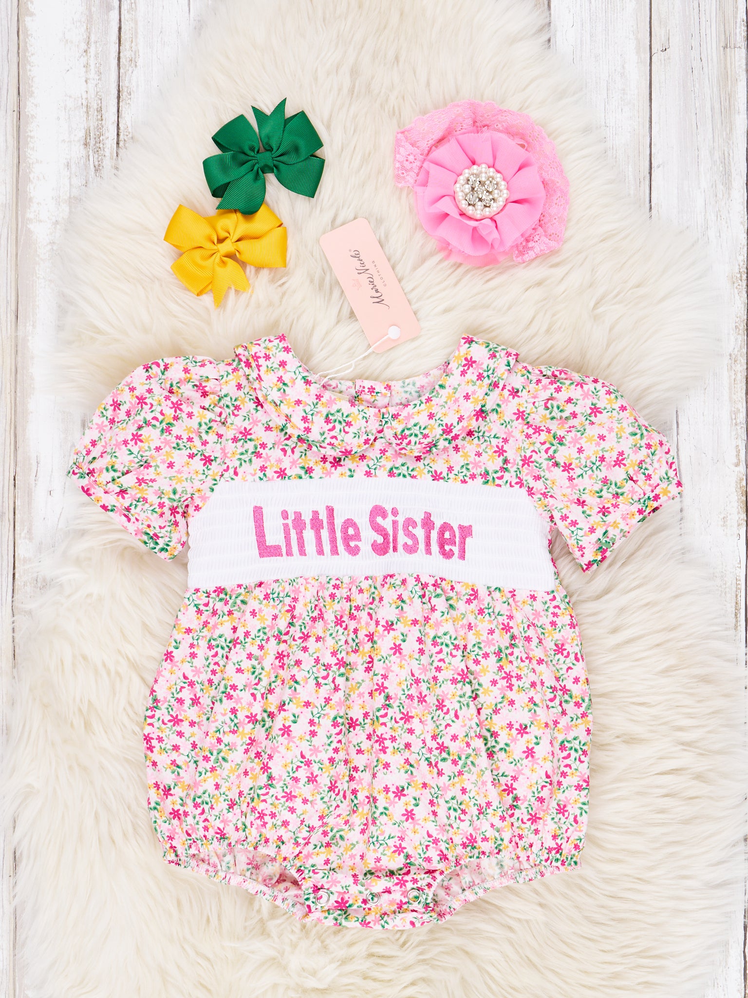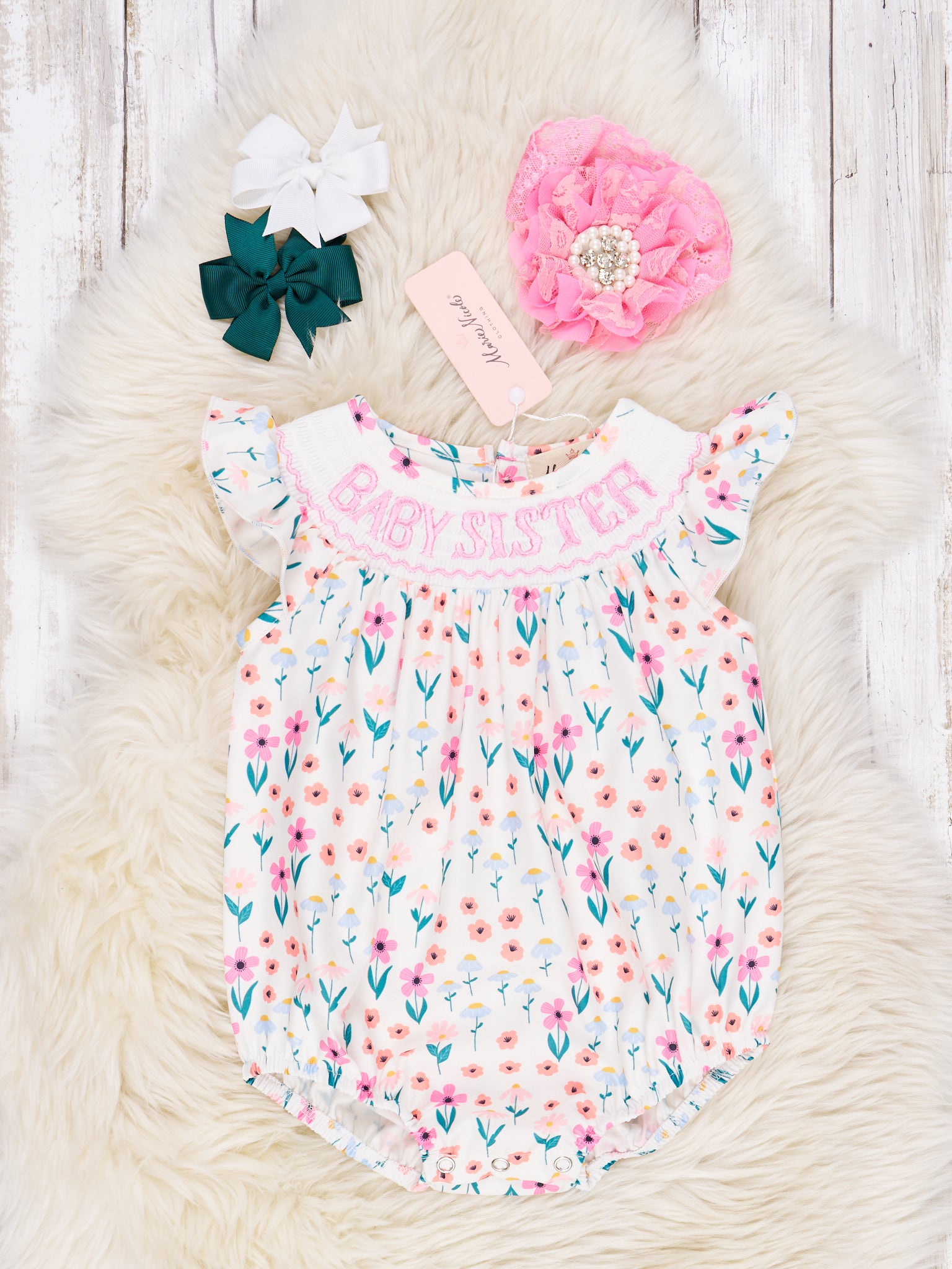 Smocked Floral "Baby Sister" Ruffle Romper