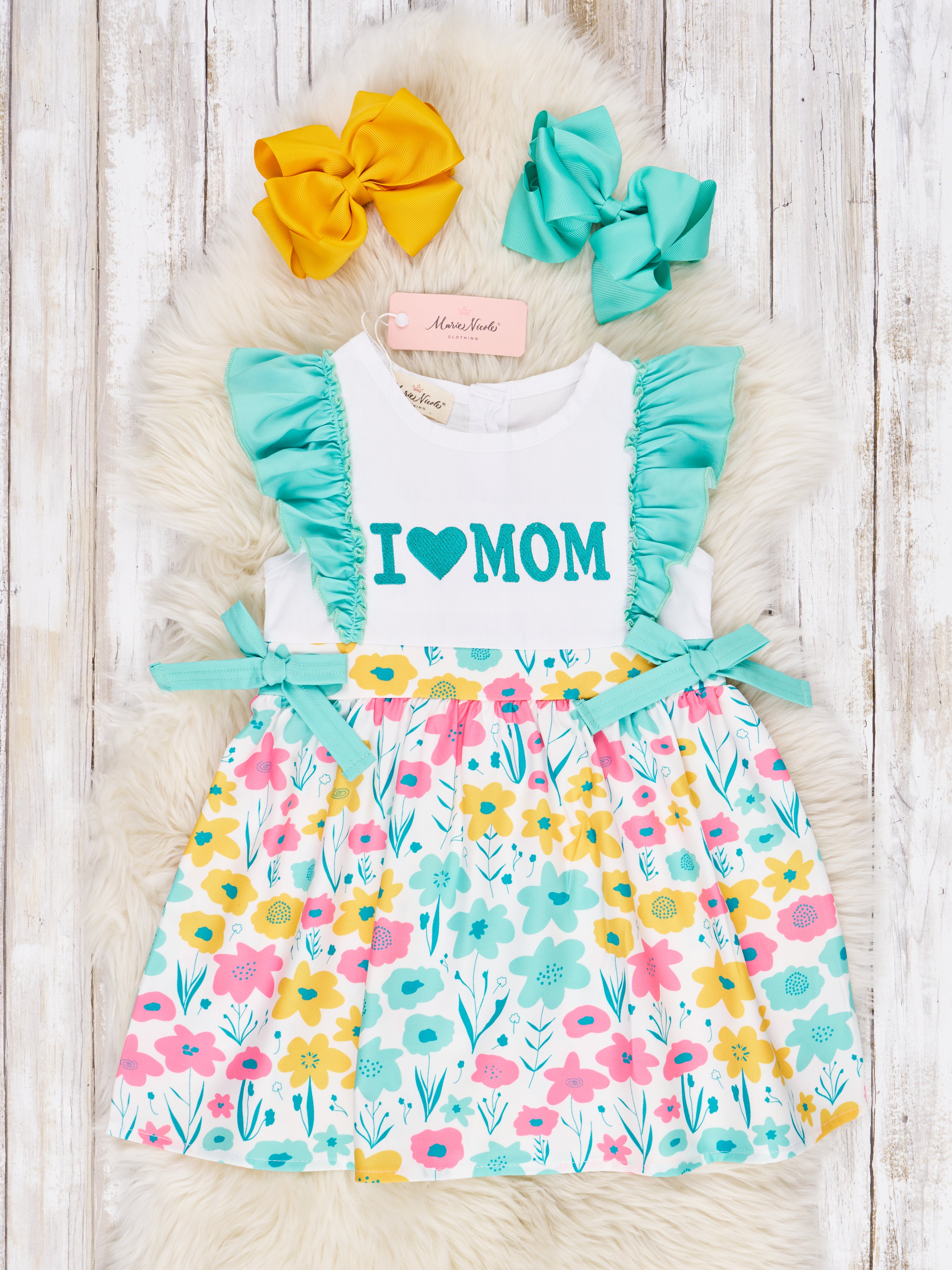 Mint "I Love Mom" Ruffle Dress