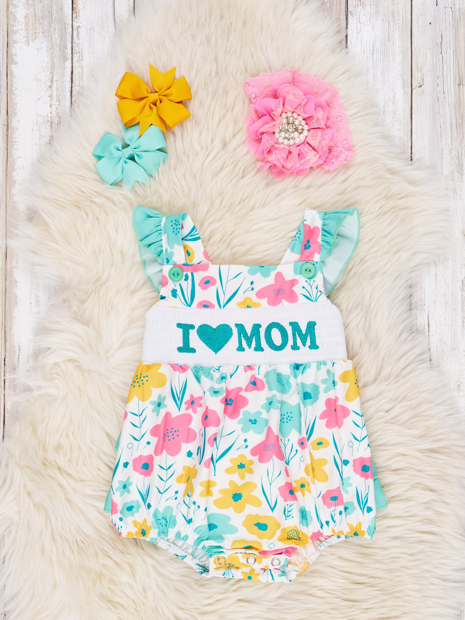 Mint "I Love Mom" Romper