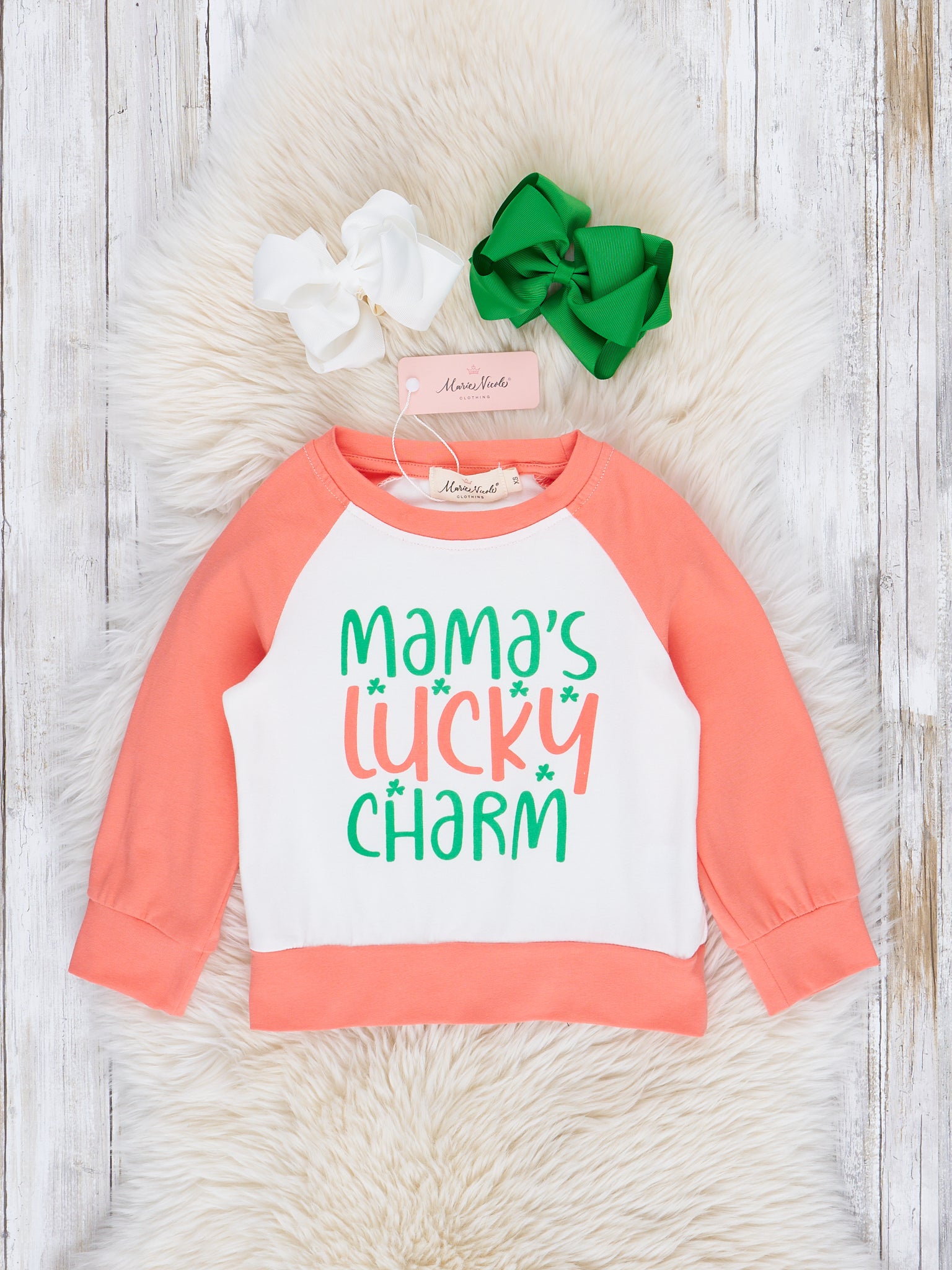 Coral Raglan "Mama's Lucky Charm" Shirt