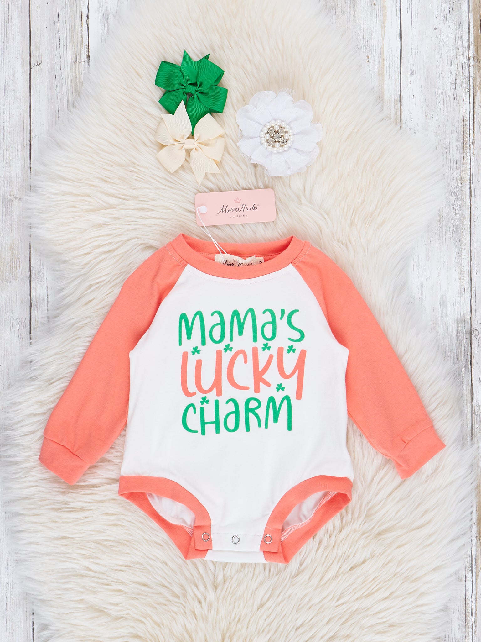 Coral Raglan "Mama's Lucky Charm" Romper