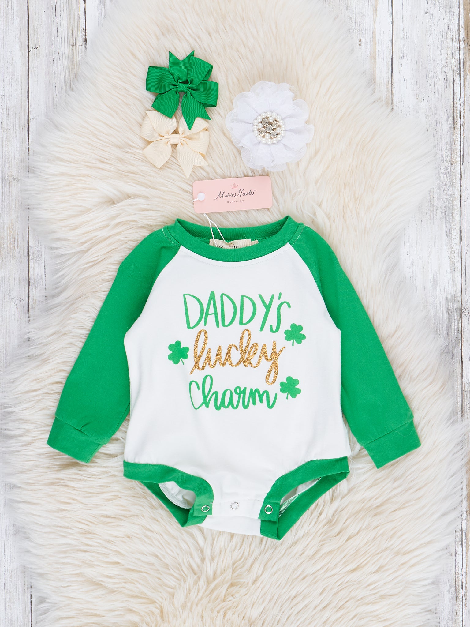 Green Raglan "Daddy's Lucky Charm" Romper