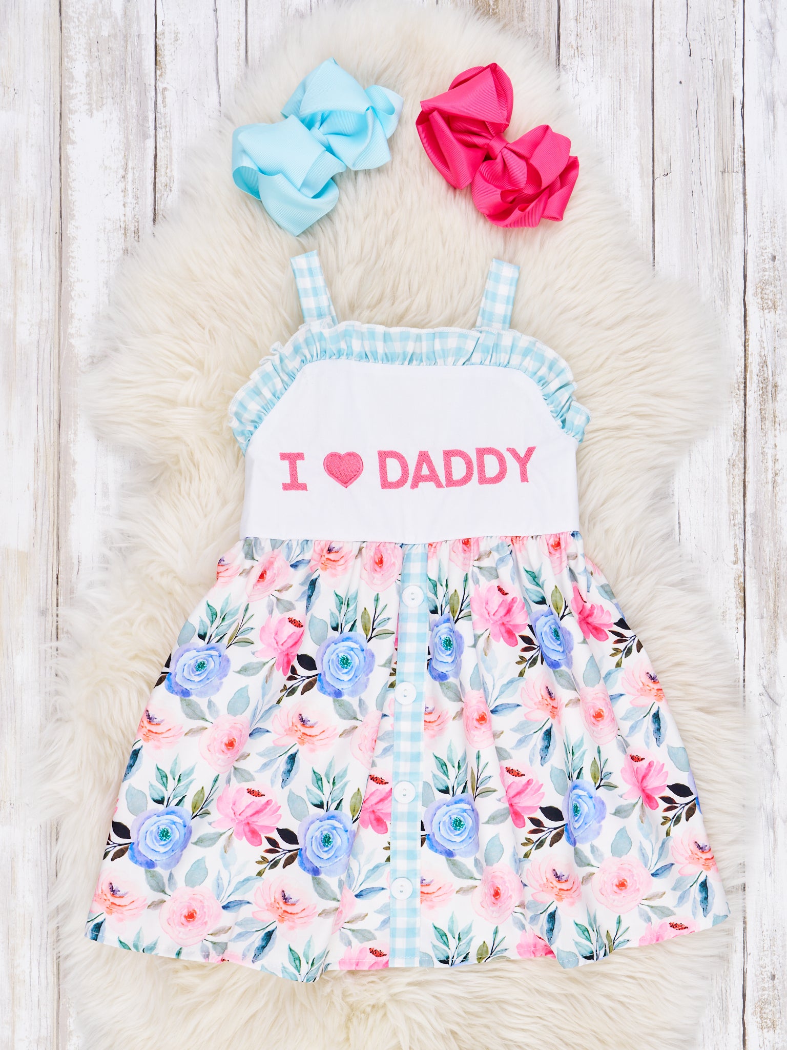 "I Love Daddy" Floral Ruffle Dress