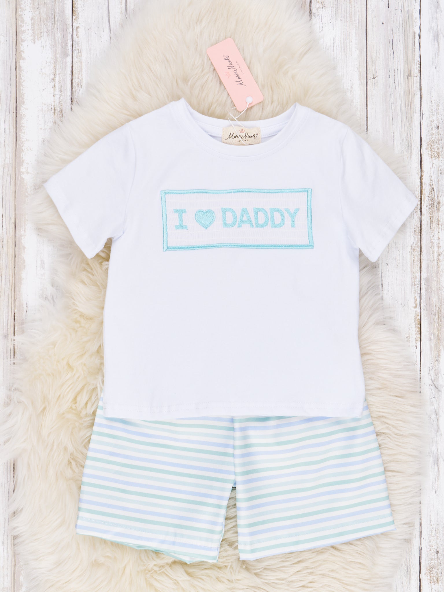"I Love Daddy" Pinstripe Shorts Outfit