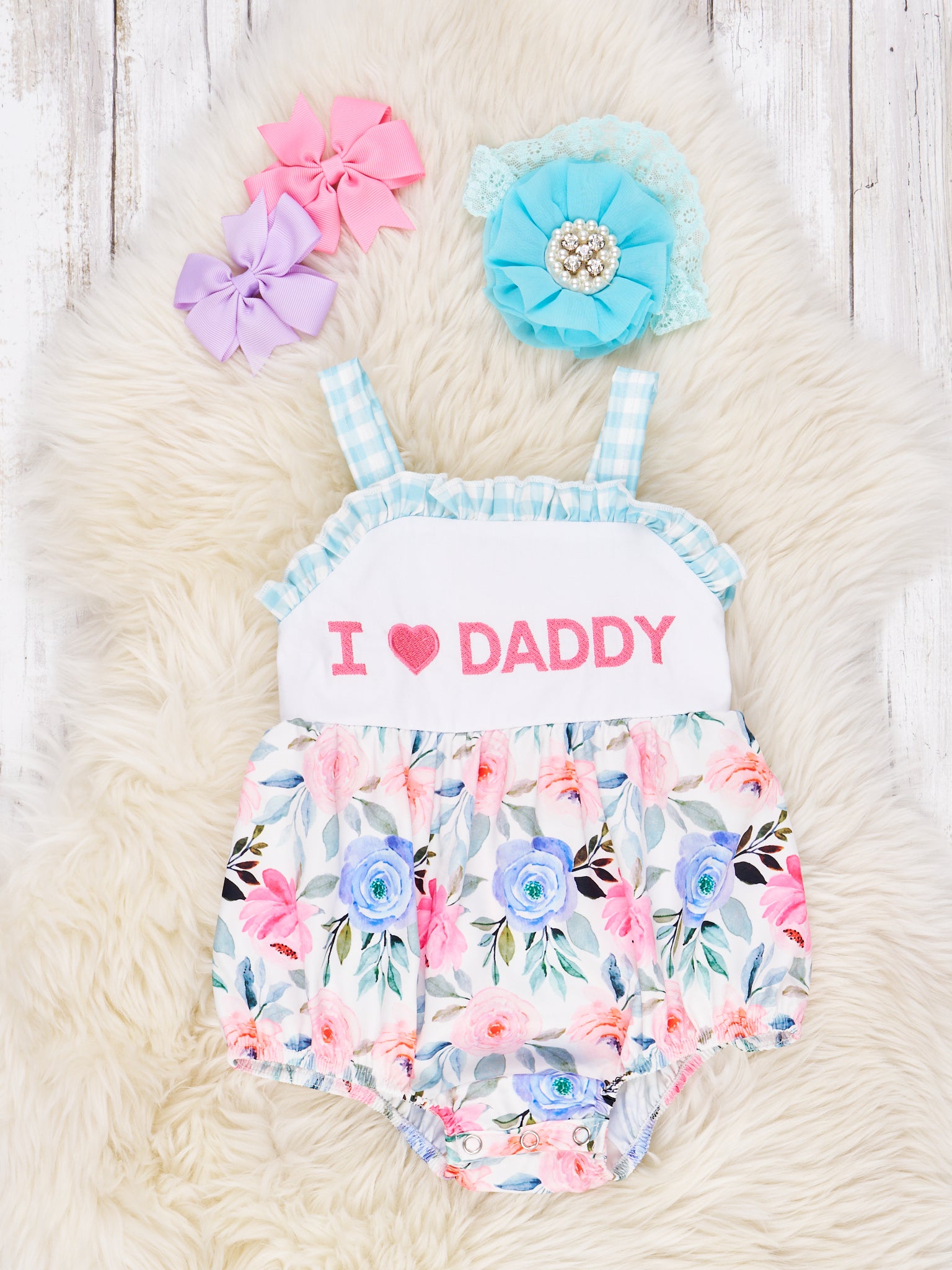 "I Love Daddy" Floral Ruffle Romper