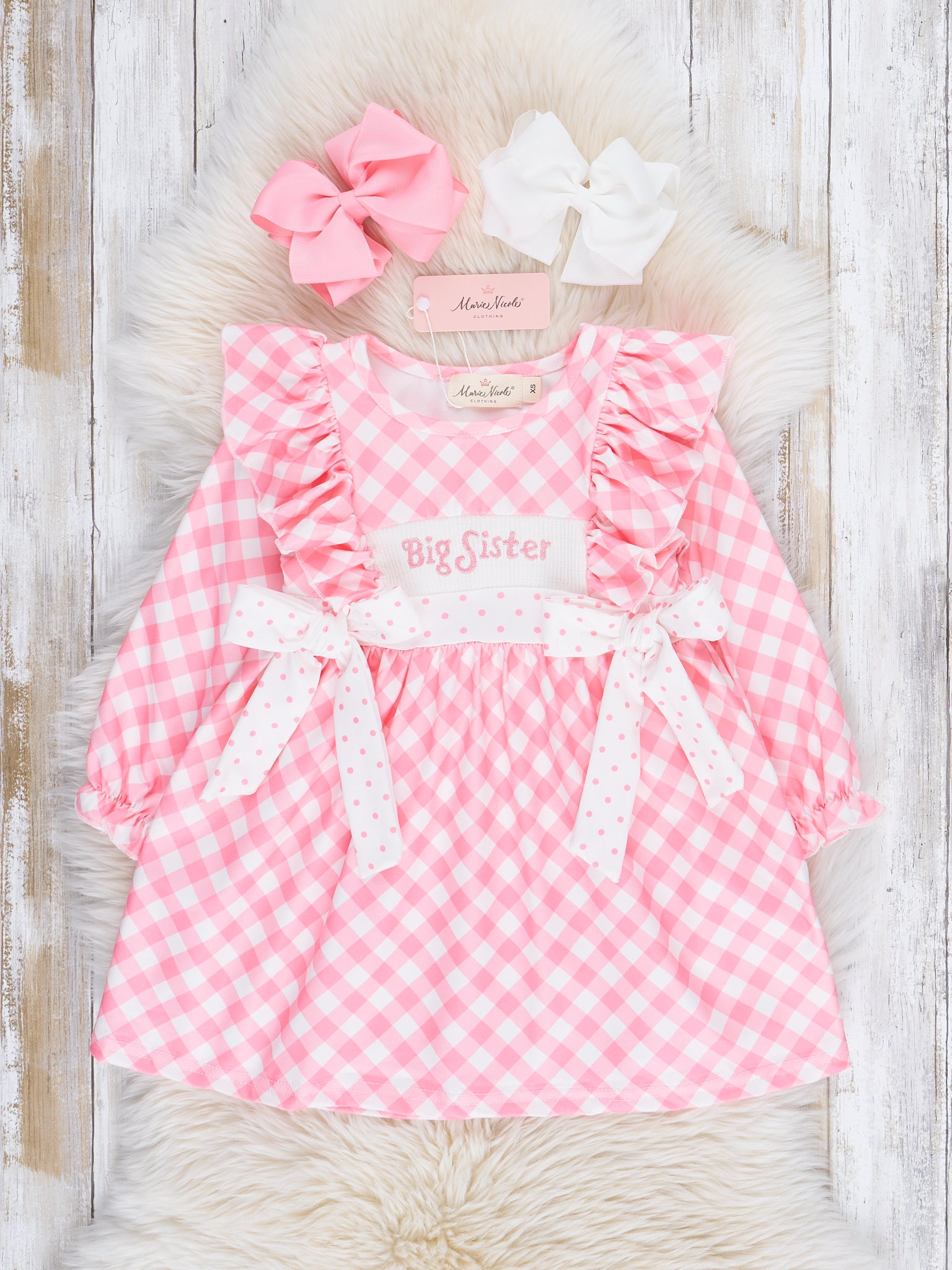 Rose Gingham Smocked "Big Sister" Ruffle Dress