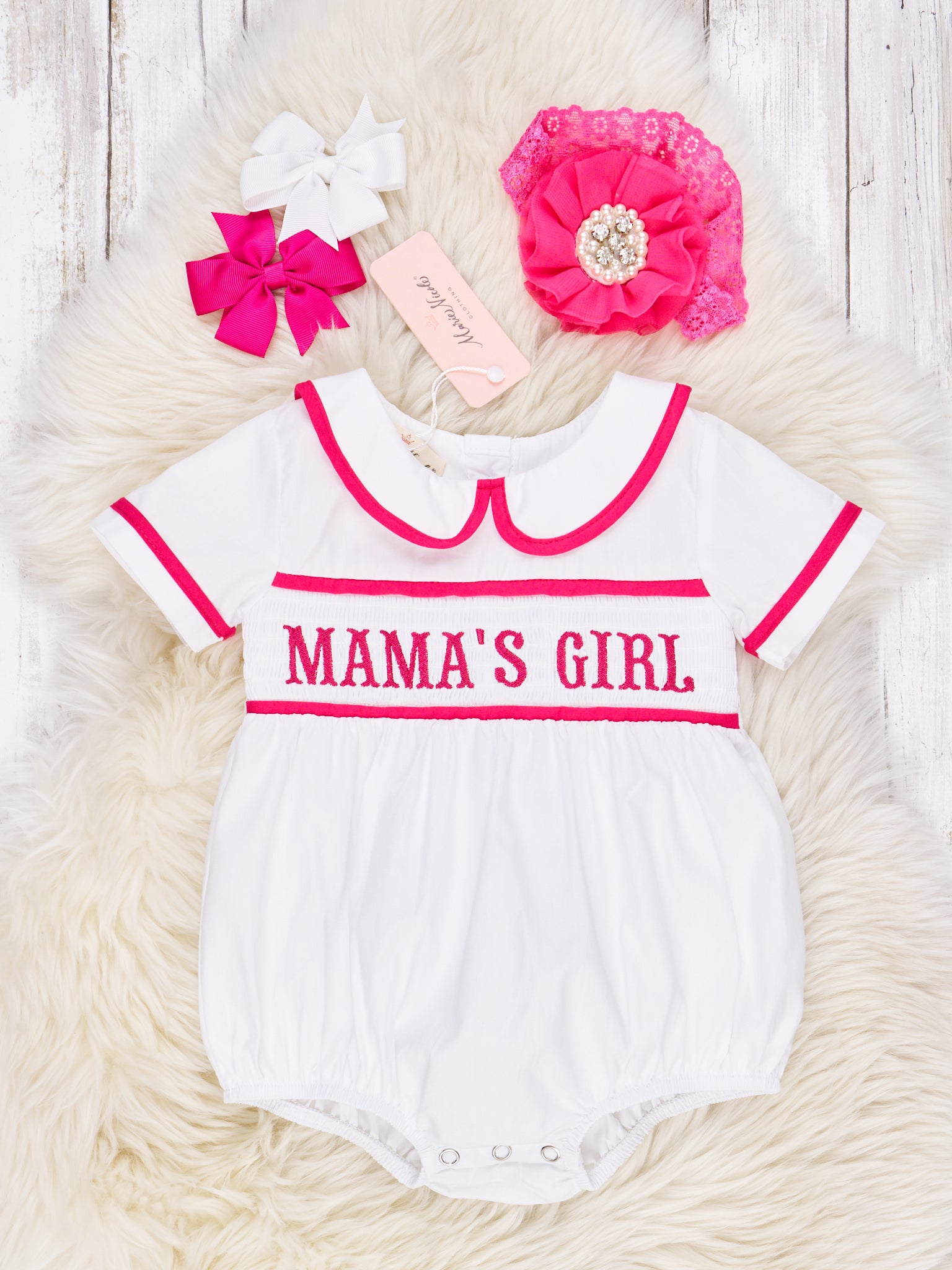 Pink Smocked "Mama's Girl" Vintage Romper