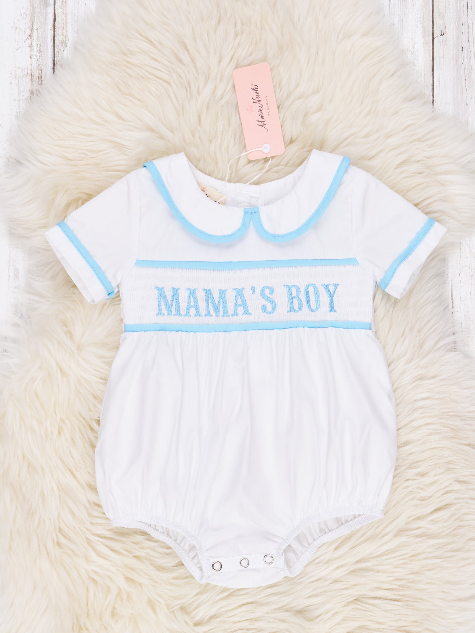 Light Blue Smocked "Mama's Boy" Romper