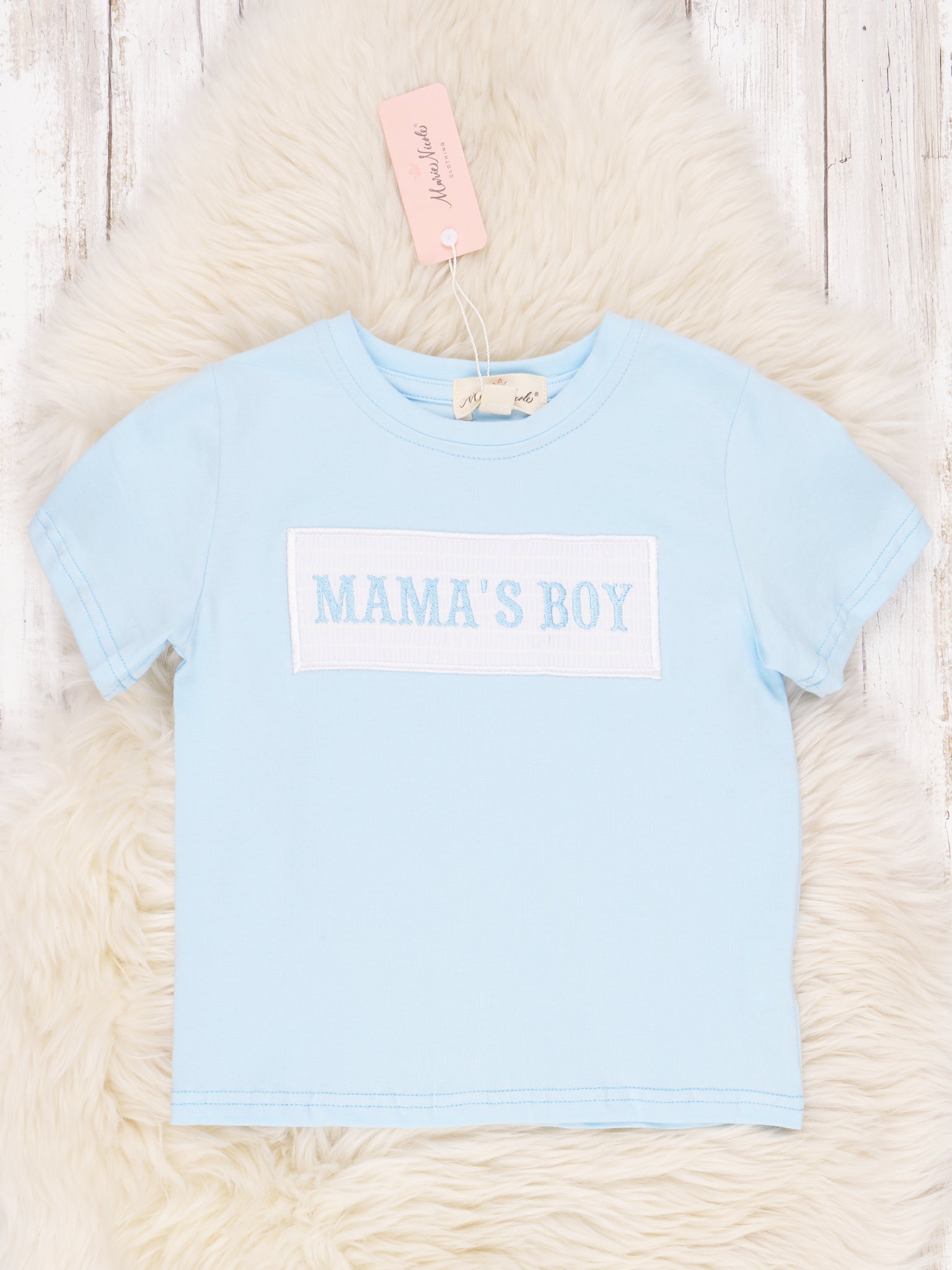 Light Blue Smocked "Mama's Boy" Shirt
