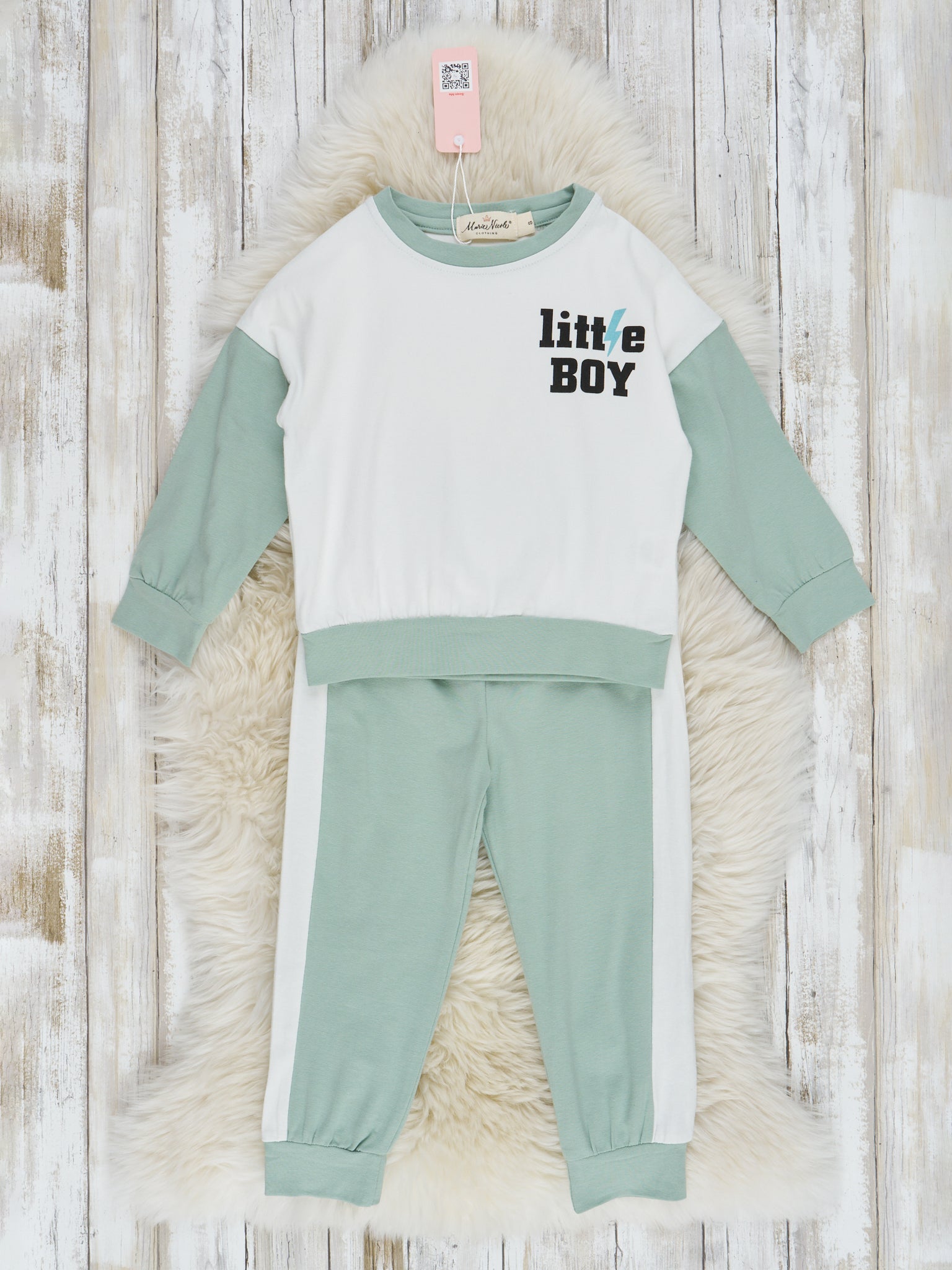 Green & White "Little Boy" Jogger Outfit