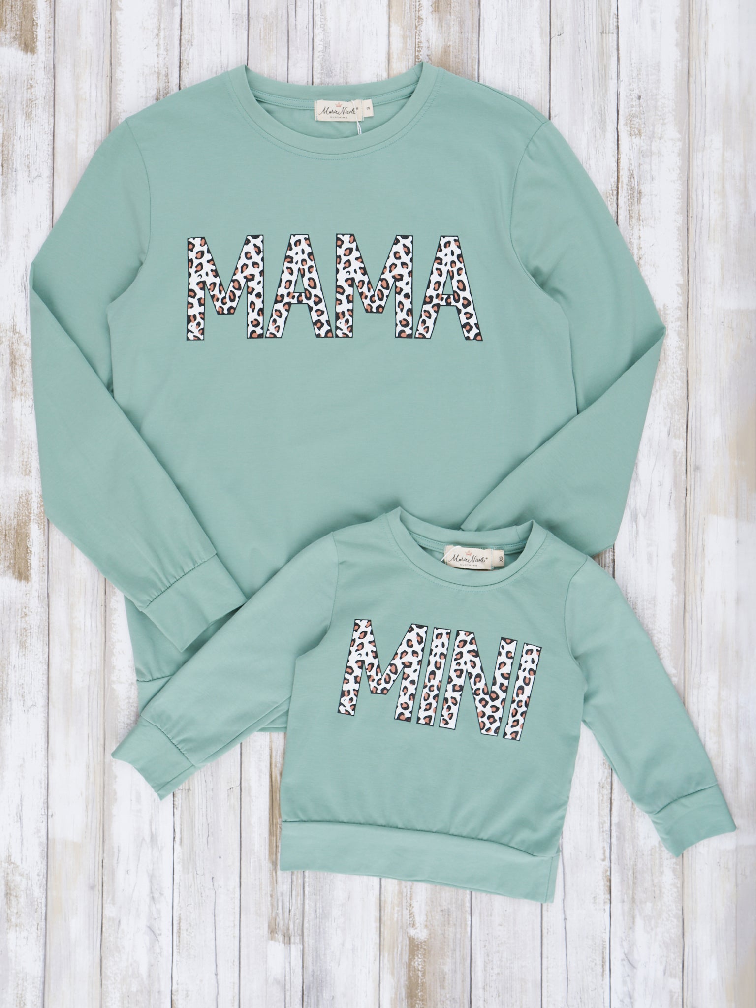 Mom & Me Mint "Mama/Mini" Leopard Shirt