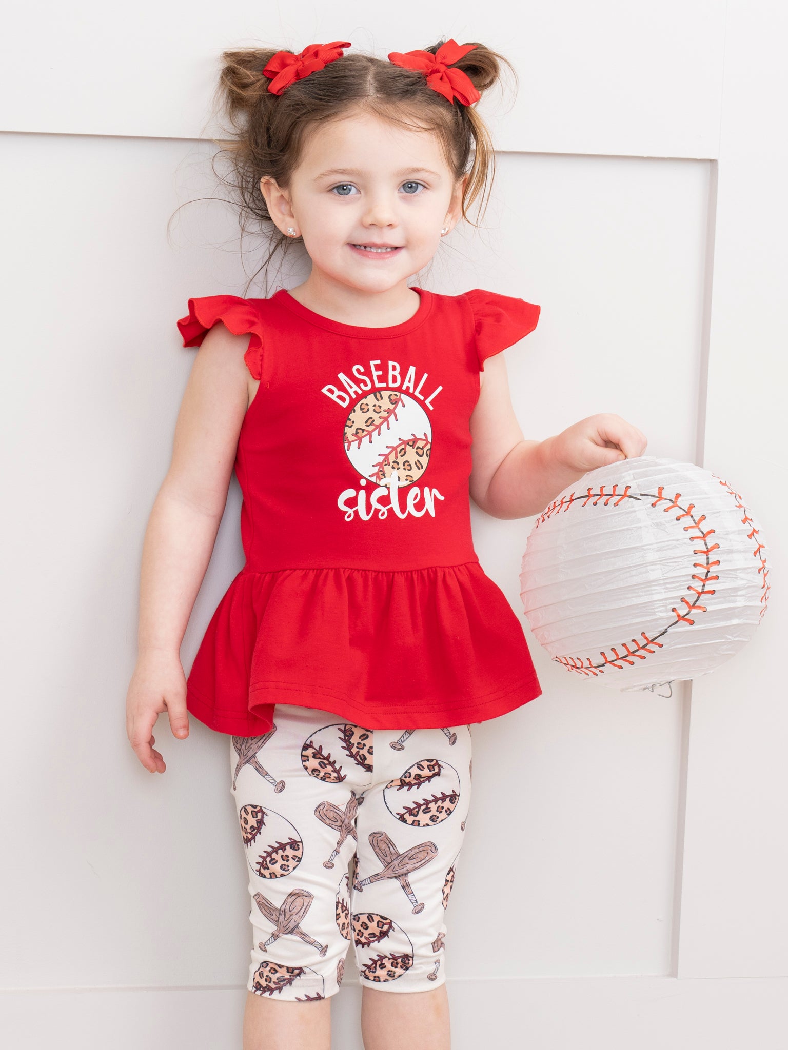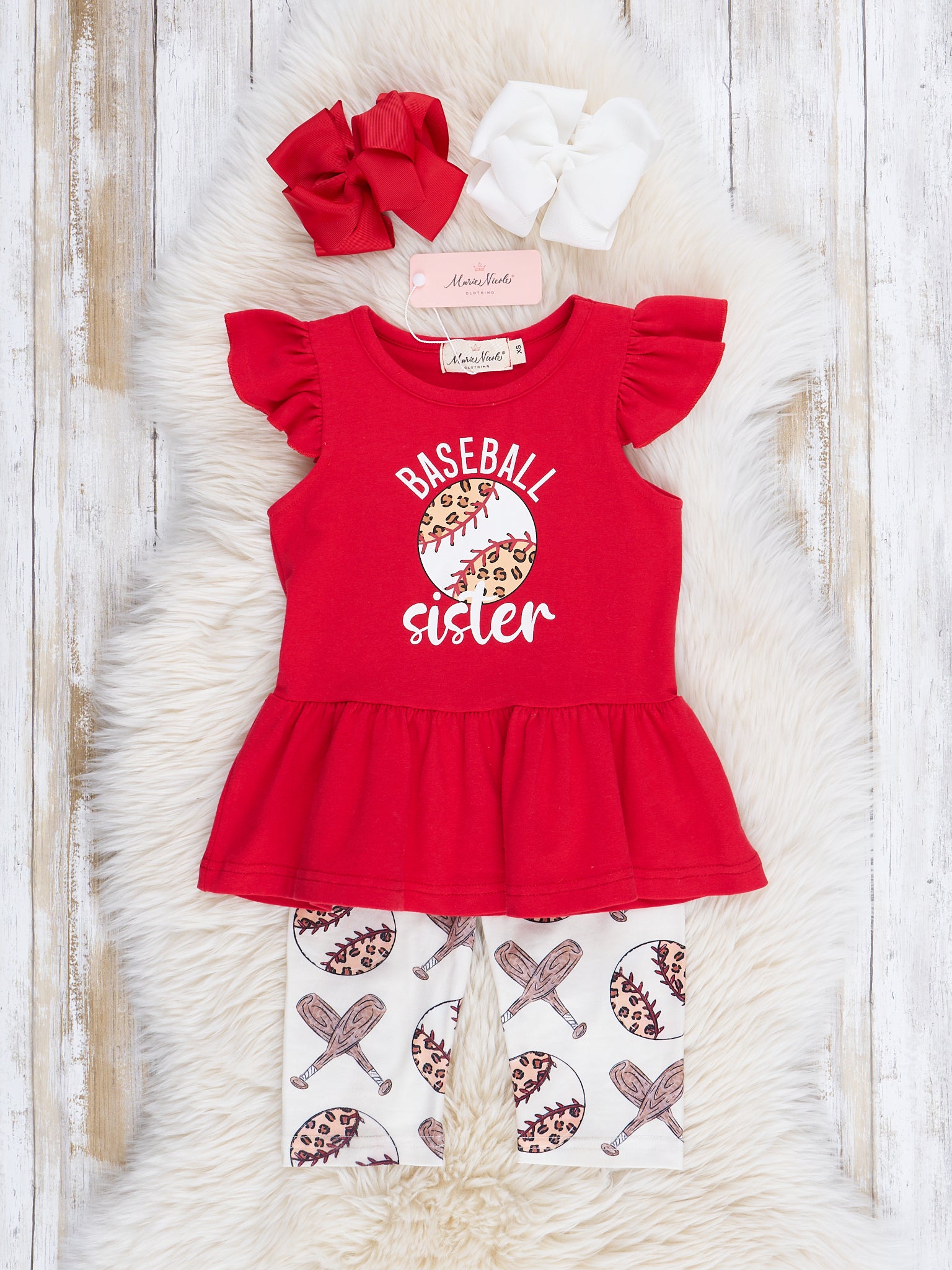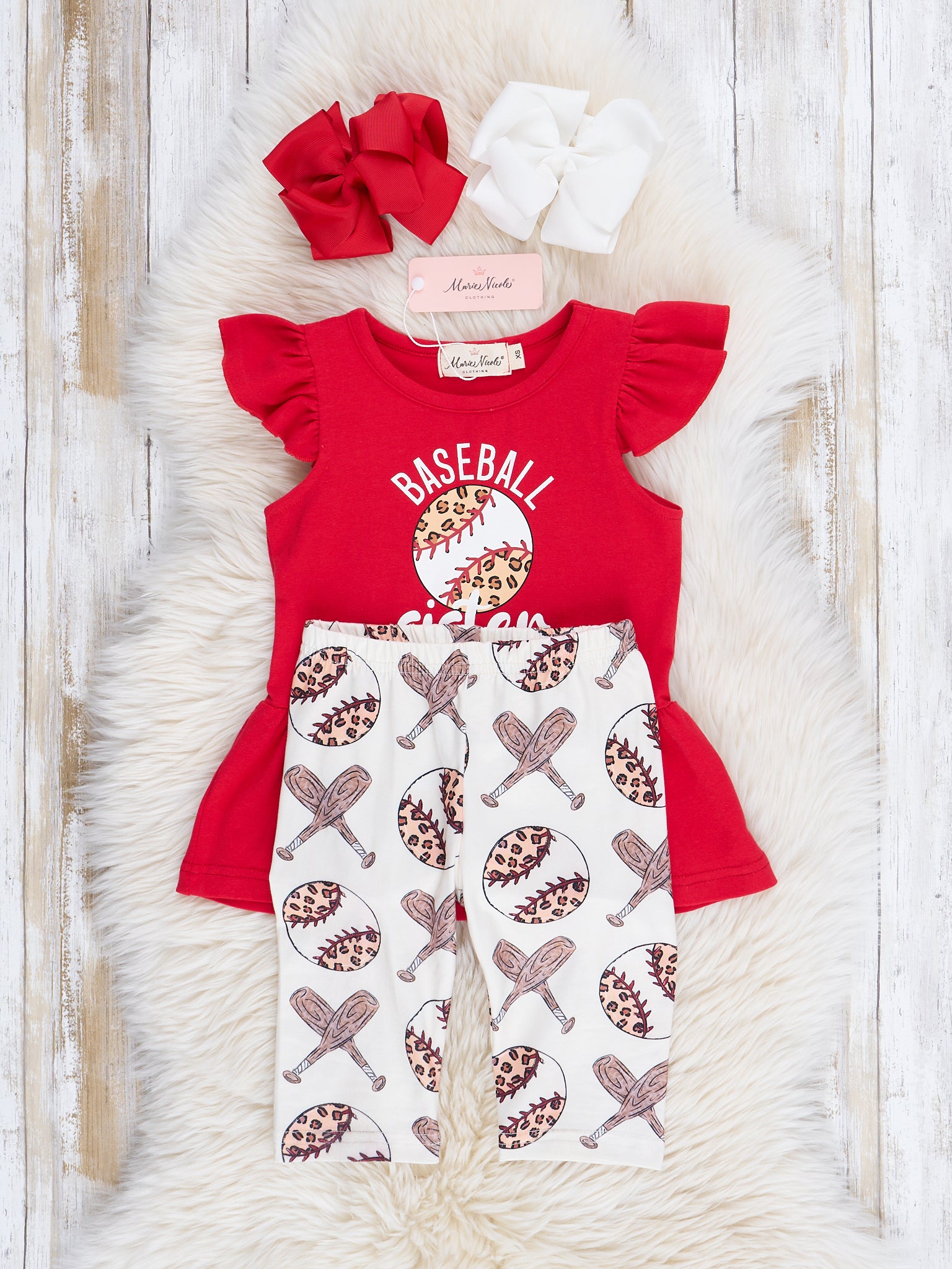 Red & White Baseball Sister Ruffle Outfit