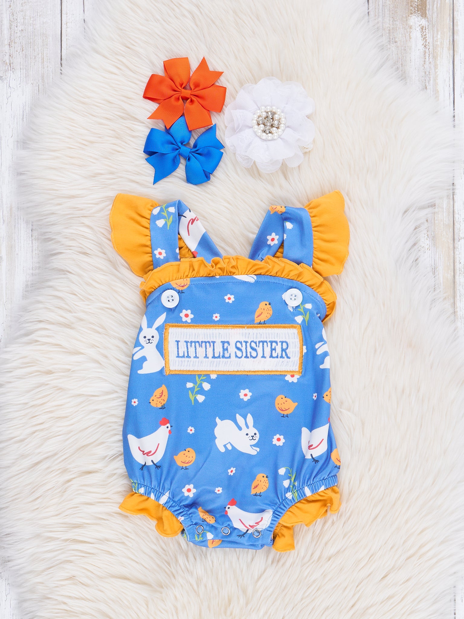 Bunnies & Chickens Smocked Little Sister Bubble