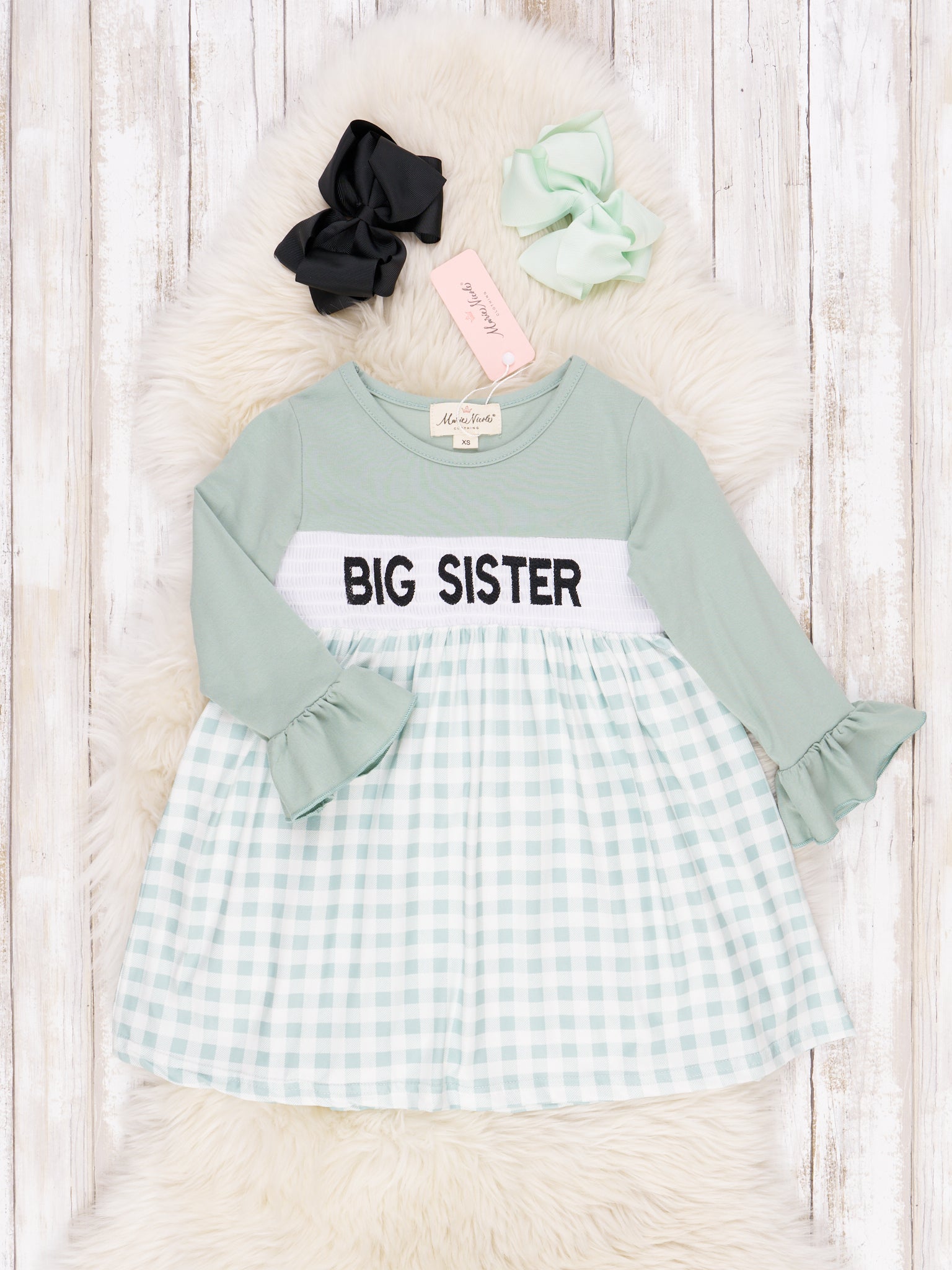 Green & White Gingham Big Sister Dress