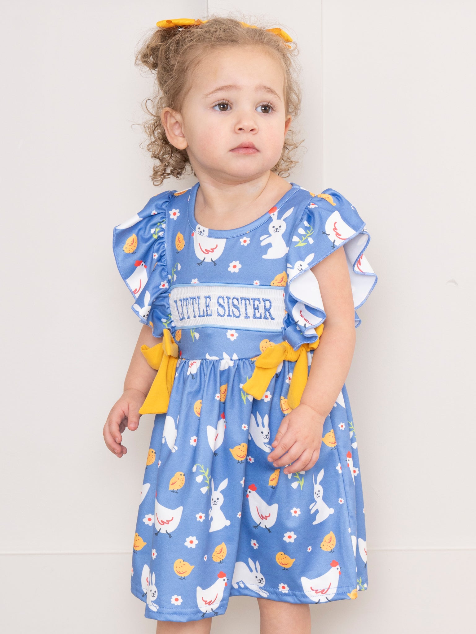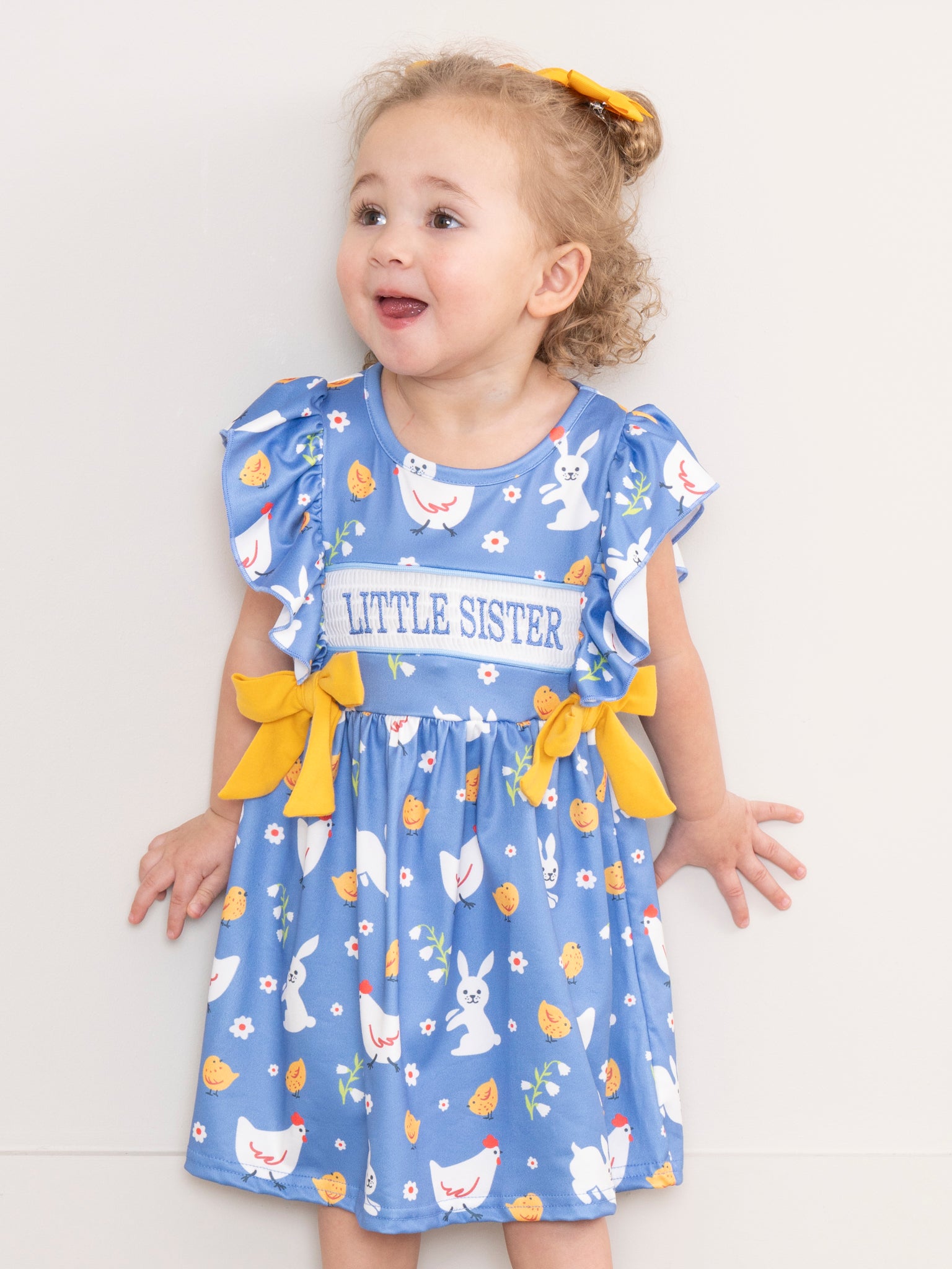 Bunnies & Chickens Smocked Little Sister Dress