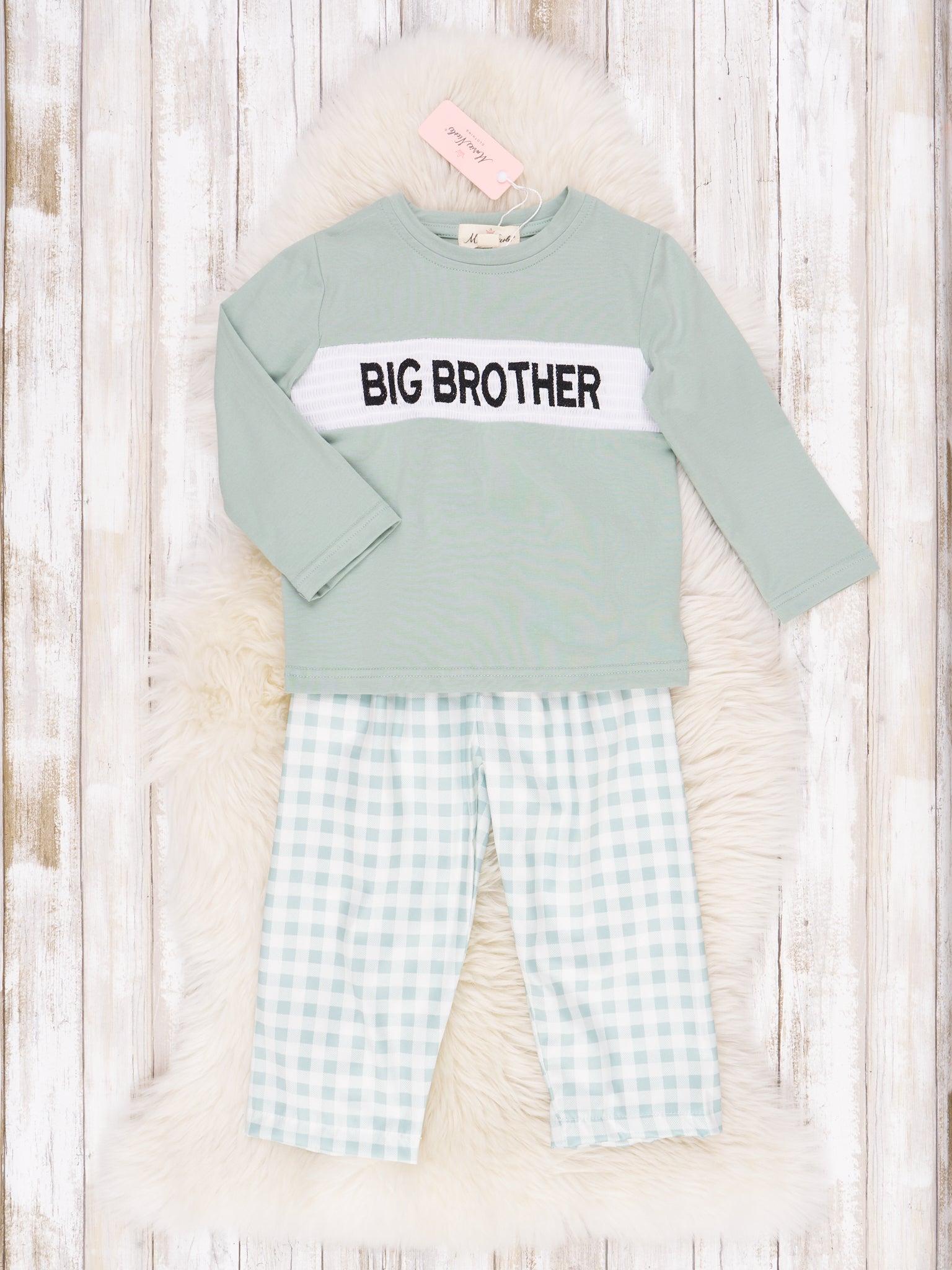 Green & White Gingham Big Brother Outfit