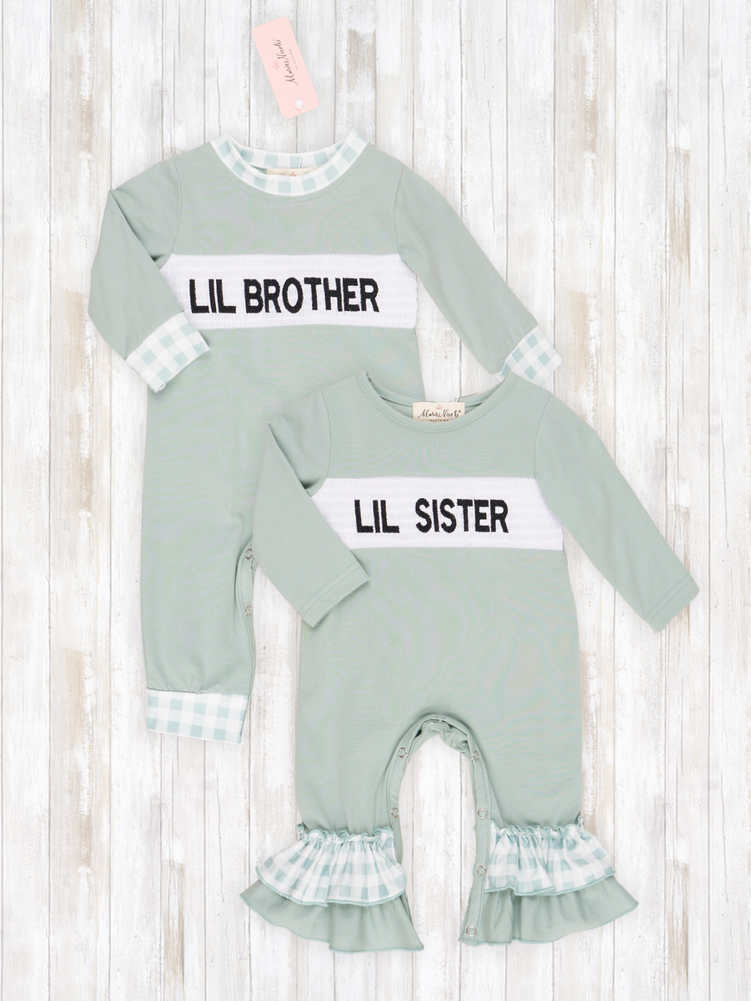 Green & White Gingham Lil' Sibling Romper - Boy & Girl