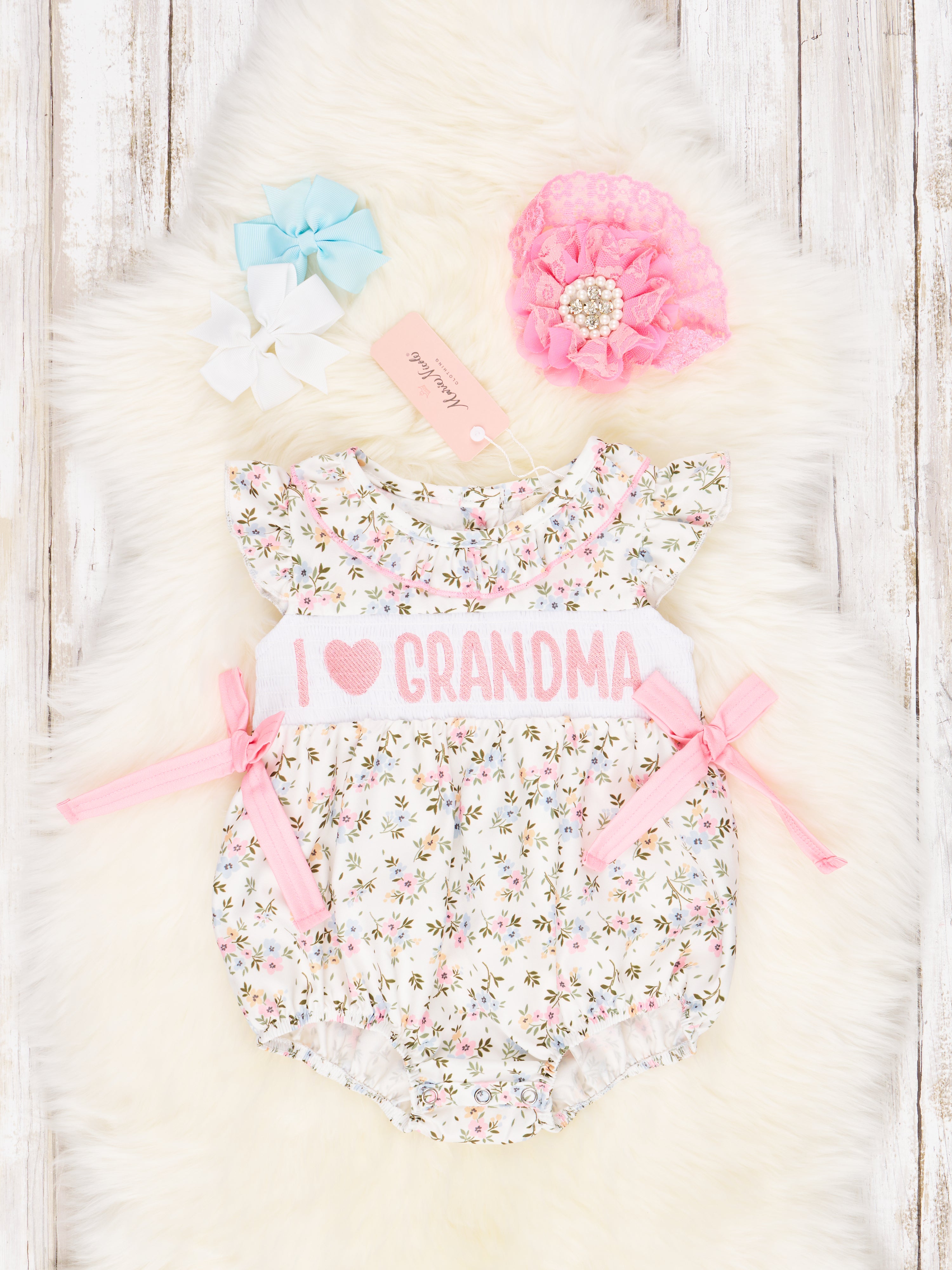 Smocked Floral "I Love Grandma" Ruffle Romper
