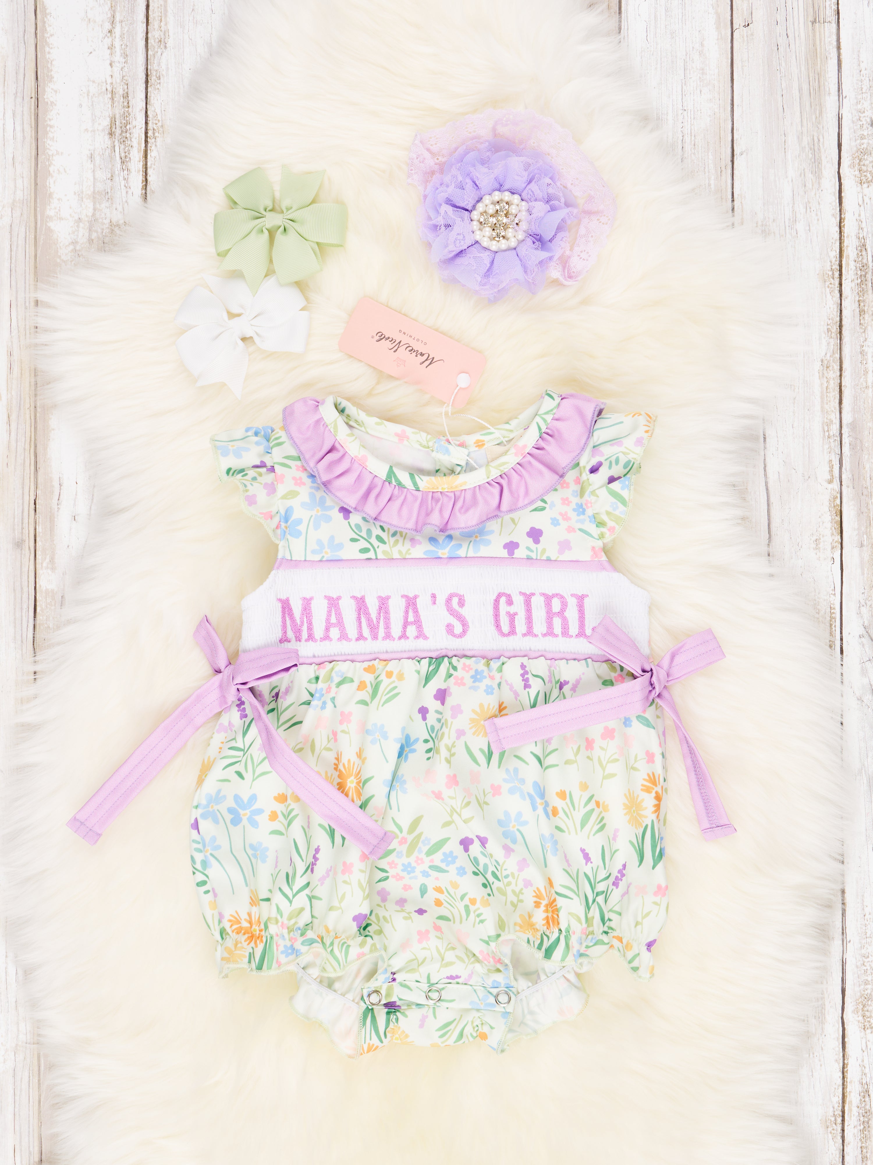 Smocked Floral "Mama's Girl" Ruffle Romper
