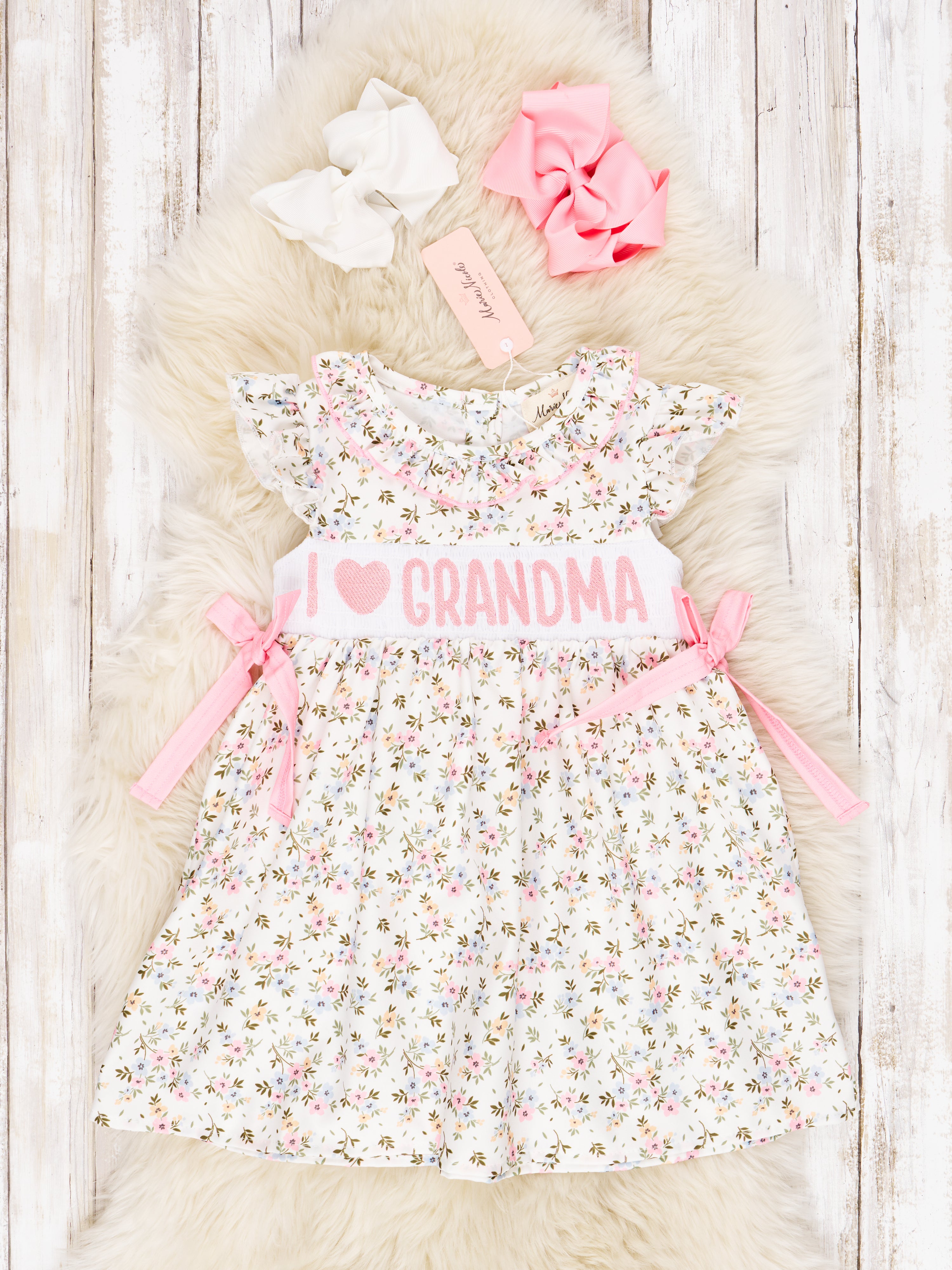 Smocked Floral "I Love Grandma" Ruffle Dress