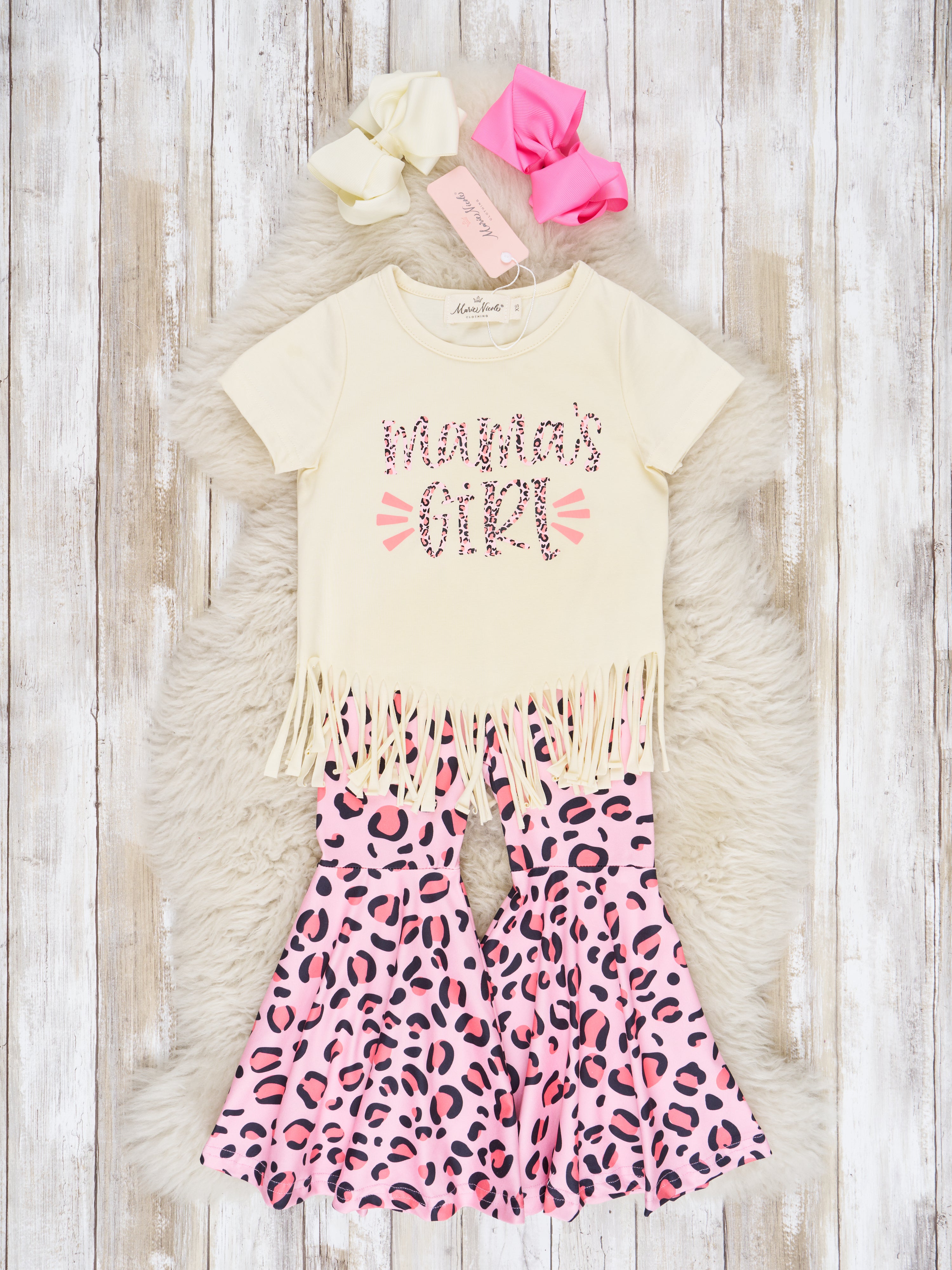 Sparkly "Mama's Girl" Leopard Bell Bottom Outfit