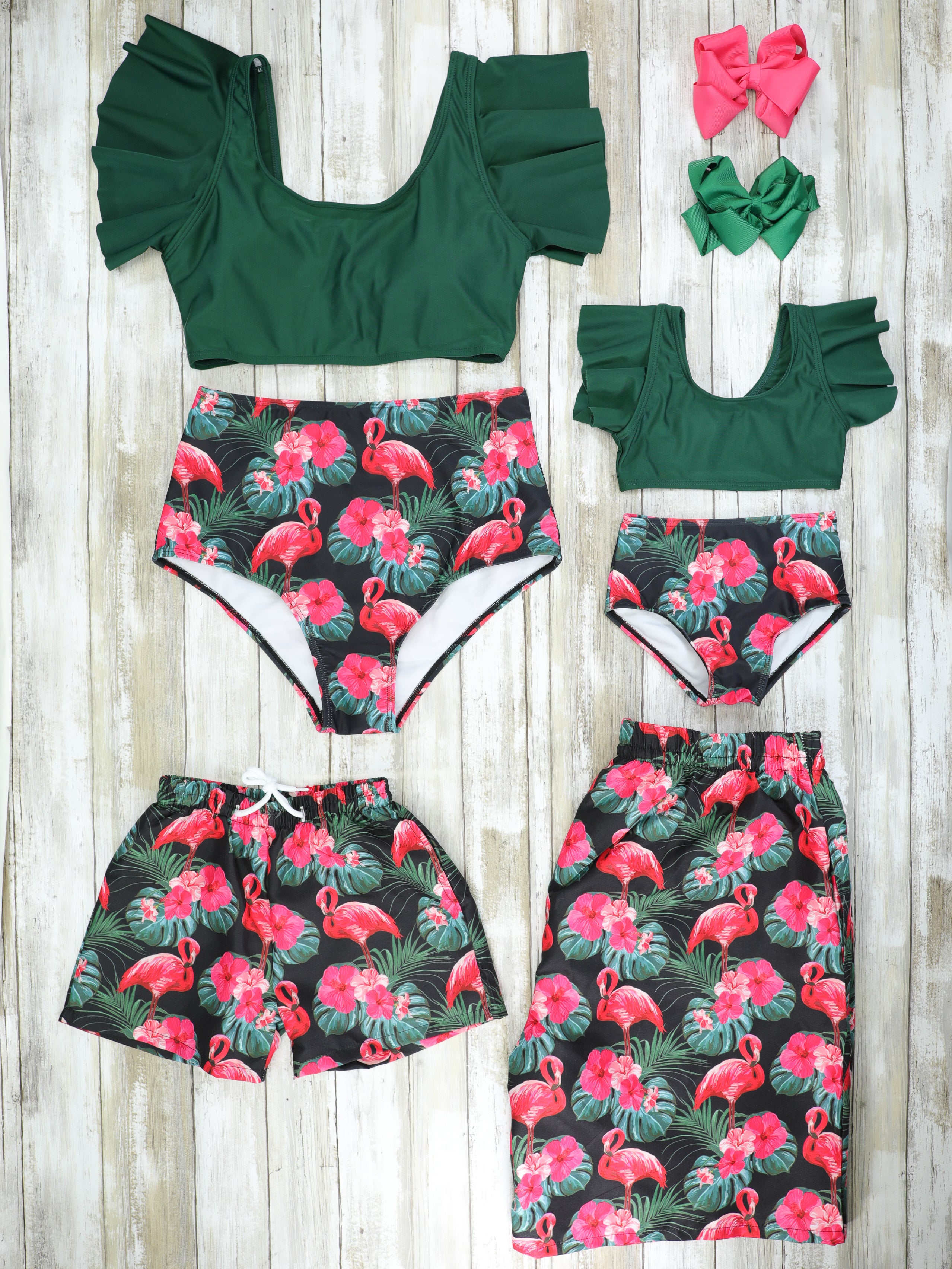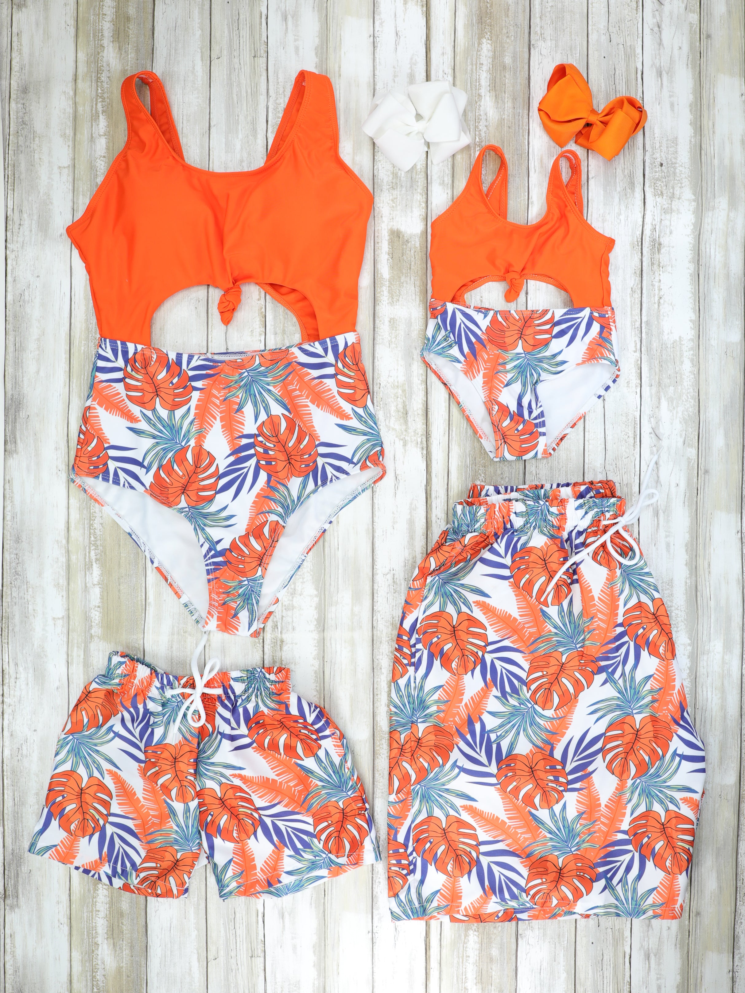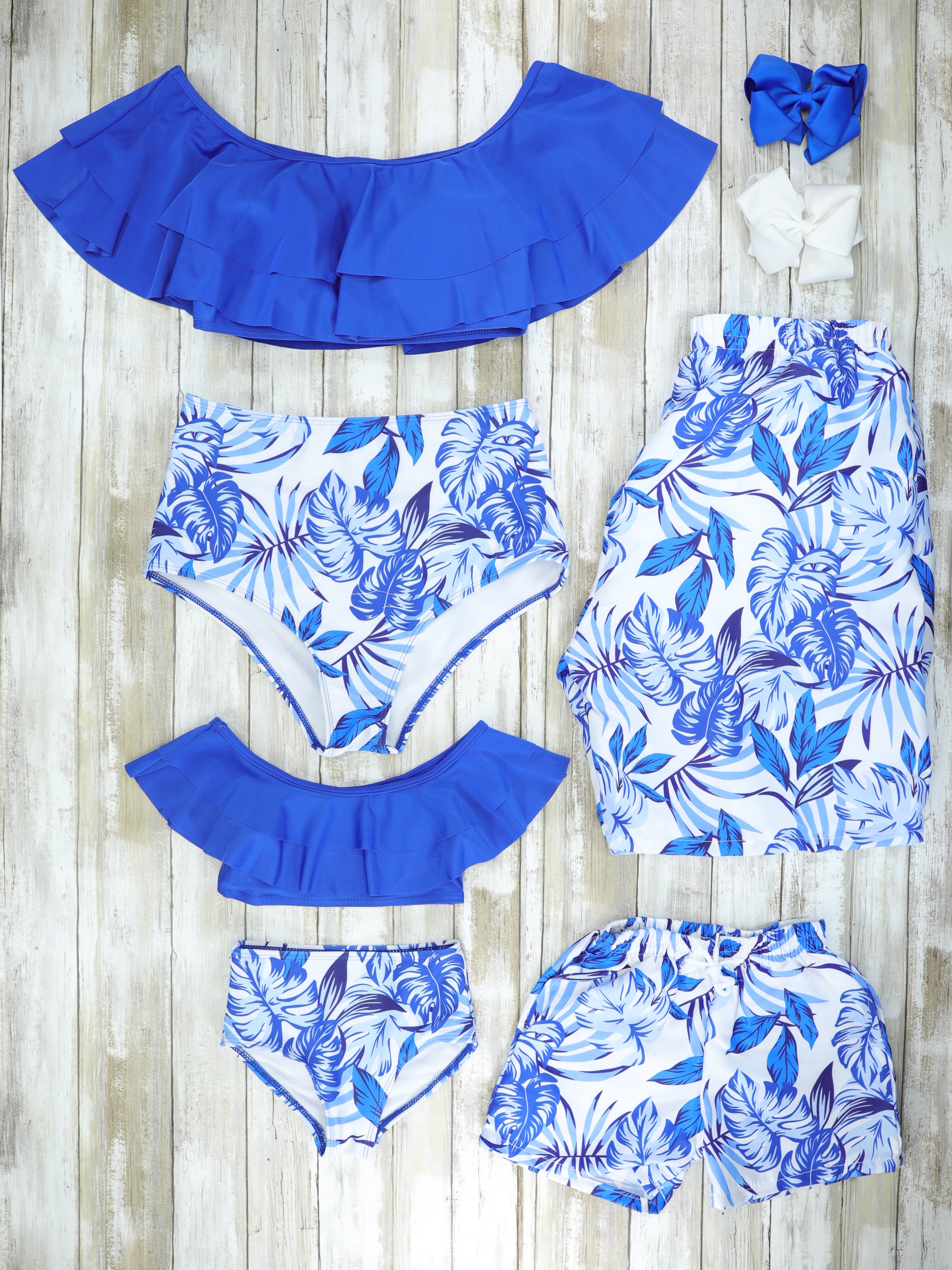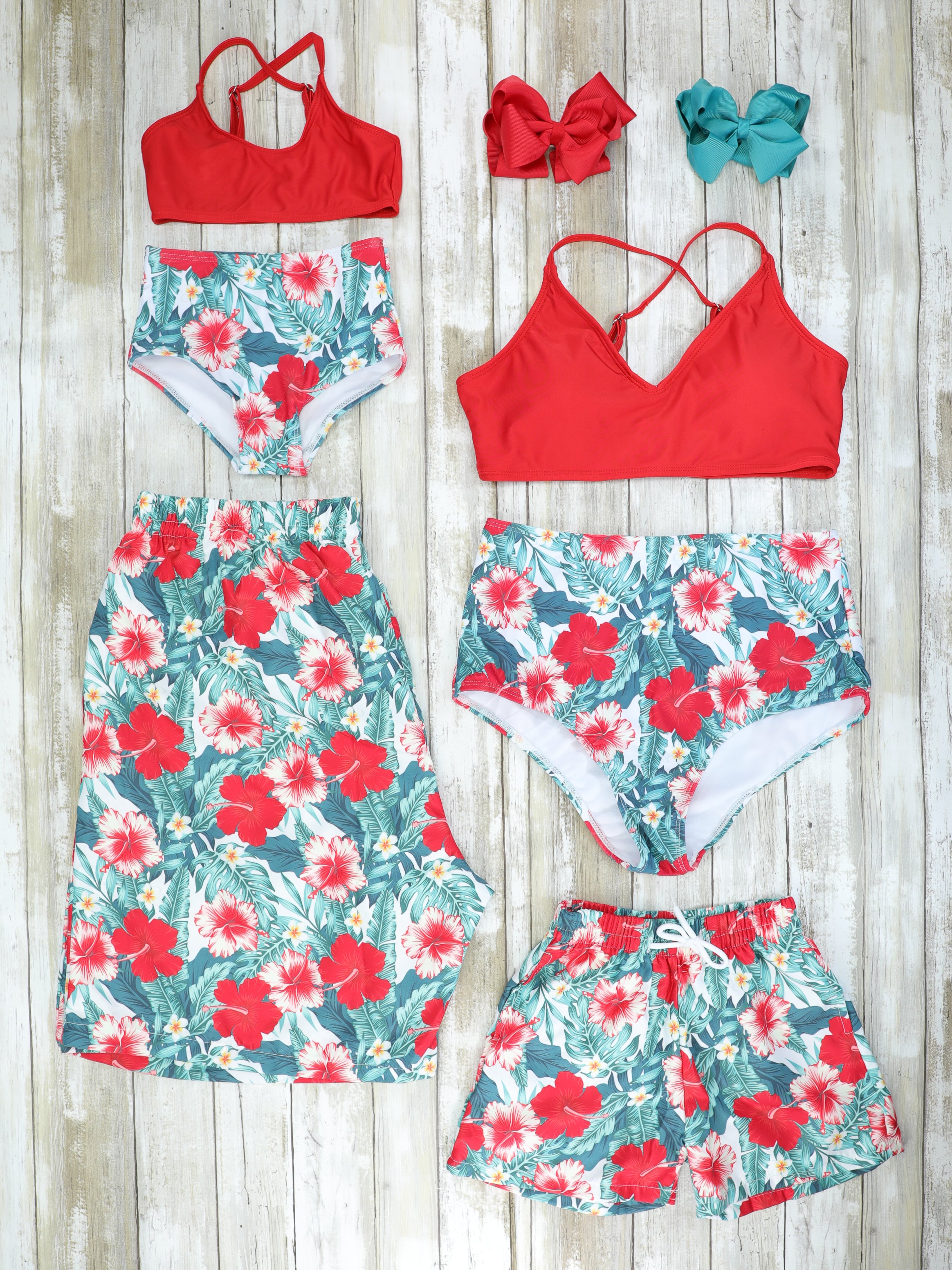 Family Red, Pink, & Blue Tropical Floral Swimsuit