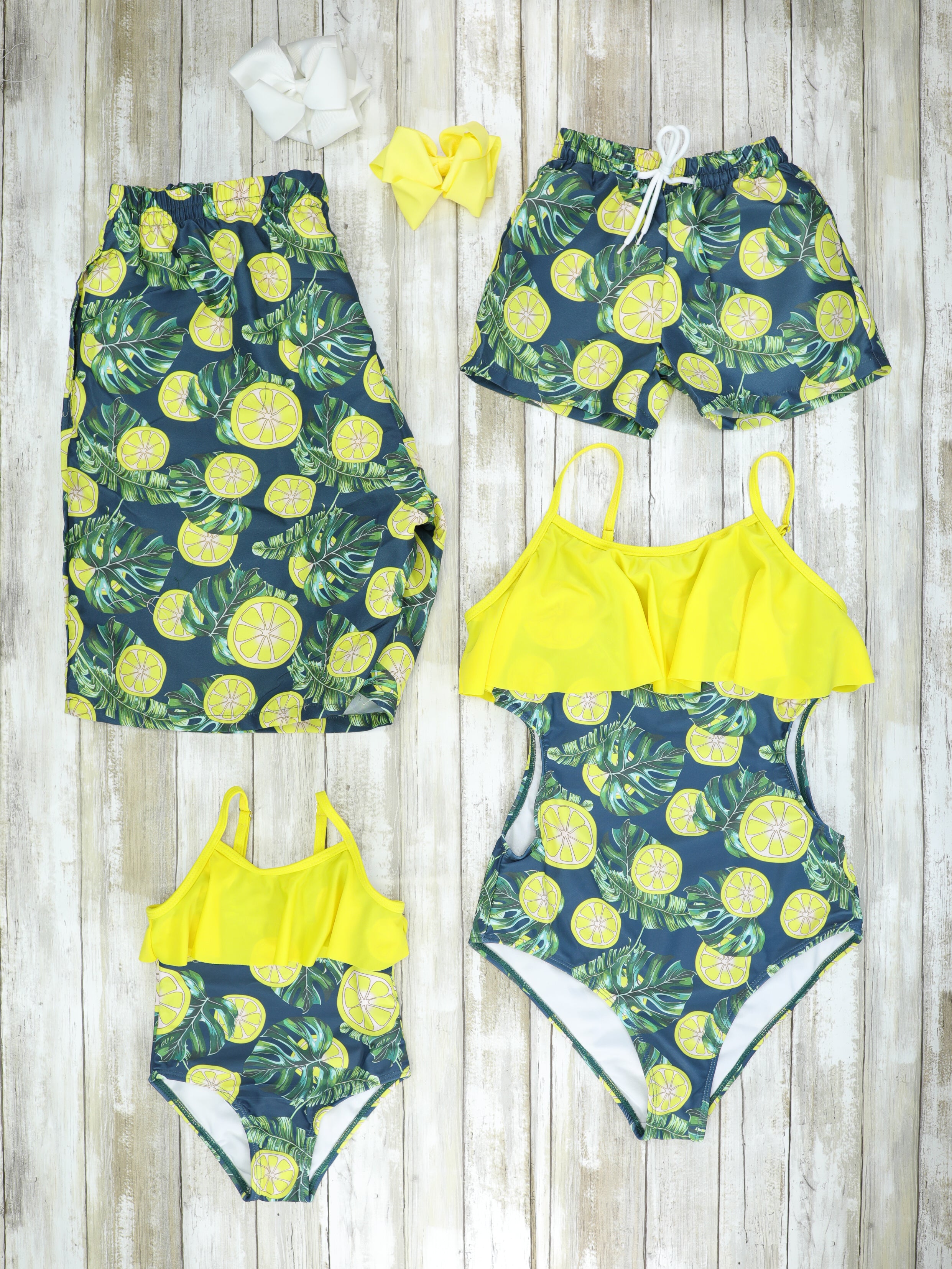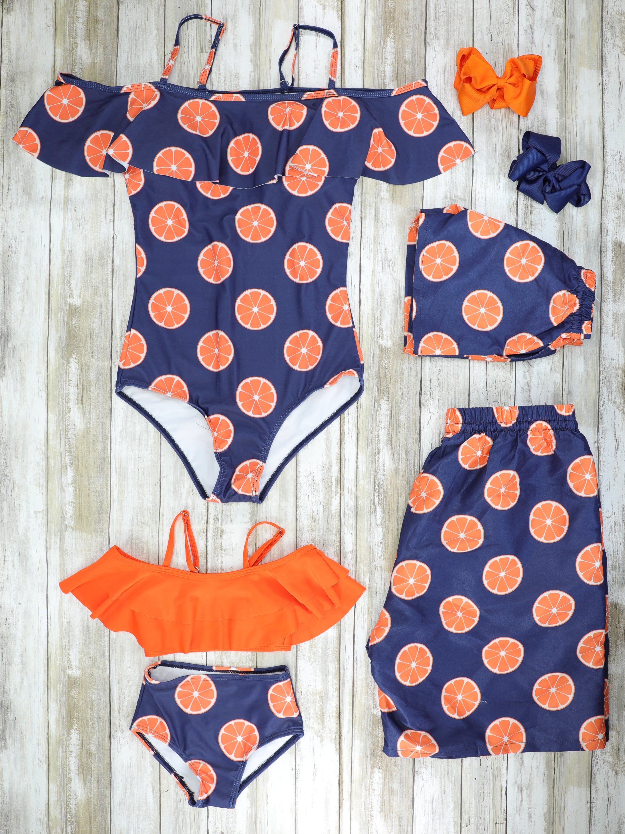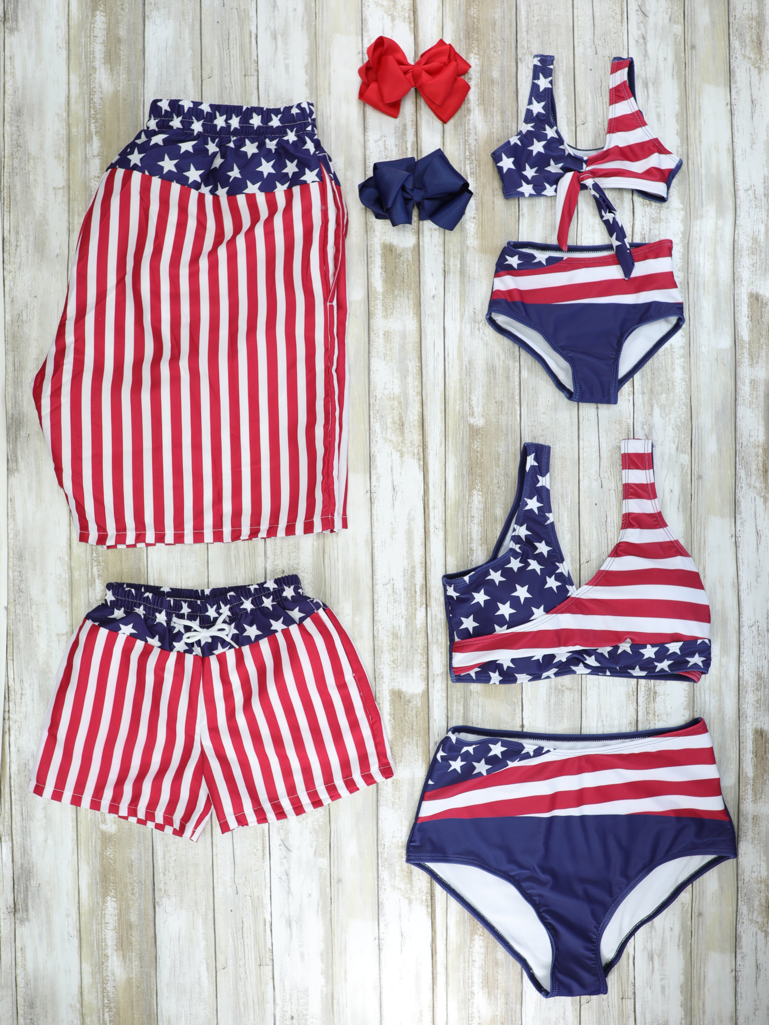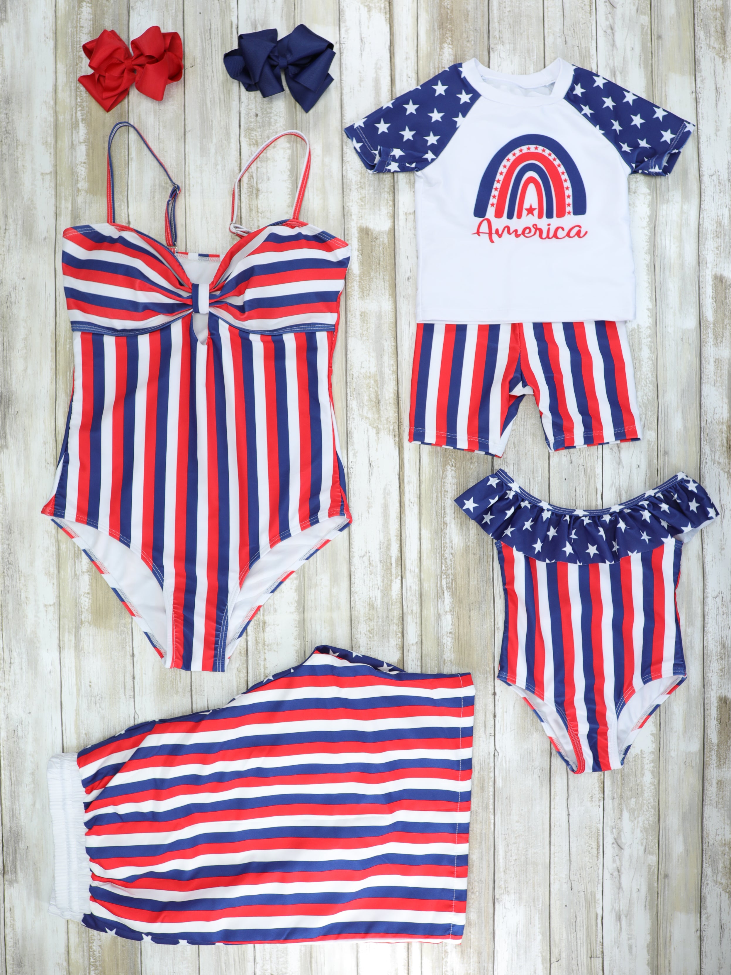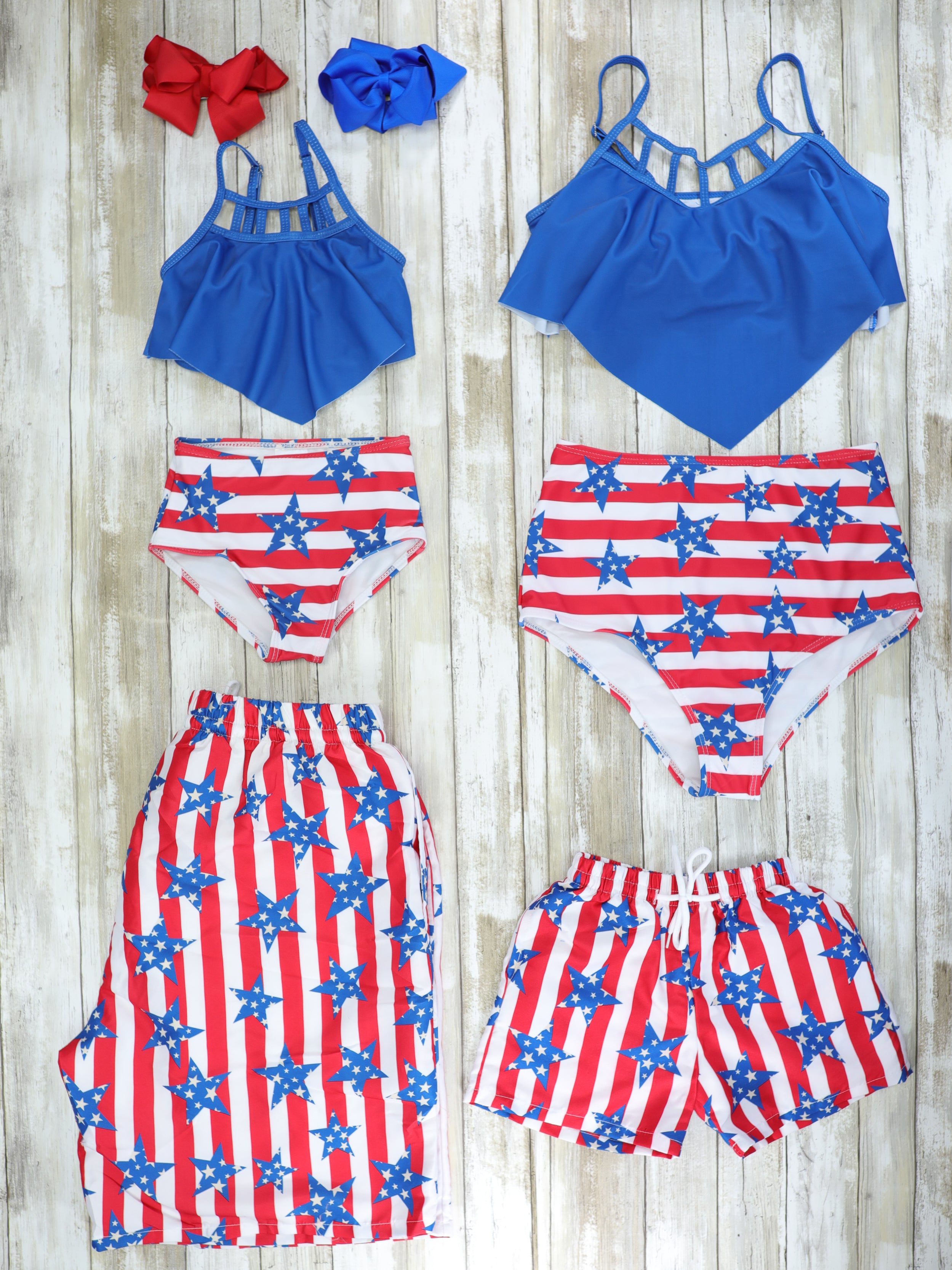 Family Red, Pink, & Blue Tropical Floral Swimsuit