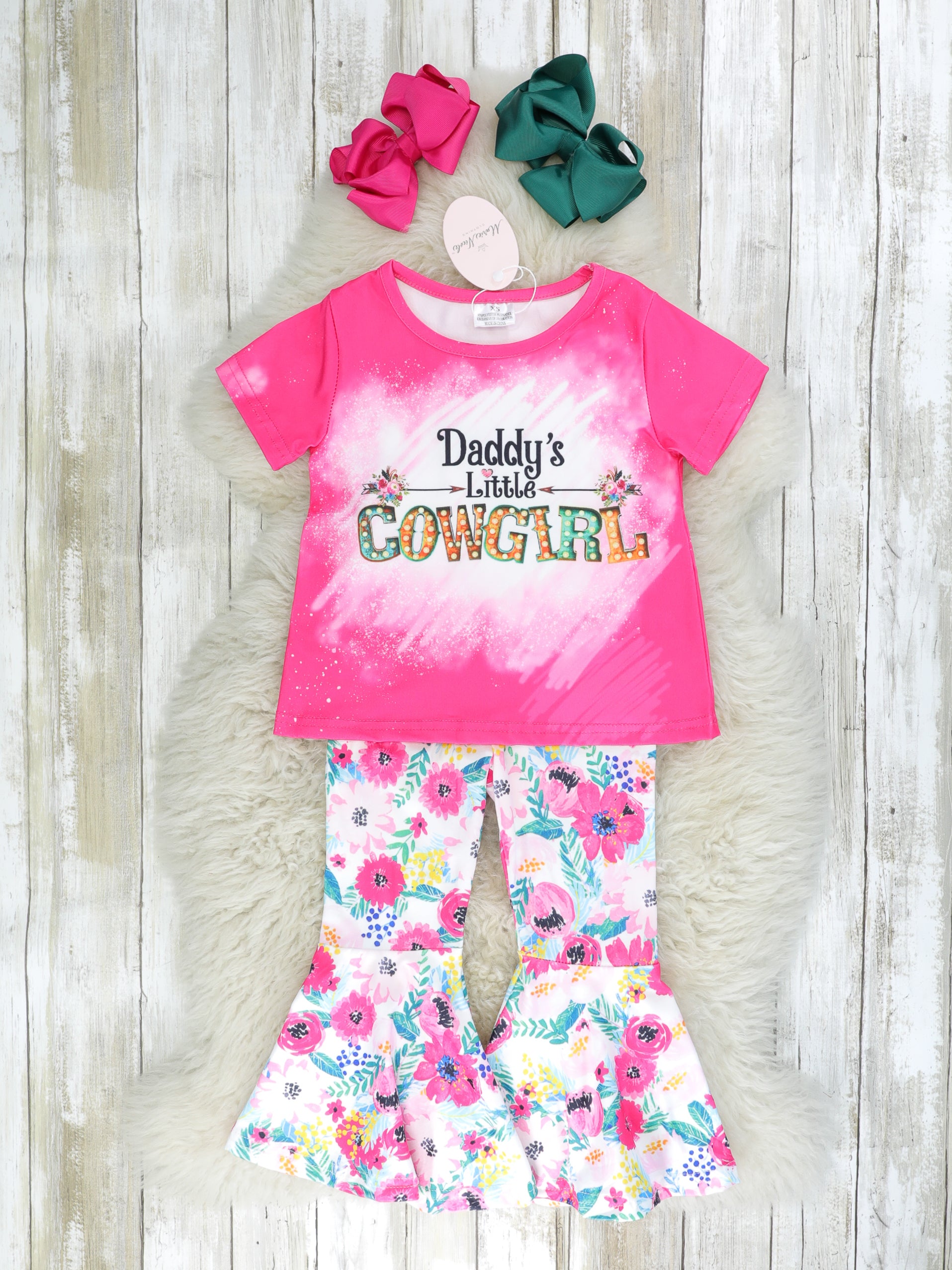 Hot Pink "Daddy's Little Cowgirl" Floral Bell Bottom Outfit