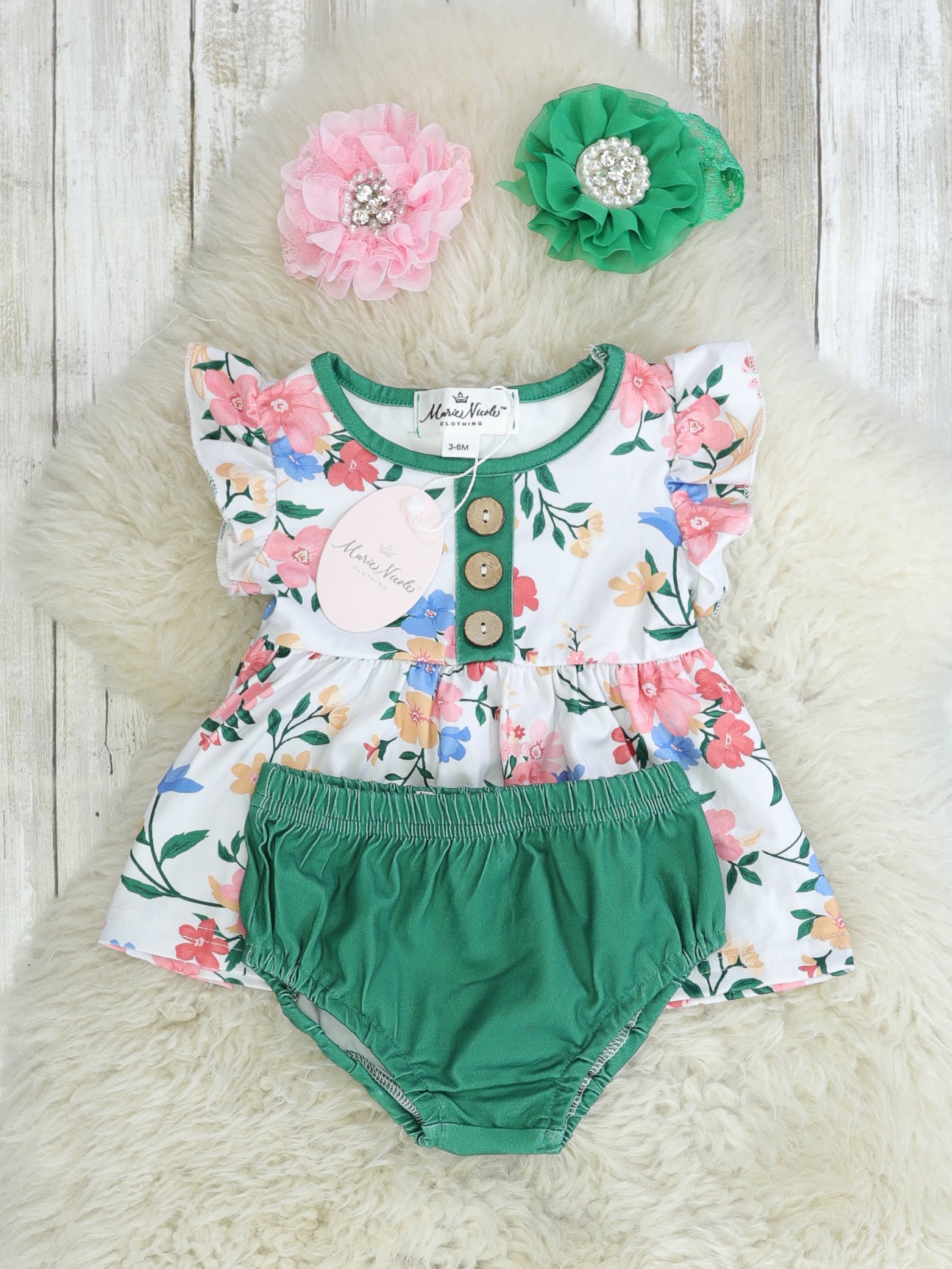 Floral Ruffle Top & Forest Green Bloomers Set