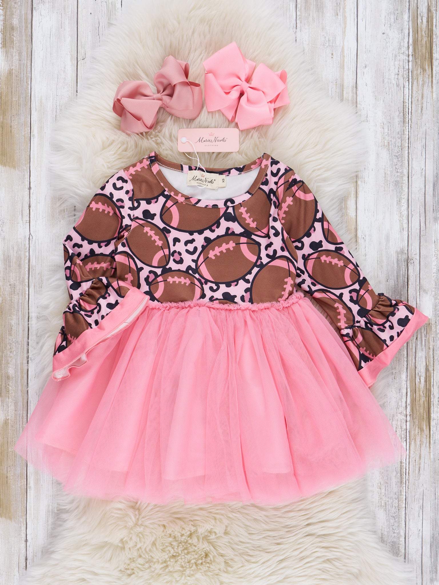 Bright Pink & Brown Football Tulle Dress