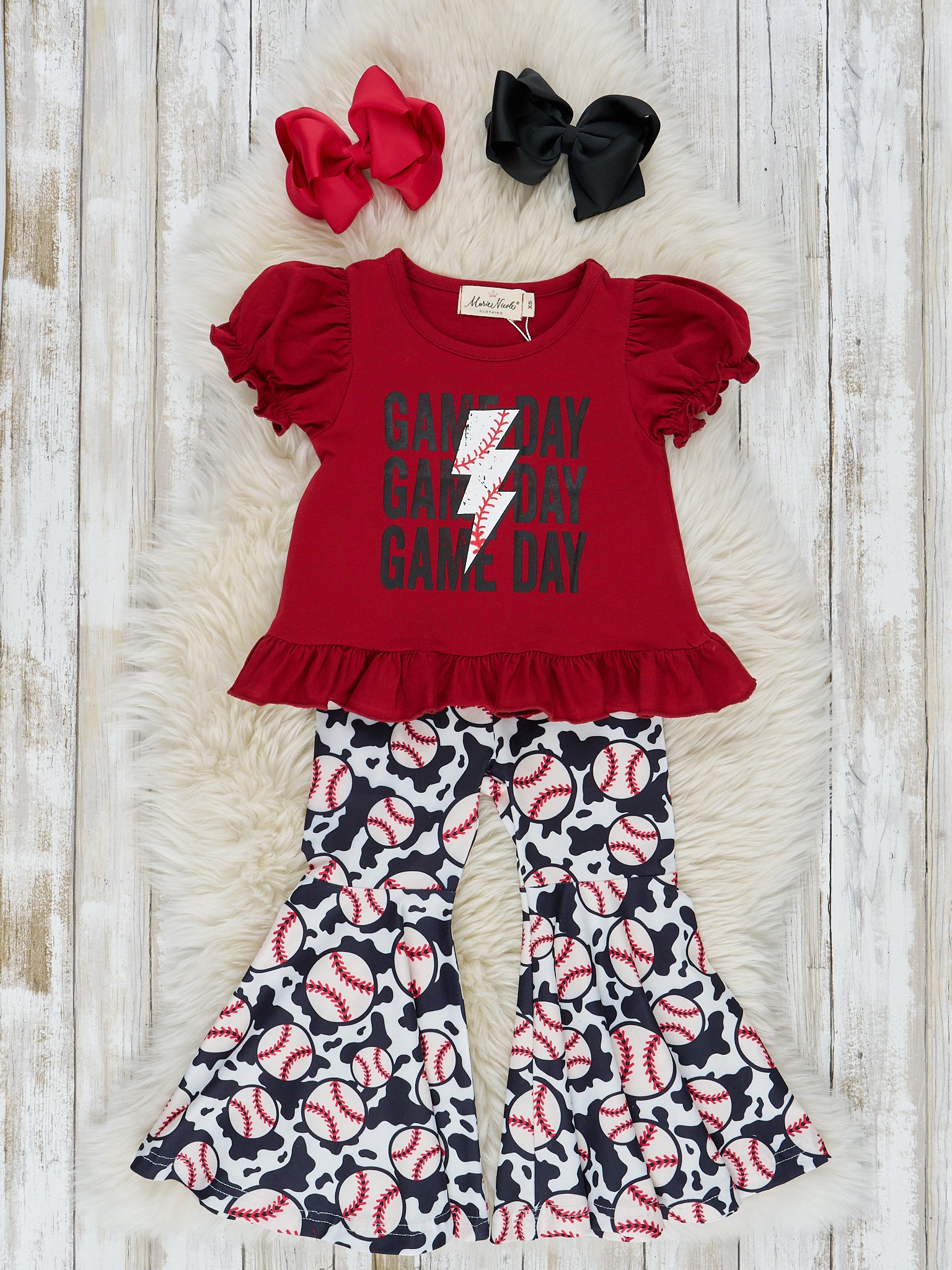 Black Baseball Hearts Bell Bottom Outfit